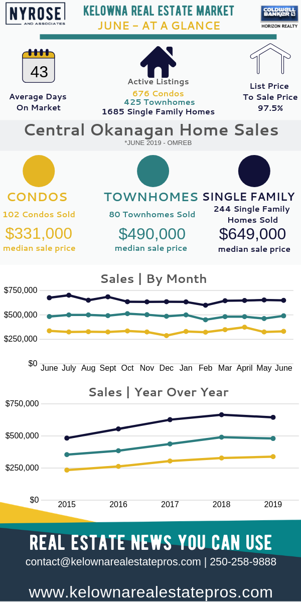 The team REALTORS® at Nyrose & Associates were busy throughout the month of June. Typical for Kelowna, as the weather warms up, so does the market.