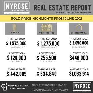 When comparing June 2021 to June 2020 we're still seeing the same story we've been sharing all year: listings are down, sales are up and with that - pricing is up. But, when we compare this June to this May, we're starting to see numbers shift every so slightly. Now, Kelowna has started to open up, families were busy with end-of-school, our highschool graduates spent the month with grad activities which we didn't see last year, and overall, people were enjoying the weather, the area, and life in general. With moving into the next phase of COVID-19 restrictions and the ability to move around the province more and less restrictions, we're expecting a busy summer. We hope to see more listings come to market, but if not prices will continue to increase.
