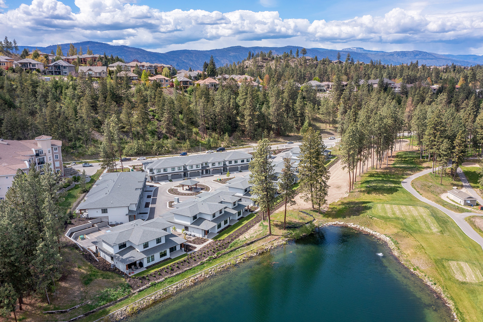 Quail Landing is a brand new, move-in-ready development consisting of 24 modern townhomes located along the 18th hole of the popular Quail golf course at The Okanagan Golf Club. Homes range from 2-3 bedrooms and 2-3 bathrooms, approximately 1300 - 1900 sq ft, some with beautiful lake views.