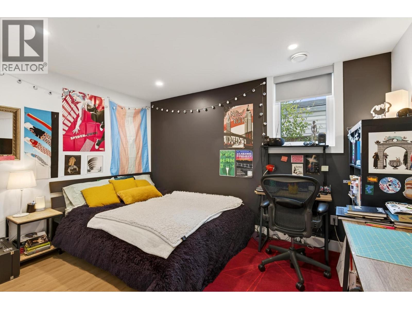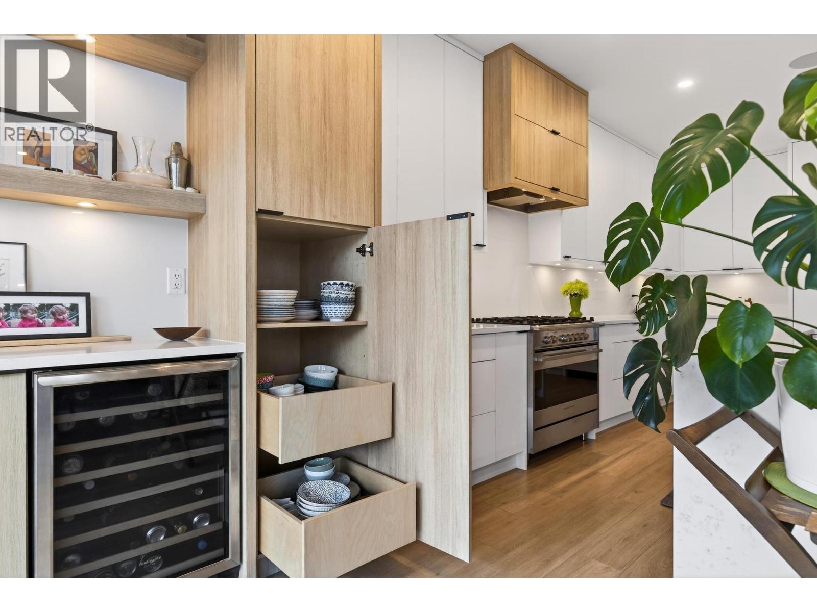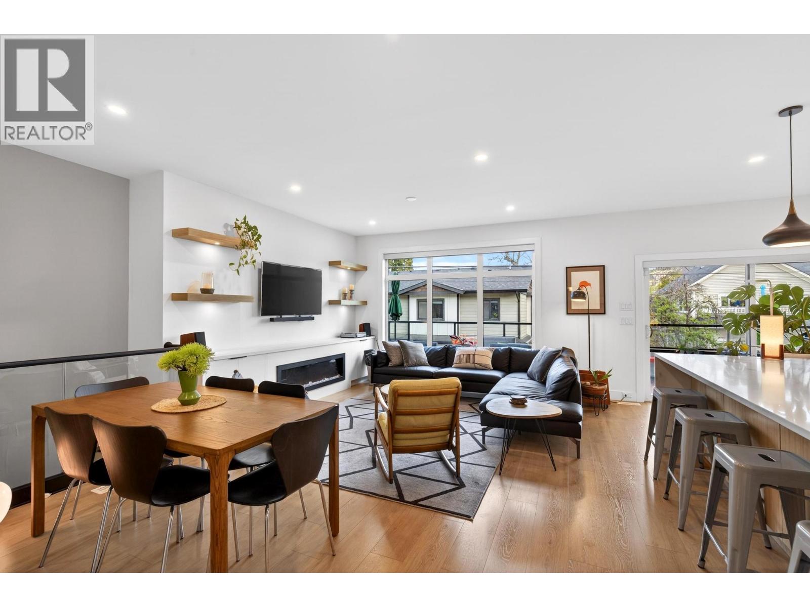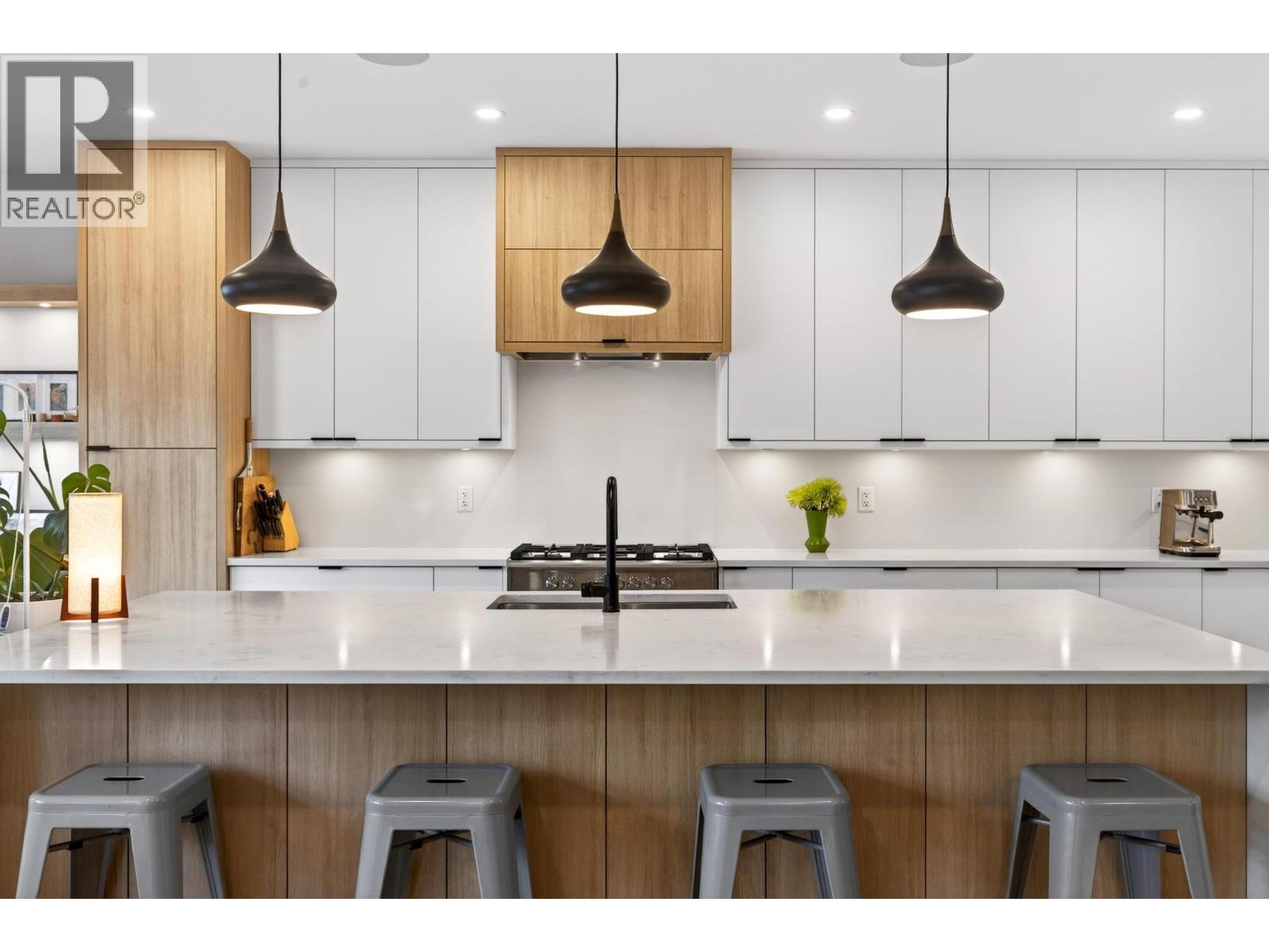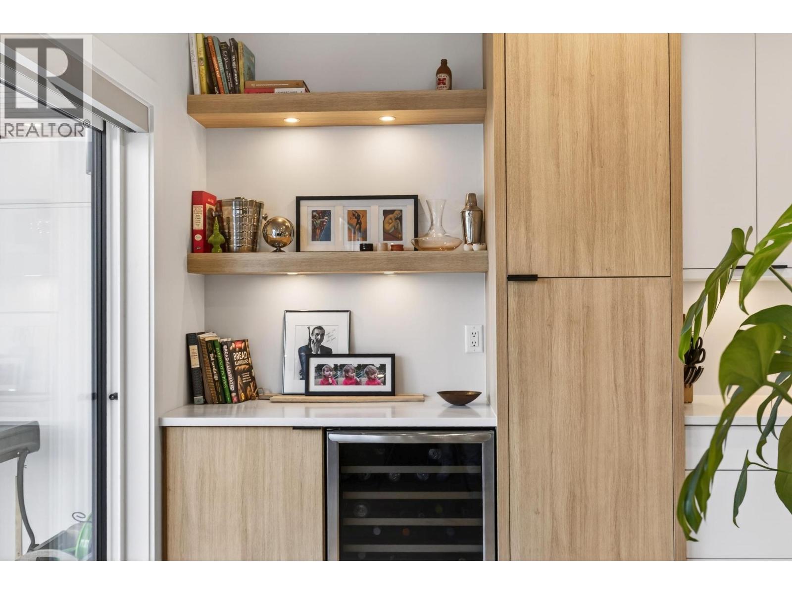Rare 1,800 sq ft, 4-bed, 3-bath townhome in Downtown Kelowna — and this one comes completely turnkey! The sellers have added post-possession upgrades so you skip the landscaping, fencing, blinds, paint, and finish work that most new builds leave for year one. Upgrades include a custom fenced courtyard with gate and low-maintenance rock-scaping; automated blinds throughout; a designer paint package with accent walls and a full-height staircase feature wall; a custom mural wallpaper and black ceiling in the powder room; Ecobee thermostat; ceiling fan in the primary; added shelving in the foyer closet and kitchen; and a built-out garage with bike hangars. The entry level offers three bedrooms, a full bath, laundry, interior access to the private attached garage, and EV charger ready. Upstairs features 9-foot ceilings, oversized energy-efficient windows, a 10-foot quartz waterfall island, Fisher & Paykel panel-ready appliances, custom cabinetry, and a built-in bar with wine cooler. Living and dining open onto a covered patio with natural gas and built-in speakers. The primary suite is upstairs with a walk-through closet and 5-piece ensuite. Pet-friendly. Mountain and city views. Walking distance to everything downtown. (id:21321)