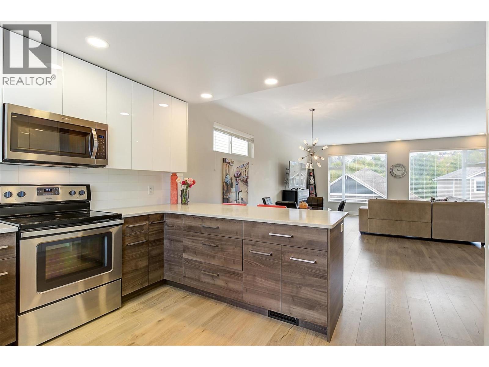 Welcome to the Elkridge community! This stunning townhome features a contemporary open-concept space with 9 ft ceilings in the main living area and oversized windows allowing natural light in. There's both a Private Fenced Safe Backyard PLUS a 540 sq ft ROOFTOP PATIO offering panoramic views of the mountains & Mission Hill Estate Winery. Two (2) very spacious and Completely SEPARATE PRIMARY BEDROOMS both with their own Ensuite Bathrooms and Walk in Closets. Additionally there's a 3rd room you can use for an office or storage. The kitchen has an earthy modern twist featuring high gloss easy clean white and driftwood tone cabinetry, quartz counter tops, stainless steel appliances and pantry. Walk straight out to the patio from the kitchen into the fully fenced backyard. Easy in and out for for barbequing, small garden, pets, kids and ultimately privacy. Double garage with ample storage plus and 2 cars can park in the driveway. Laundry in entry and Garage door access into home. Fantastic convenient location just minutes to the lake, beaches, all shopping, schools, golf, restaurants, award winning wineries - you name it! 2 Pets allowed with no size restriction. Rentals allowed. NO Property Transfer Tax. No lease fees. Strata fee is only $275.50 a month. CMHC approved development. The lease is pre paid until 2109. Let's go! (id:21321)