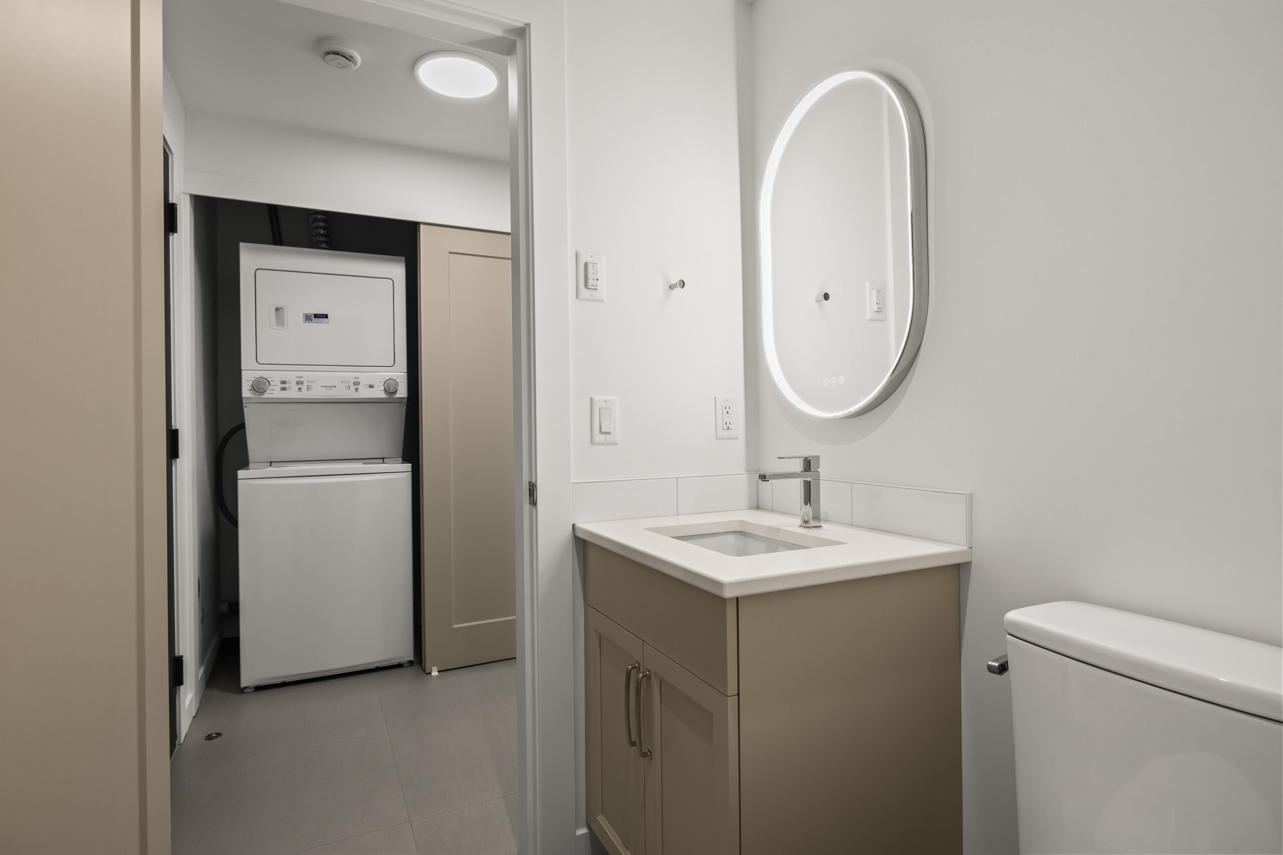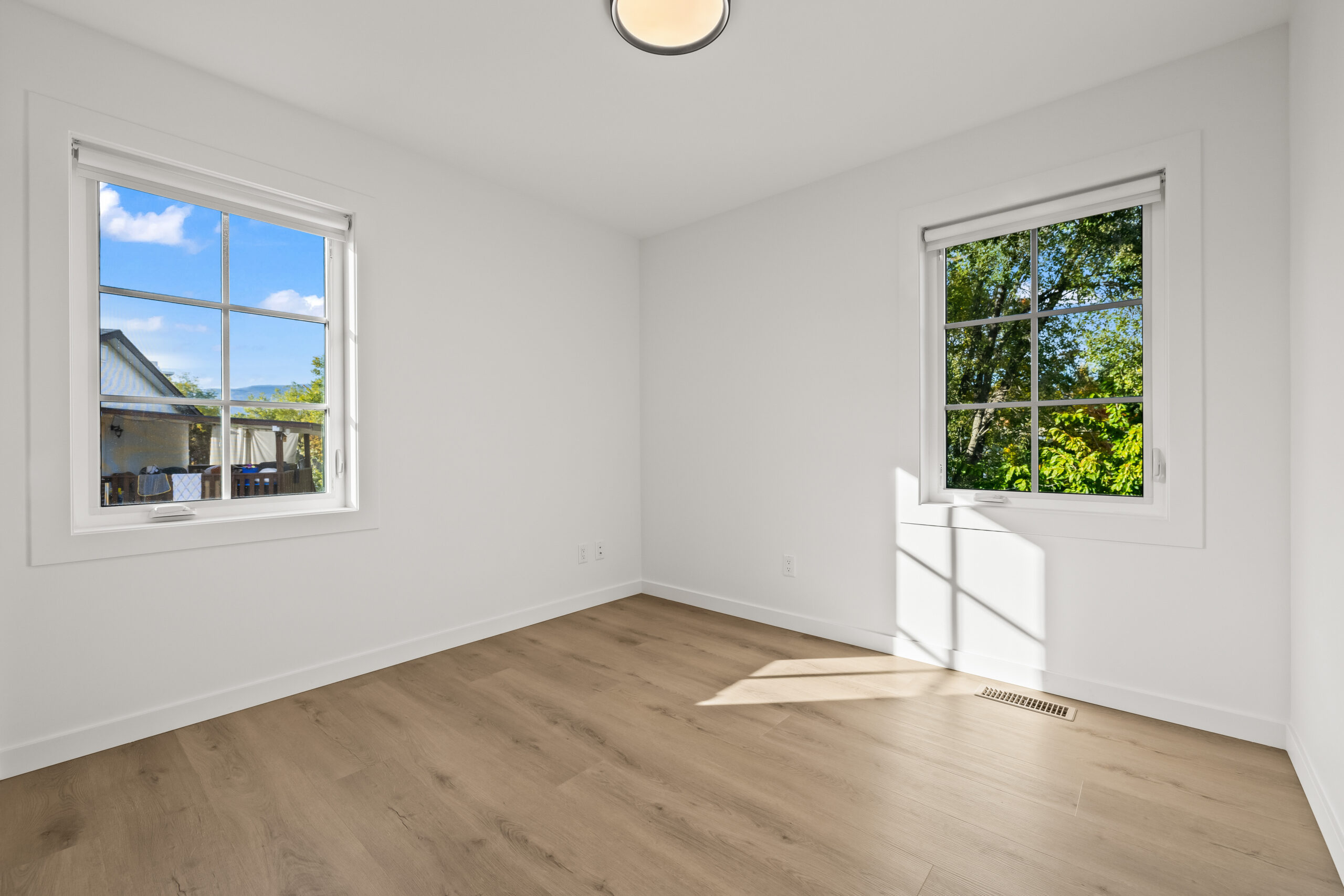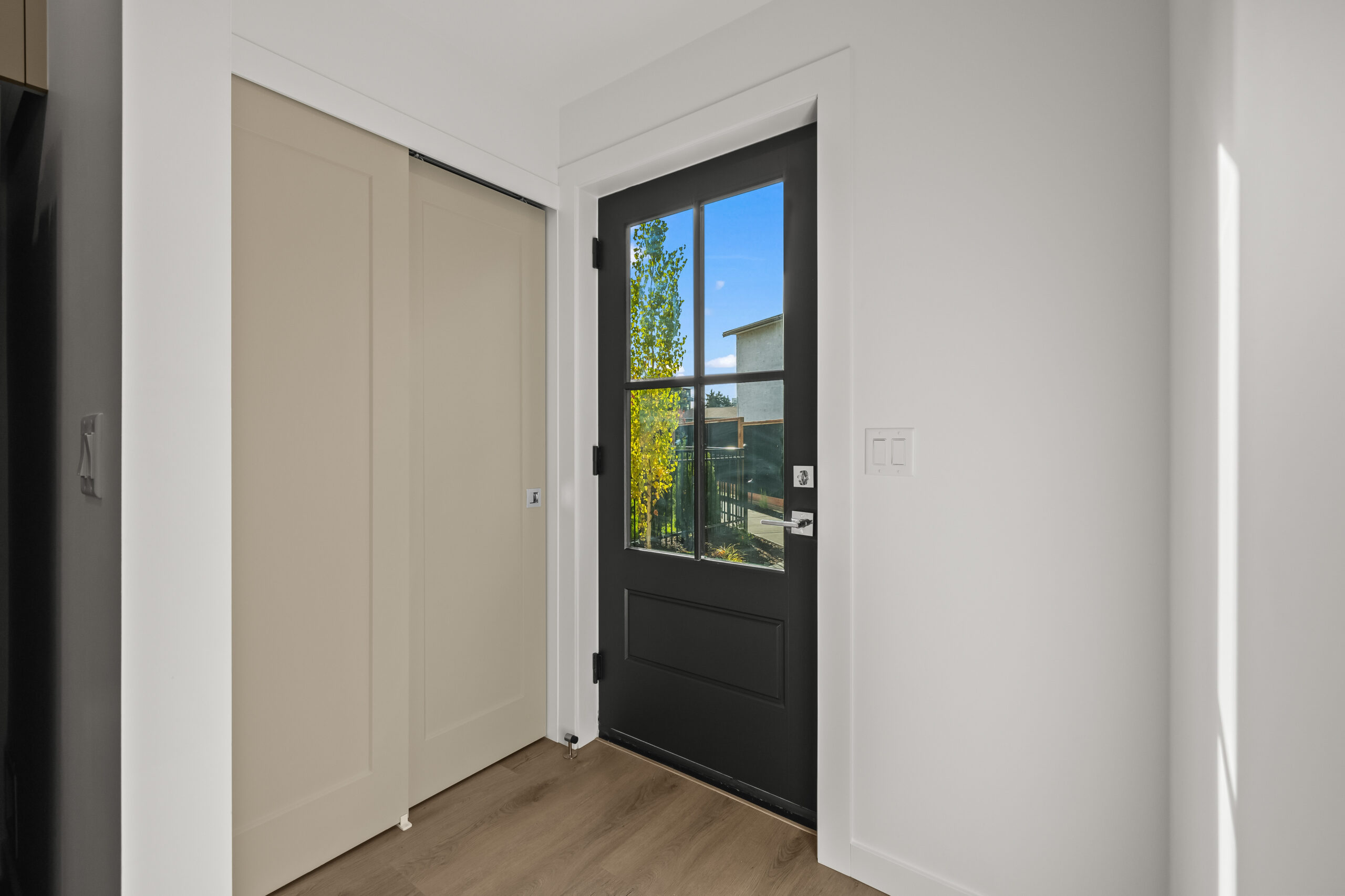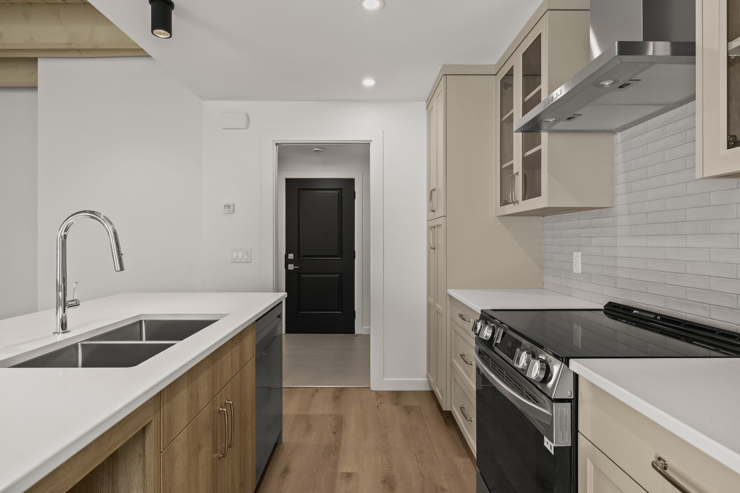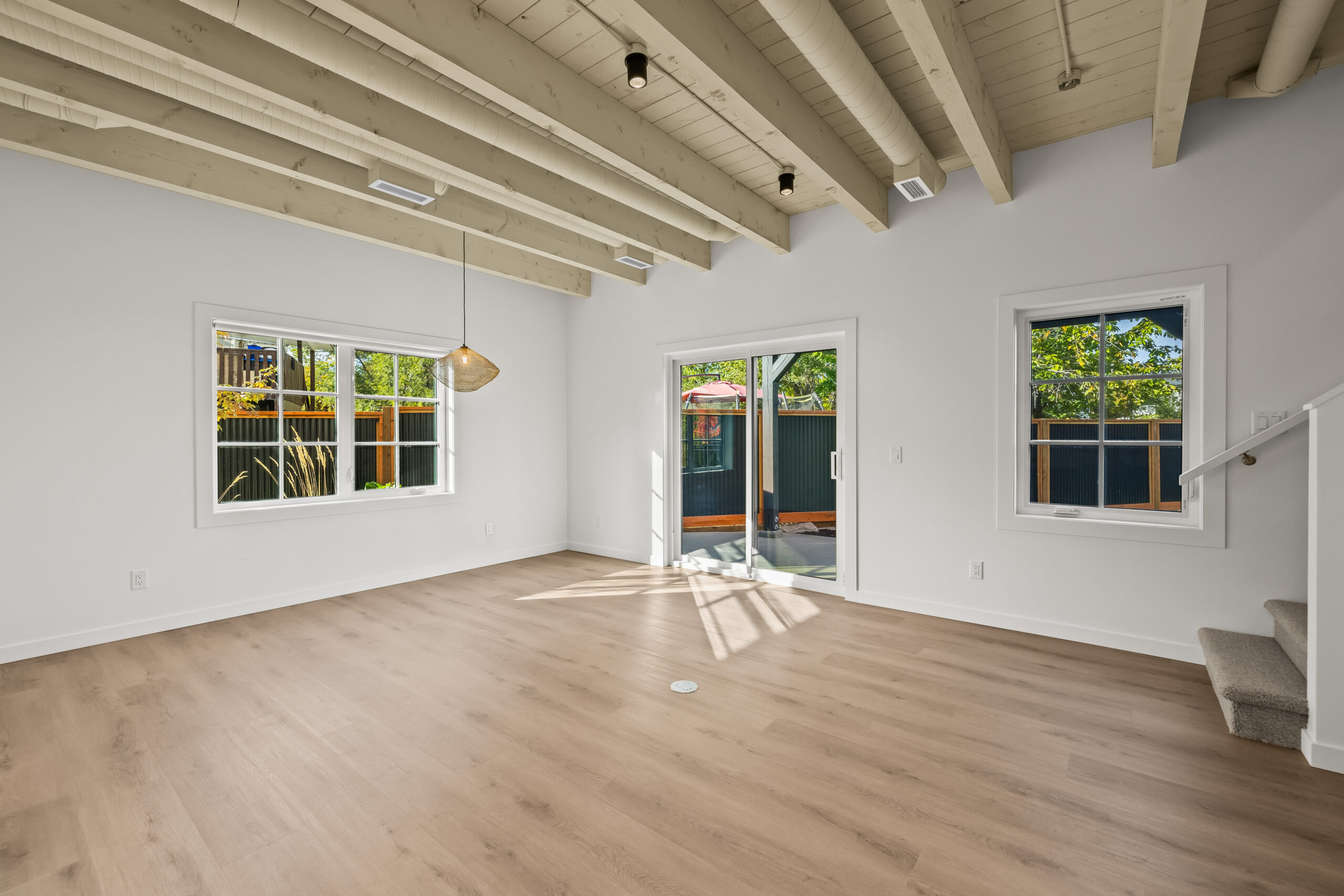 Part of an exclusive five-home collection by Worman Homes, this brand-new 4-bedroom residence offers the space, style, and comfort of a single-family home in a premium duplex setting. Its spacious private back yard makes it one of the most sought-after homes in the community — perfect for relaxing, entertaining, or enjoying sunny Kelowna days. Inside, you’ll find exposed timber ceilings, custom shaker cabinetry, quartz counters, LG appliances, and main floor laundry with a stacking Whirlpool washer/dryer, plus a powder room for guests. Upstairs, the primary suite features a dual-sink ensuite, with three additional bedrooms, a full bath, and a spacious bonus room perfect for a home office, playroom, or media room. With a double side-by-side garage, quiet cul-de-sac location, and proximity to Okanagan College, KLO Middle School, shops, dining, and the lake, this Worman-built home checks every box.