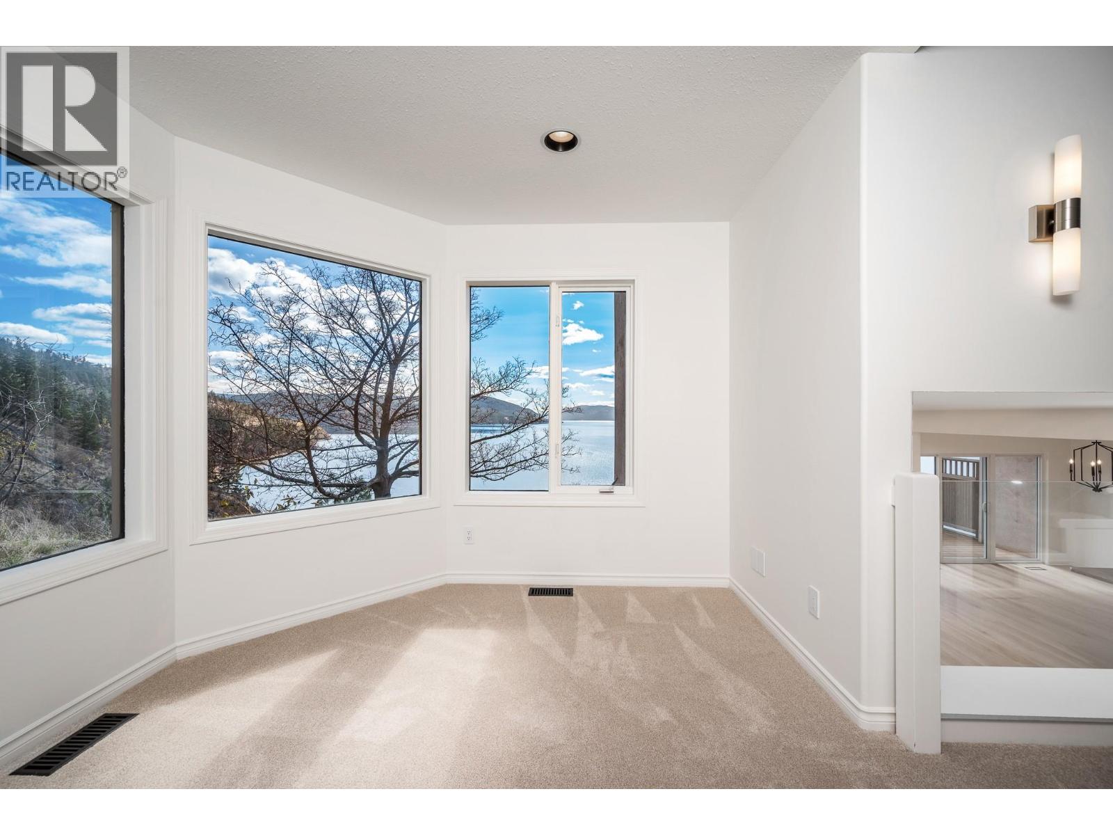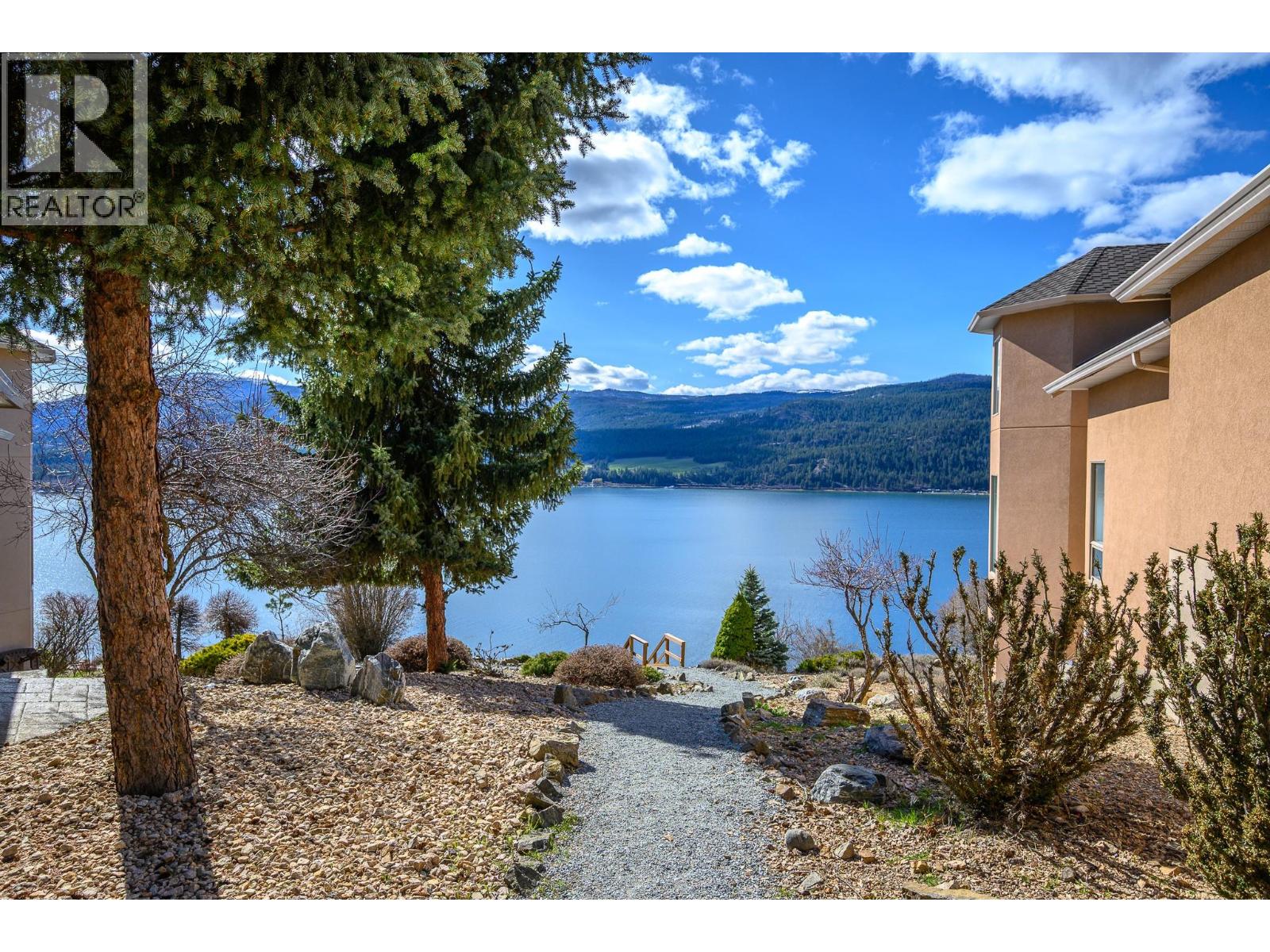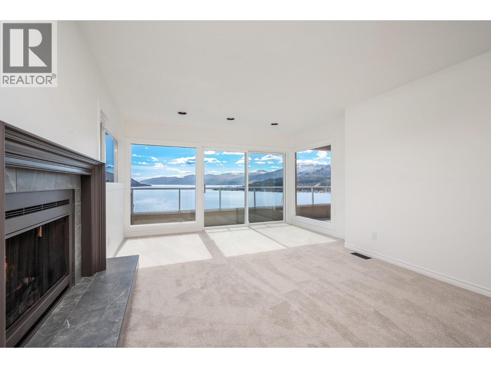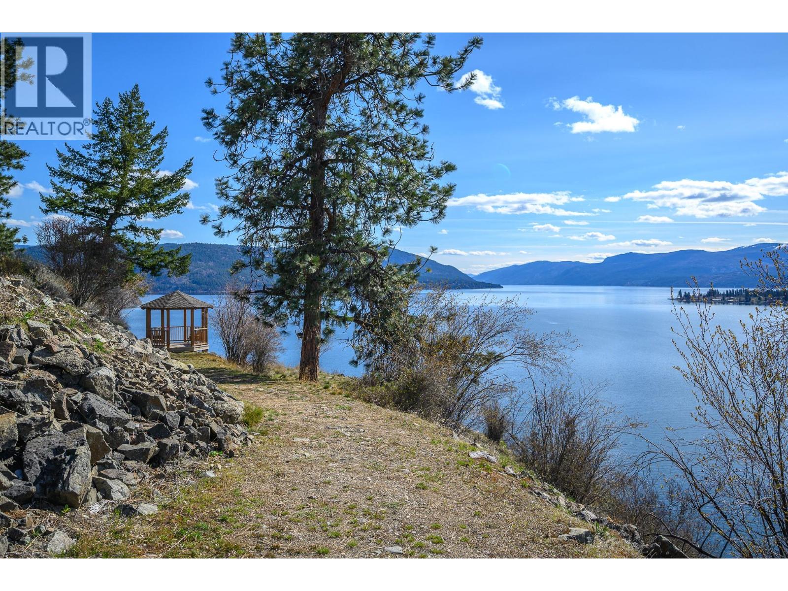 Perched on the bluffs of Okanagan Lake, this stunning end-unit townhouse offers 3 bedrooms + den, 2 bathrooms, and sweeping lake views from almost every room. With no neighbors on one side, this home feels completely private, surrounded by nature and panoramic vistas that set it apart in Peregrine Point Estates. Offering lock-and-leave convenience, year-round living, or a recreational retreat, this beautifully updated home - on the market for the first time ever - has it all! Bright living, dining, and kitchen areas feature a gas fireplace and abundant natural light, perfect for entertaining or relaxing. Upstairs the massive primary bedroom captures the incredible lake view and opens onto a balcony for sunrise and sunset views plus a private ensuite and walk in closet, The large second bedroom also enjoys balcony access and a gas fireplace. A smaller third bedroom, versatile den/sunroom, a convenient storage room + crawl space add functionality and practicality. Many thoughtful updates include fresh paint, new flooring and carpet, lighting, updated plumbing, and a new hot water tank (plus more), offering peace of mind. Residents enjoy a gated, pet-friendly community with over 500’ of private beachfront, dock, swimming, boat launch, walking paths, tennis/pickleball courts, picnic areas, and a charming gazebo. Parking includes a single garage, an extra outdoor stall, and ample guest spaces. This is a truly turnkey lakefront lifestyle opportunity. Don't miss the virtual tour! (id:21321)