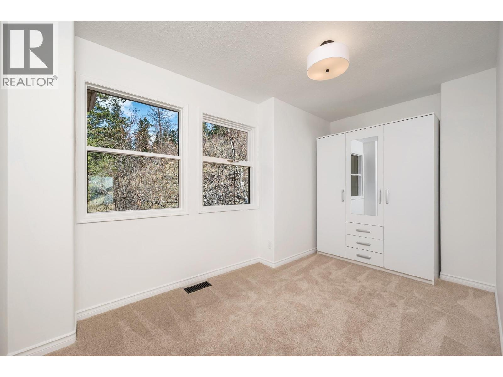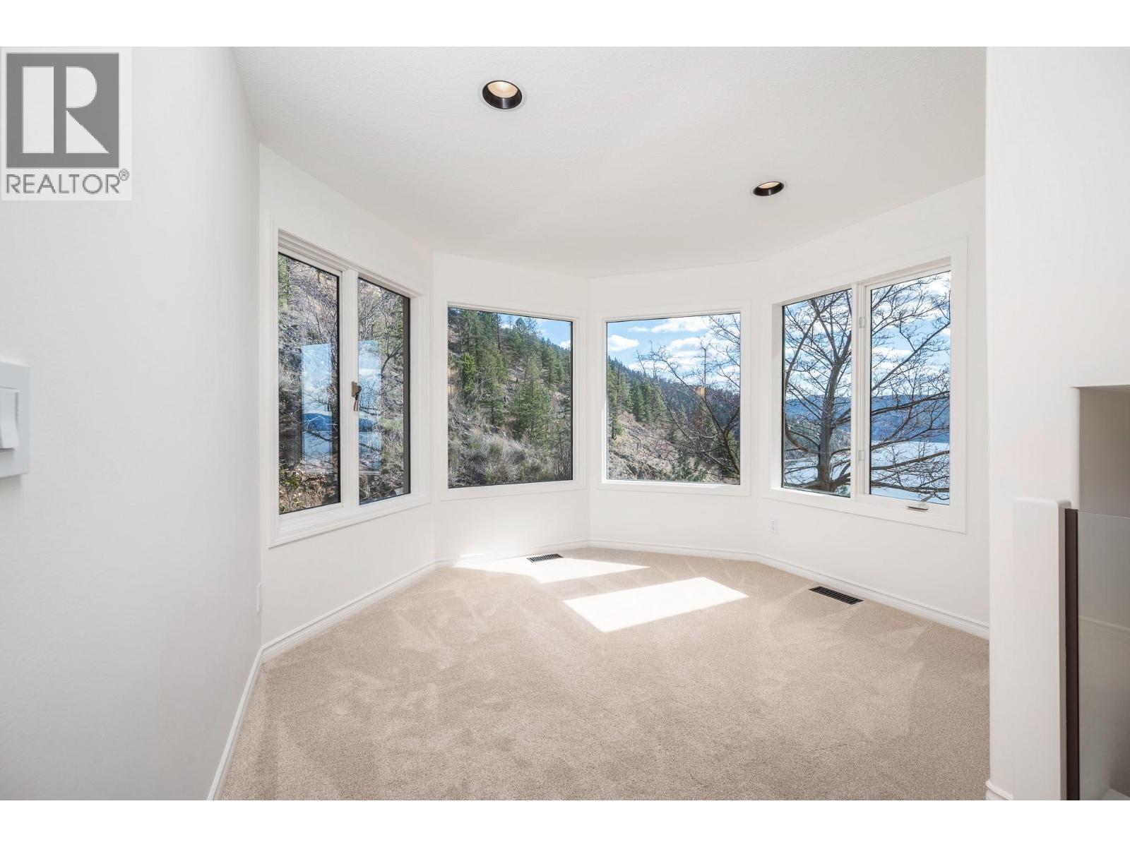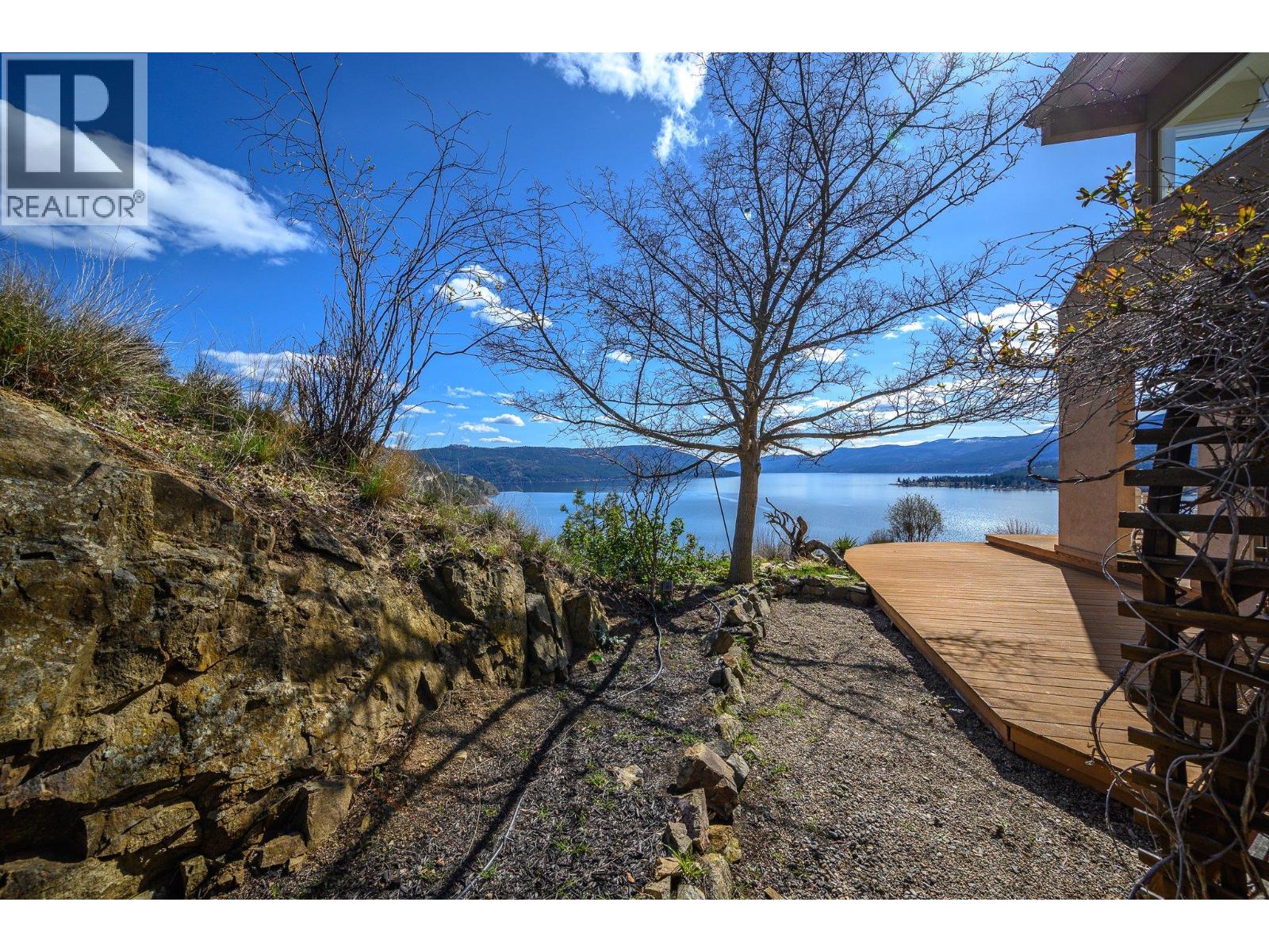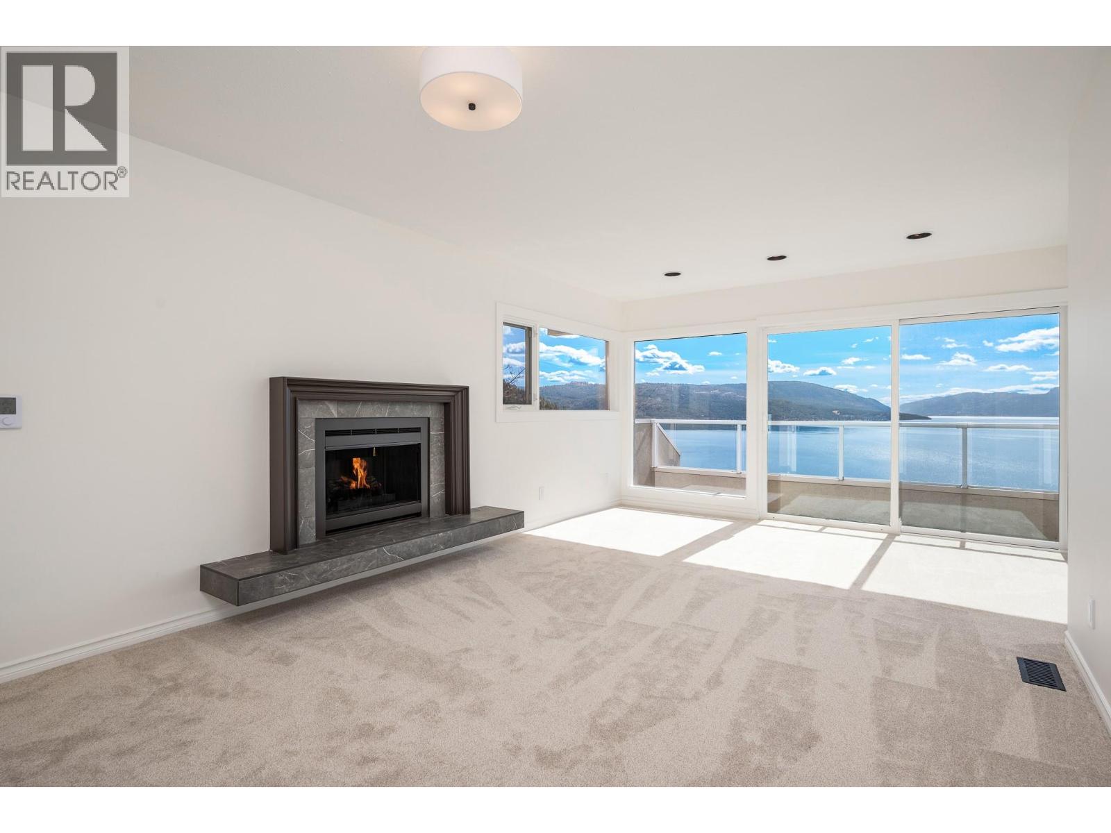 Perched on the bluffs of Okanagan Lake, this stunning end-unit townhouse offers 3 bedrooms + den, 2 bathrooms, and sweeping lake views from almost every room. With no neighbors on one side, this home feels completely private, surrounded by nature and panoramic vistas that set it apart in Peregrine Point Estates. Offering lock-and-leave convenience, year-round living, or a recreational retreat, this beautifully updated home - on the market for the first time ever - has it all! Bright living, dining, and kitchen areas feature a gas fireplace and abundant natural light, perfect for entertaining or relaxing. Upstairs the massive primary bedroom captures the incredible lake view and opens onto a balcony for sunrise and sunset views plus a private ensuite and walk in closet, The large second bedroom also enjoys balcony access and a gas fireplace. A smaller third bedroom, versatile den/sunroom, a convenient storage room + crawl space add functionality and practicality. Many thoughtful updates include fresh paint, new flooring and carpet, lighting, updated plumbing, and a new hot water tank (plus more), offering peace of mind. Residents enjoy a gated, pet-friendly community with over 500’ of private beachfront, dock, swimming, boat launch, walking paths, tennis/pickleball courts, picnic areas, and a charming gazebo. Parking includes a single garage, an extra outdoor stall, and ample guest spaces. This is a truly turnkey lakefront lifestyle opportunity. Don't miss the virtual tour! (id:21321)