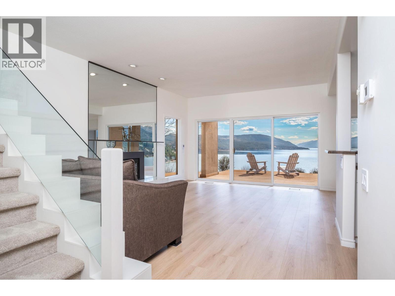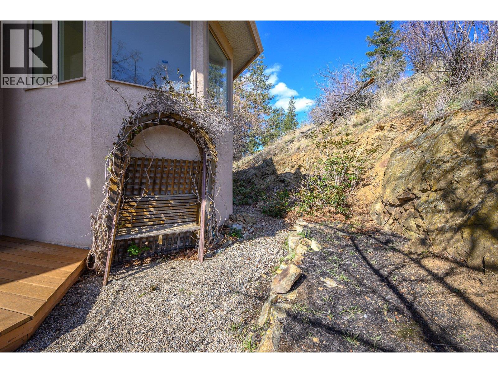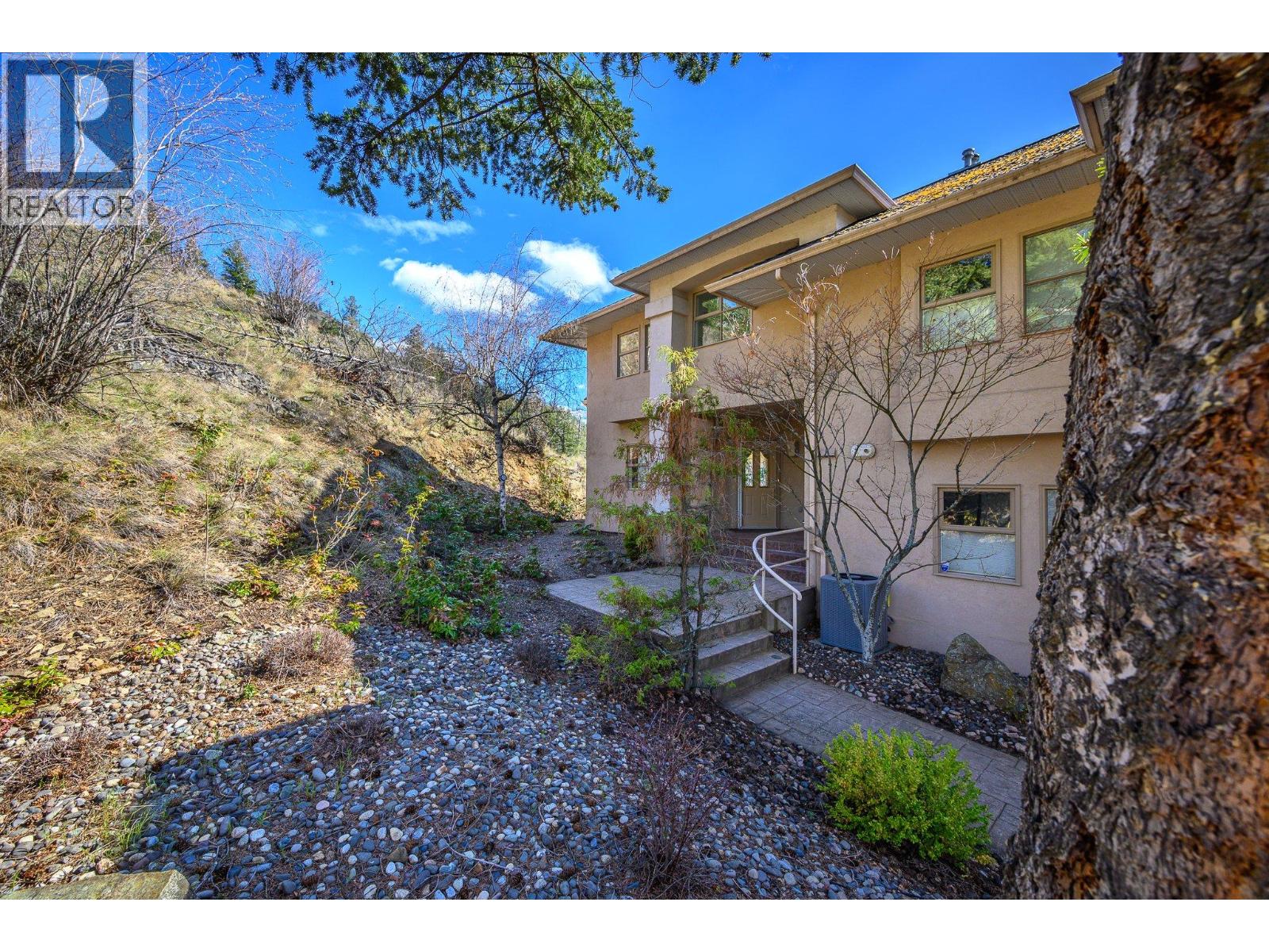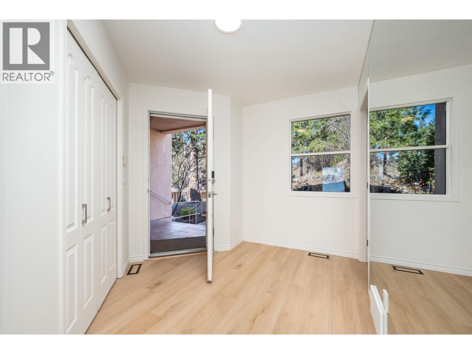 Perched on the bluffs of Okanagan Lake, this stunning end-unit townhouse offers 3 bedrooms + den, 2 bathrooms, and sweeping lake views from almost every room. With no neighbors on one side, this home feels completely private, surrounded by nature and panoramic vistas that set it apart in Peregrine Point Estates. Offering lock-and-leave convenience, year-round living, or a recreational retreat, this beautifully updated home - on the market for the first time ever - has it all! Bright living, dining, and kitchen areas feature a gas fireplace and abundant natural light, perfect for entertaining or relaxing. Upstairs the massive primary bedroom captures the incredible lake view and opens onto a balcony for sunrise and sunset views plus a private ensuite and walk in closet, The large second bedroom also enjoys balcony access and a gas fireplace. A smaller third bedroom, versatile den/sunroom, a convenient storage room + crawl space add functionality and practicality. Many thoughtful updates include fresh paint, new flooring and carpet, lighting, updated plumbing, and a new hot water tank (plus more), offering peace of mind. Residents enjoy a gated, pet-friendly community with over 500’ of private beachfront, dock, swimming, boat launch, walking paths, tennis/pickleball courts, picnic areas, and a charming gazebo. Parking includes a single garage, an extra outdoor stall, and ample guest spaces. This is a truly turnkey lakefront lifestyle opportunity. Don't miss the virtual tour! (id:21321)