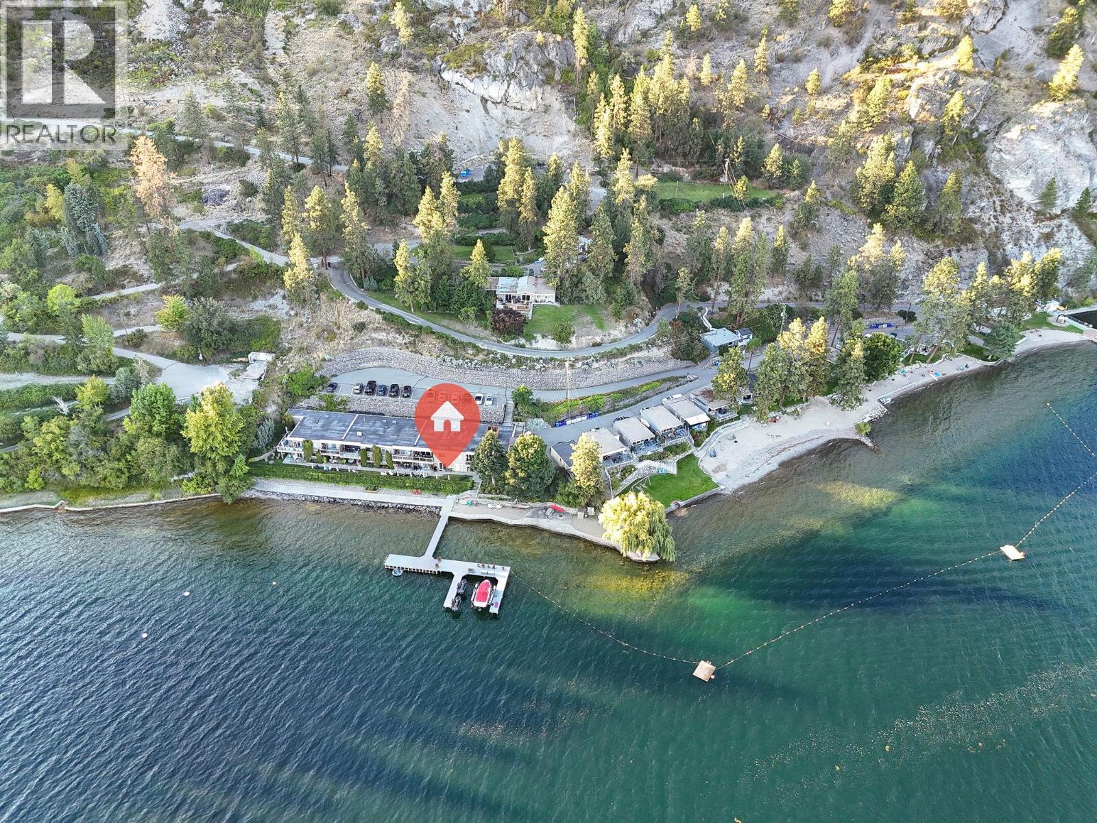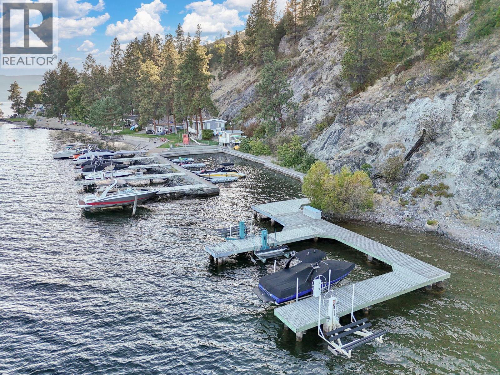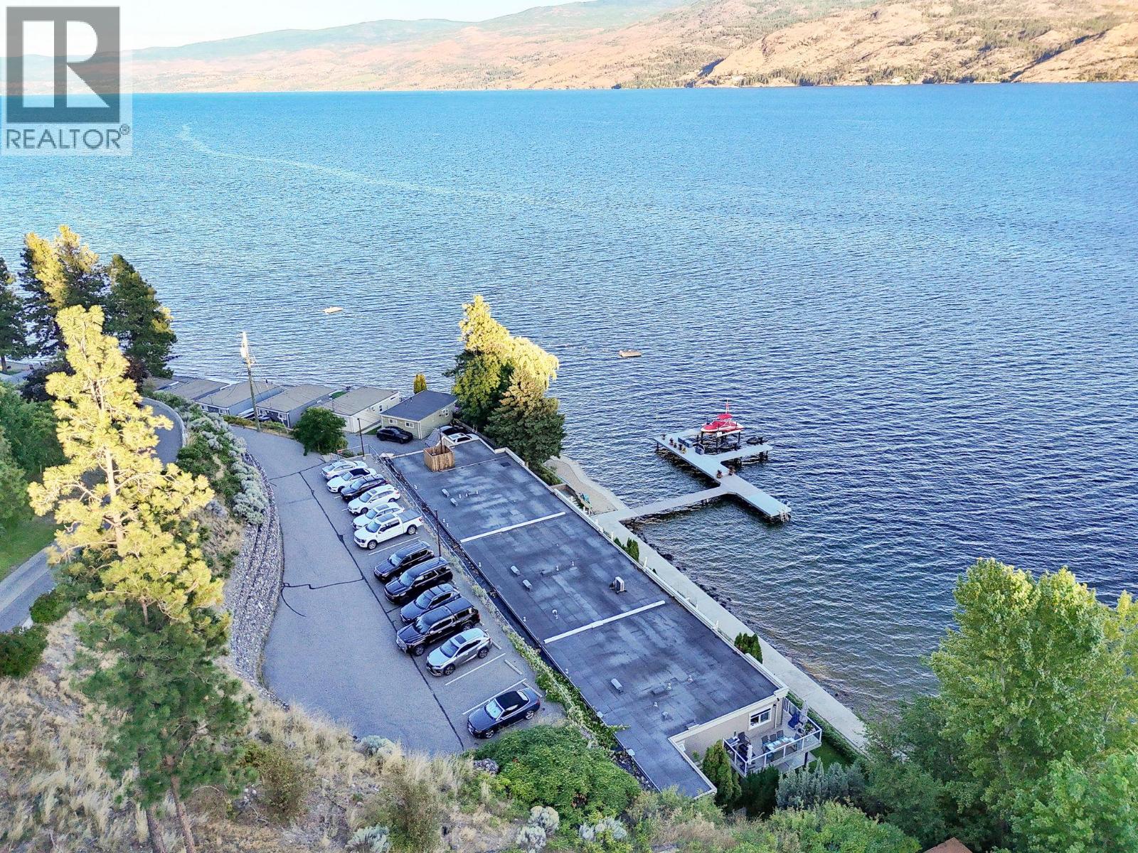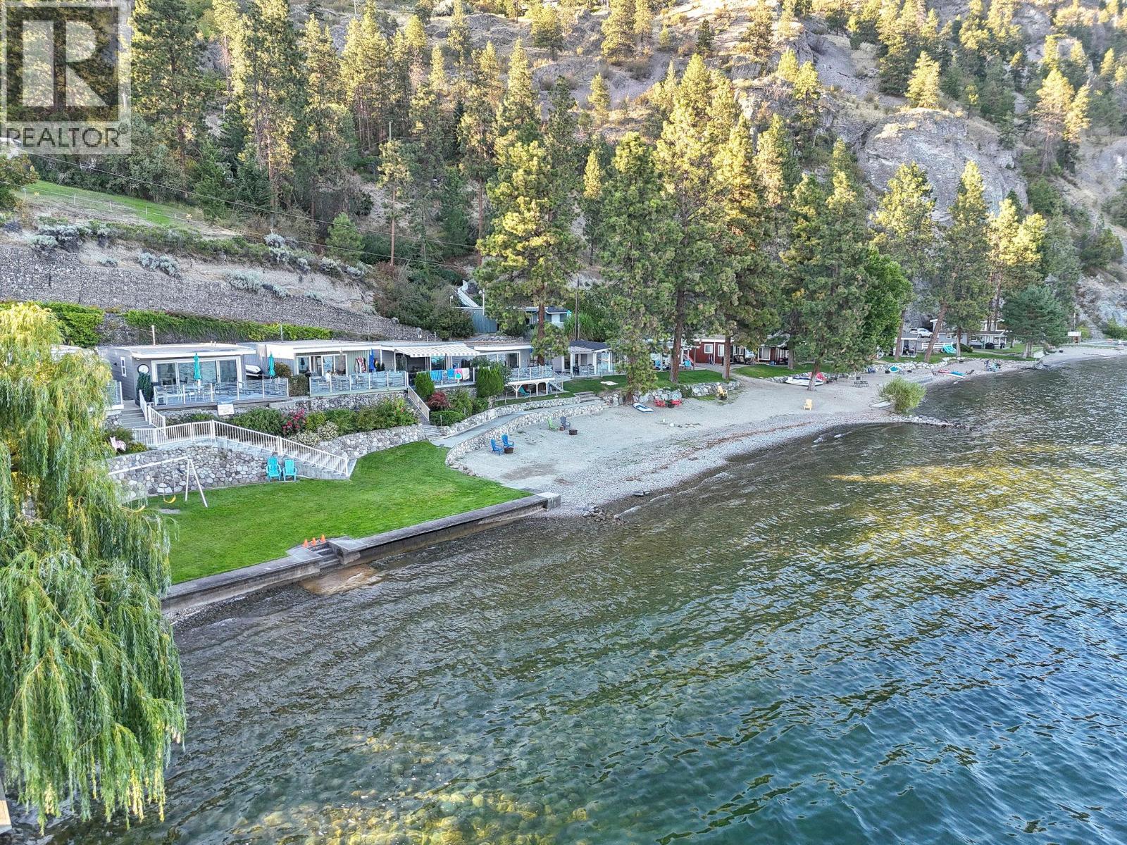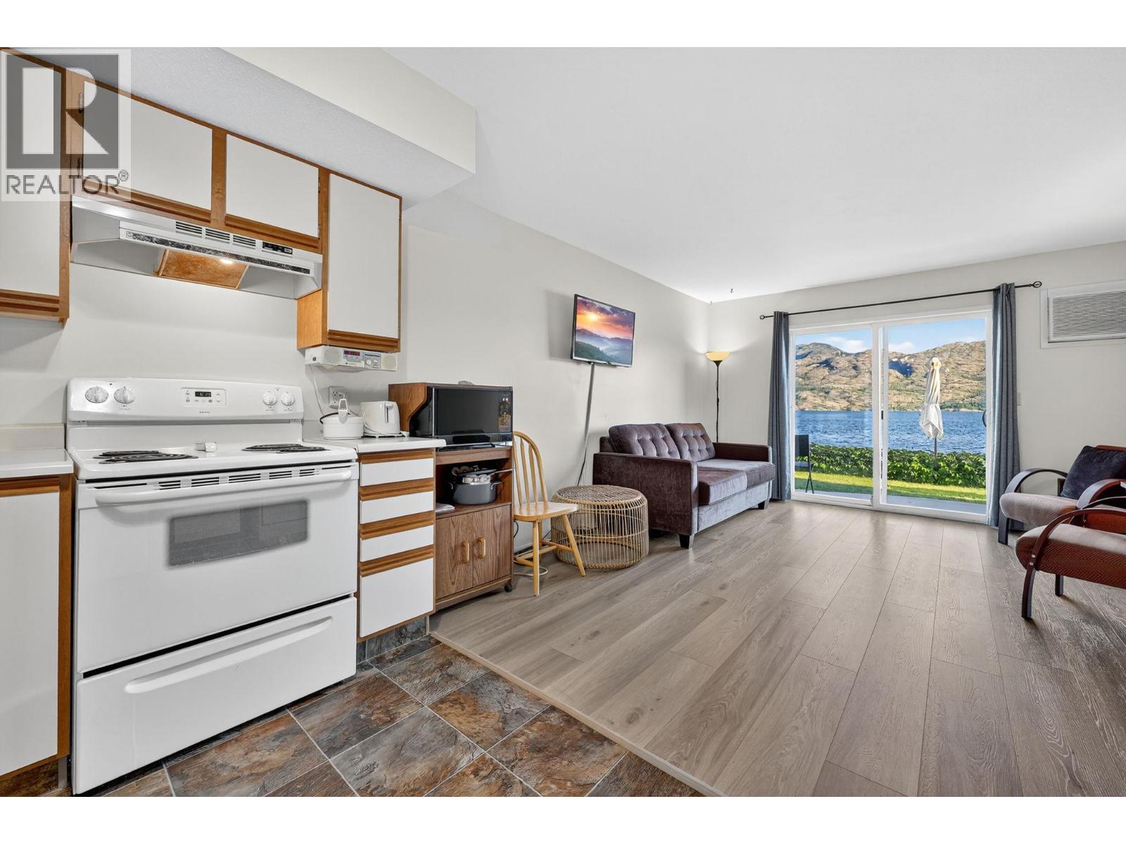 Own your own piece of Okanagan lake front! Best kept secret in the area. This open concept, air conditioned condo in a secure gated community has everything you need to spend your summers on the lake. Sleeps 4, fully furnished, with a new hide a bed, a murphy bed with a new mattress, newer smart TV, tables, chairs and even pots, pans, dishware, glasses, cutlery and a BBQ. New laminate flooring this past year. Wake upright beside the lake and enjoy the lakefront breeze while having a morning cup of coffee on your patio beside the water. Extra storage and 1 assigned parking spot. The resort life comes with many amenities such as boat moorage in the private marina, a clubhouse, private shared dock, boat launch, boat trailer parking, fire pits, coin laundry and ice machine. Telus fibre optic WIFI is available and for extra security the marina and guest parking is monitored by cameras. Great for rental income when you aren't using it yourself. Come see for yourself what lake life can be like. Don't miss out on this great opportunity. These units don't come up for sale very often. (id:21321)
