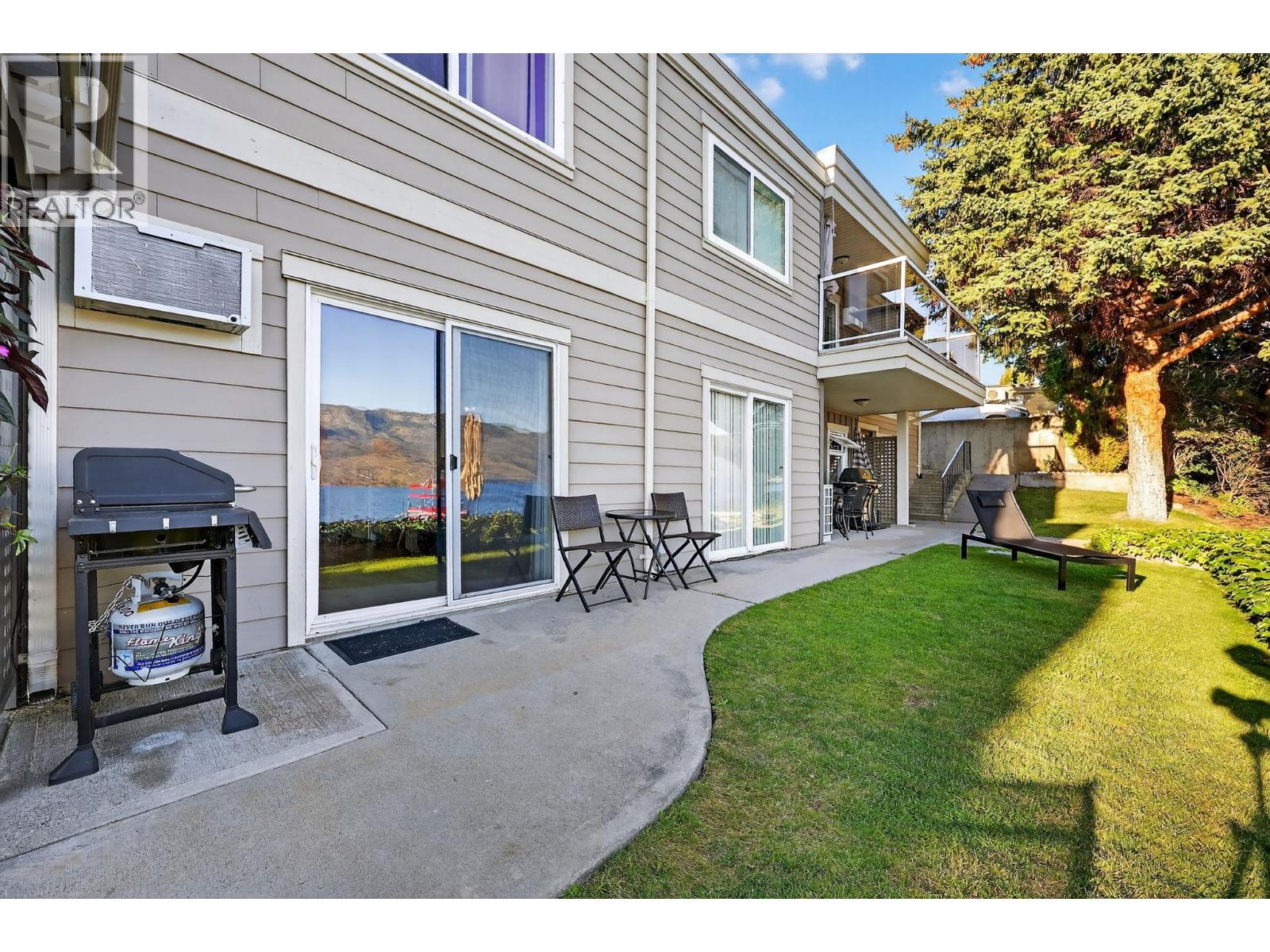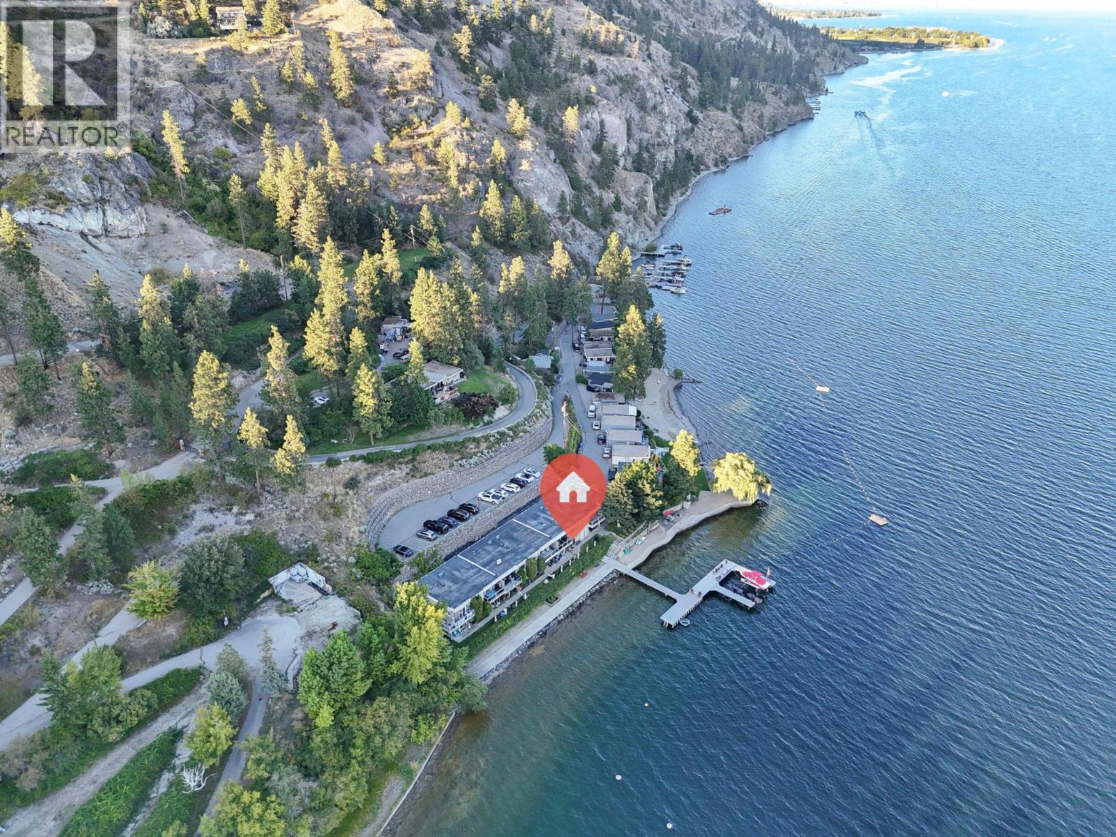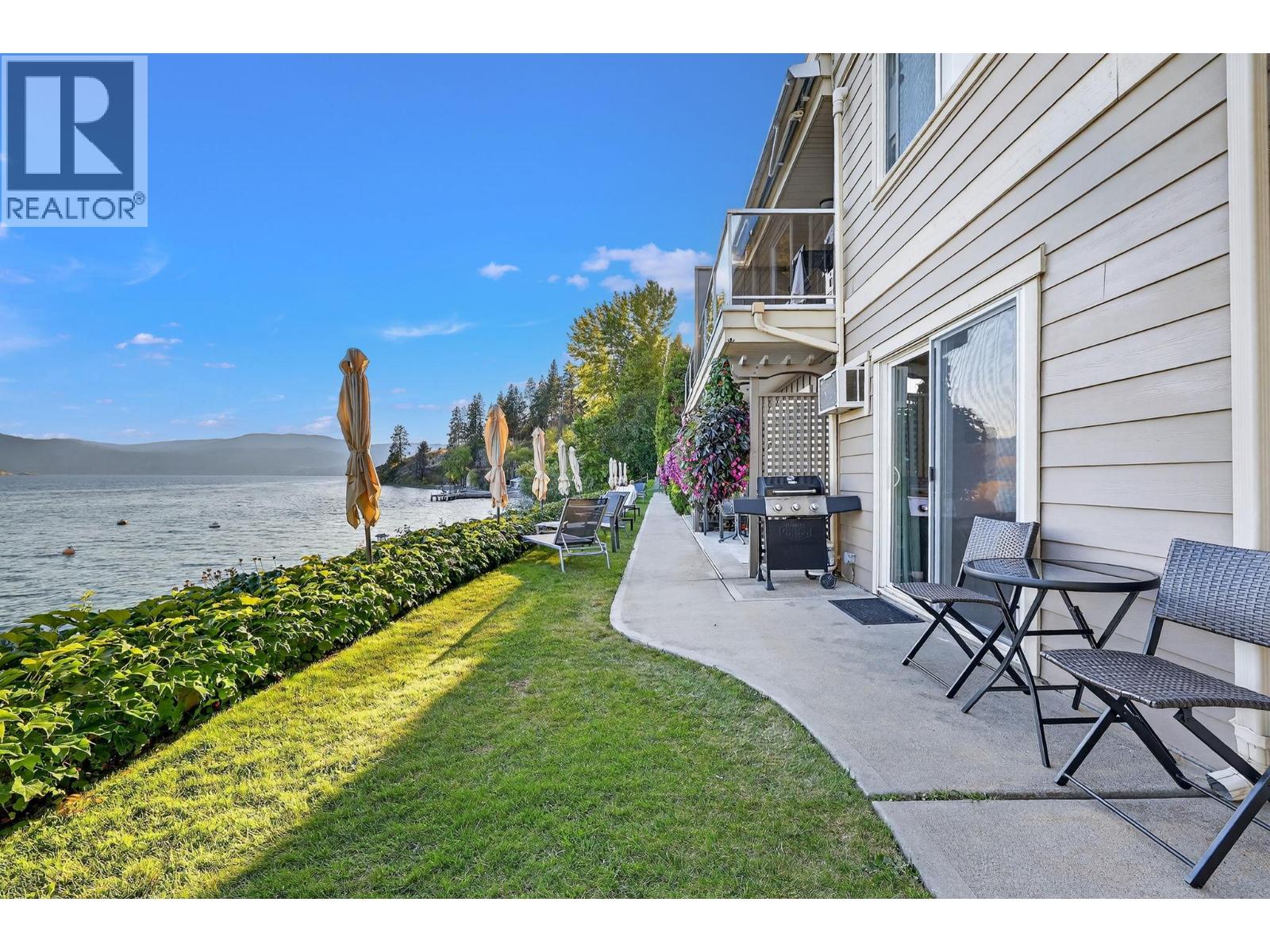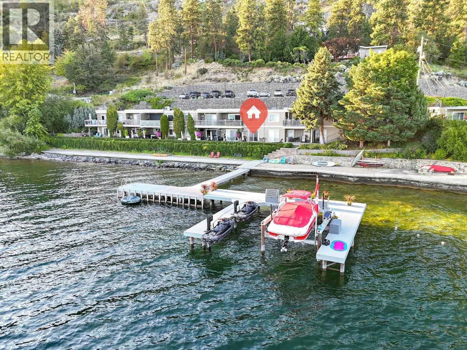 Own your own piece of Okanagan lake front! Best kept secret in the area. This open concept, air conditioned condo in a secure gated community has everything you need to spend your summers on the lake. Sleeps 4, fully furnished, with a new hide a bed, a murphy bed with a new mattress, newer smart TV, tables, chairs and even pots, pans, dishware, glasses, cutlery and a BBQ. New laminate flooring this past year. Wake upright beside the lake and enjoy the lakefront breeze while having a morning cup of coffee on your patio beside the water. Extra storage and 1 assigned parking spot. The resort life comes with many amenities such as boat moorage in the private marina, a clubhouse, private shared dock, boat launch, boat trailer parking, fire pits, coin laundry and ice machine. Telus fibre optic WIFI is available and for extra security the marina and guest parking is monitored by cameras. Great for rental income when you aren't using it yourself. Come see for yourself what lake life can be like. Don't miss out on this great opportunity. These units don't come up for sale very often. (id:21321)