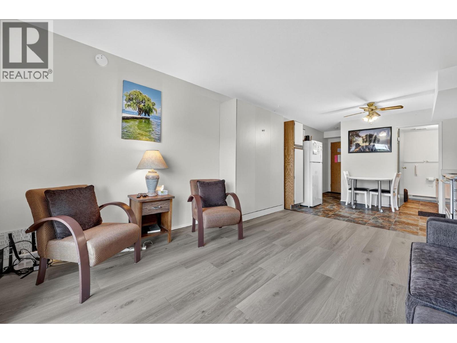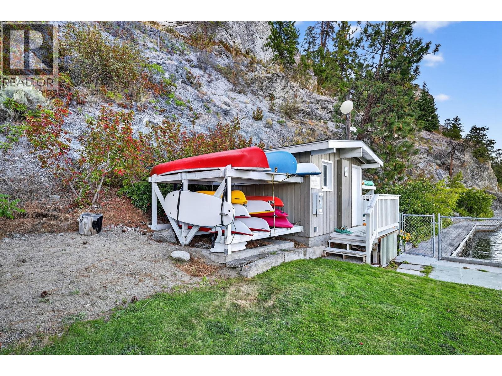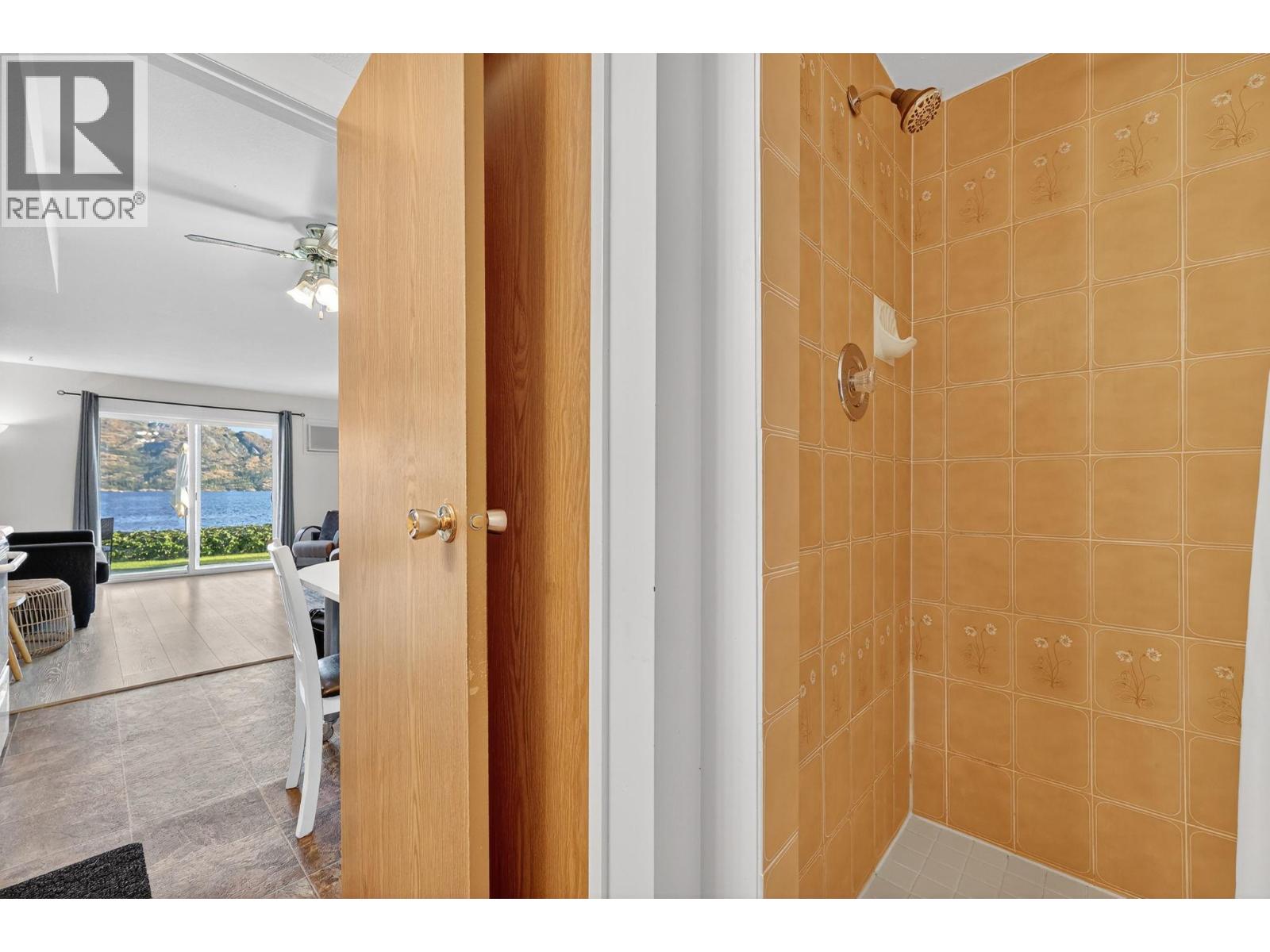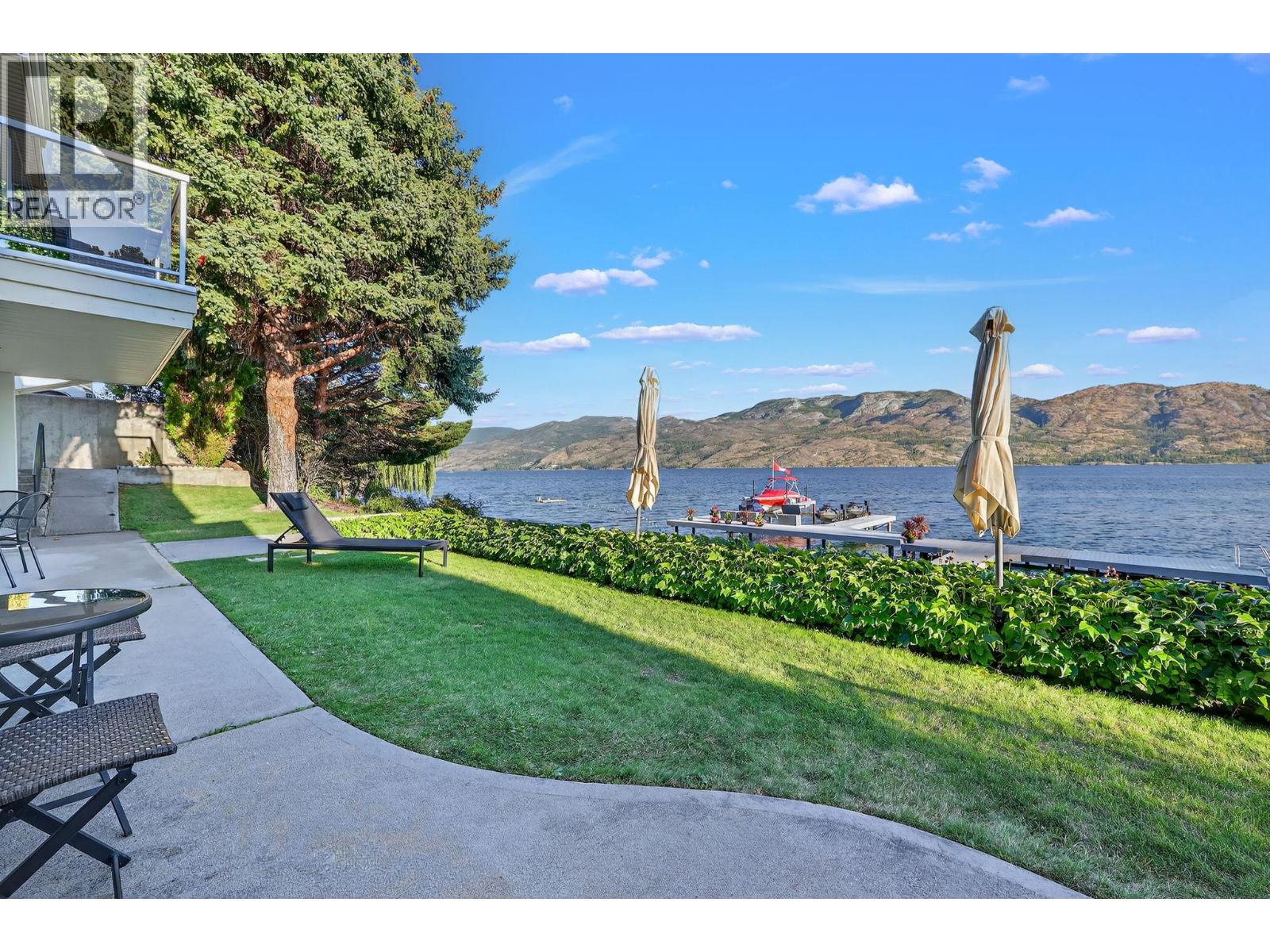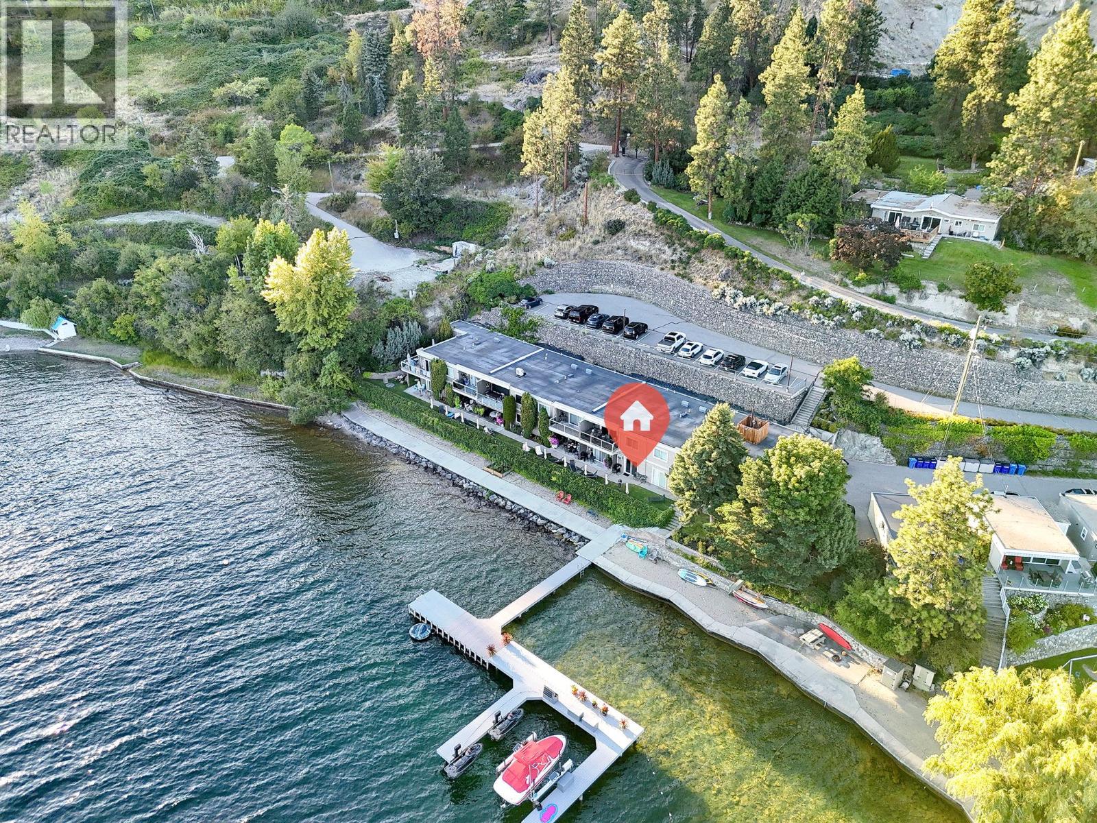 Own your own piece of Okanagan lake front! Best kept secret in the area. This open concept, air conditioned condo in a secure gated community has everything you need to spend your summers on the lake. Sleeps 4, fully furnished, with a new hide a bed, a murphy bed with a new mattress, newer smart TV, tables, chairs and even pots, pans, dishware, glasses, cutlery and a BBQ. New laminate flooring this past year. Wake upright beside the lake and enjoy the lakefront breeze while having a morning cup of coffee on your patio beside the water. Extra storage and 1 assigned parking spot. The resort life comes with many amenities such as boat moorage in the private marina, a clubhouse, private shared dock, boat launch, boat trailer parking, fire pits, coin laundry and ice machine. Telus fibre optic WIFI is available and for extra security the marina and guest parking is monitored by cameras. Great for rental income when you aren't using it yourself. Come see for yourself what lake life can be like. Don't miss out on this great opportunity. These units don't come up for sale very often. (id:21321)