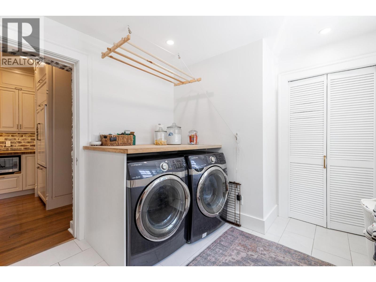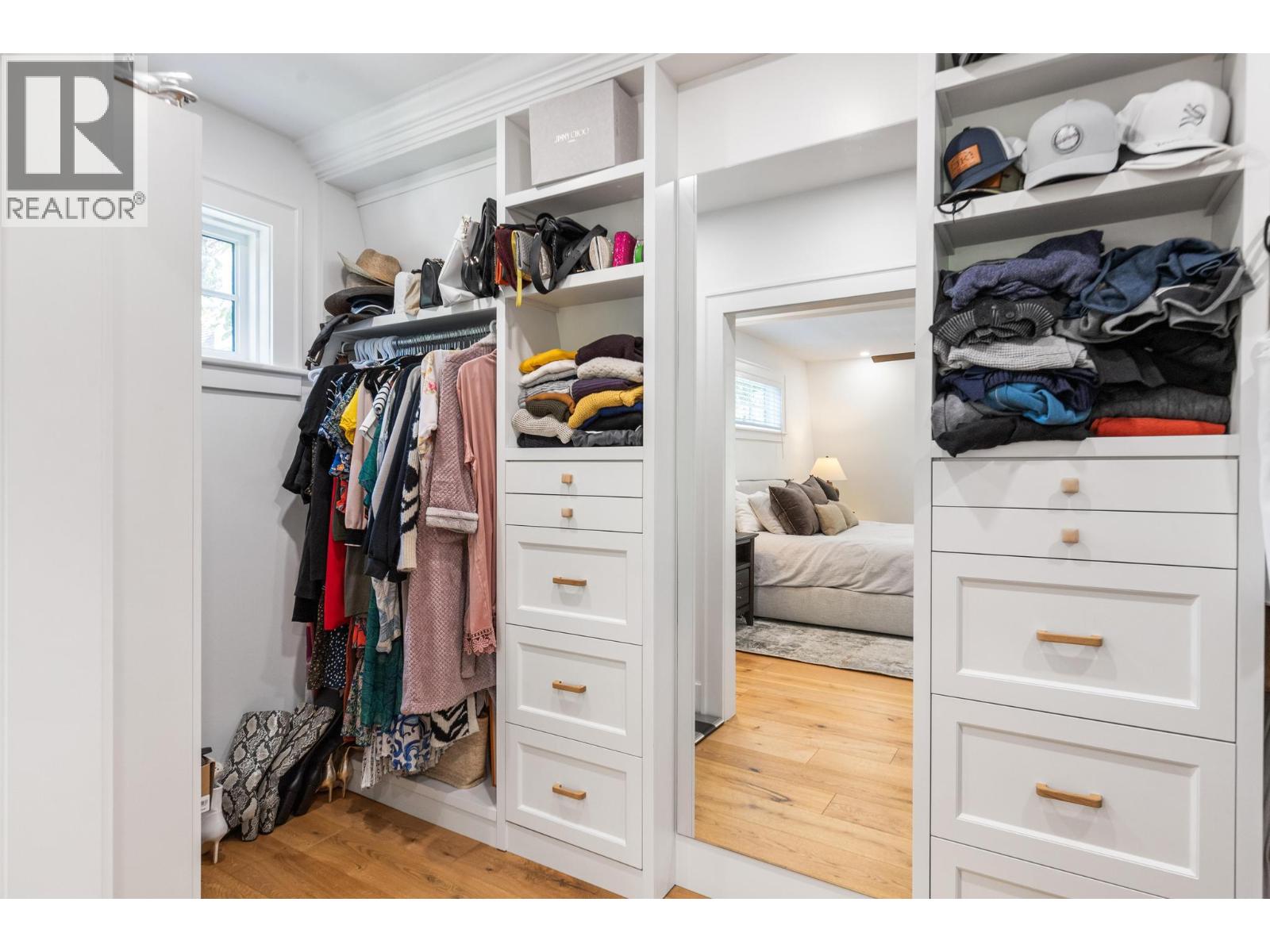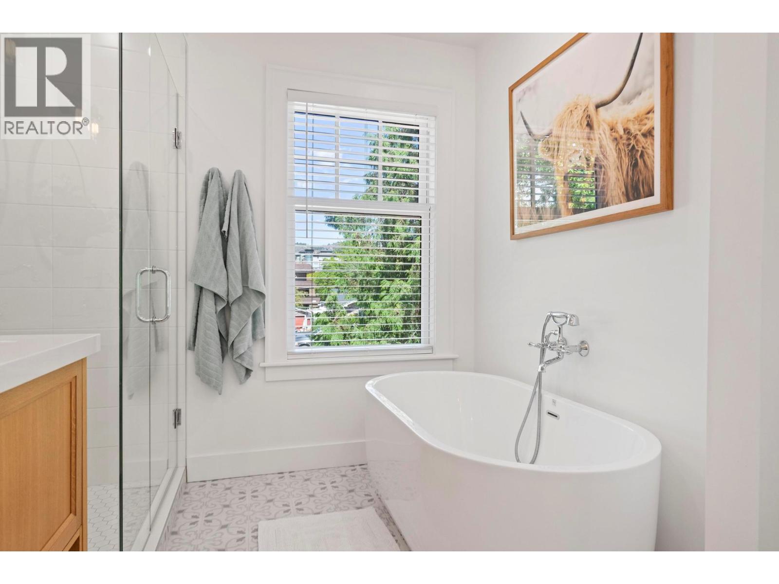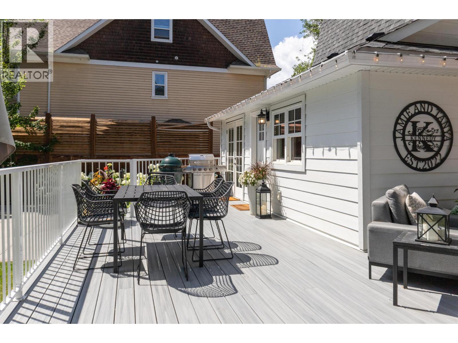 Welcome to 'James Knowles House' one of the most iconic homes of Kelowna! Rich in history this home has been meticulously preserved over the years undergoing a substantial top to bottom renovation that seamlessly marries elegance with its cherished heritage features and charm. Gorgeous remodeled kitchen with all new cabinetry, classic hardware, appliances, farmhouse sink and faux brick. Just off the kitchen is a breakfast nook, large formal dining room, powder room and cozy living room with wood fireplace. All 3 bedrooms and bathrooms upstairs have been tastefully updated including a spacious primary bedroom with custom walk in closet and stunning ensuite with floor to ceiling tiled shower and dual shower heads. Adding to the allure is a modern 2 bed 1 bath carriage house, built in 2018, boasting skylights and vaulted ceilings—a true masterpiece in itself, perfect for AirBNB! The property's backyard is a haven for entertainers, featuring an expansive deck and a yard fit for a pool. The professionally landscaped surroundings showcase mature trees and lush botanicals, creating an enchanting ambiance both in the front and back. Ample parking with oversized detached double garage with additional bay sitting above the 670+ sq ft suspended slab. Everything has been updated throughout including the electrical, plumbing, roof, windows, HVAC system, new verandah and concrete driveway. One of the largest MF1 zoned lots in downtown Kelowna (.32 acres). Make this dream property yours! (id:21321)