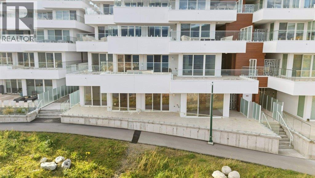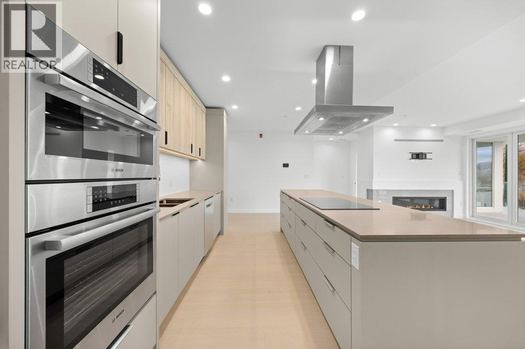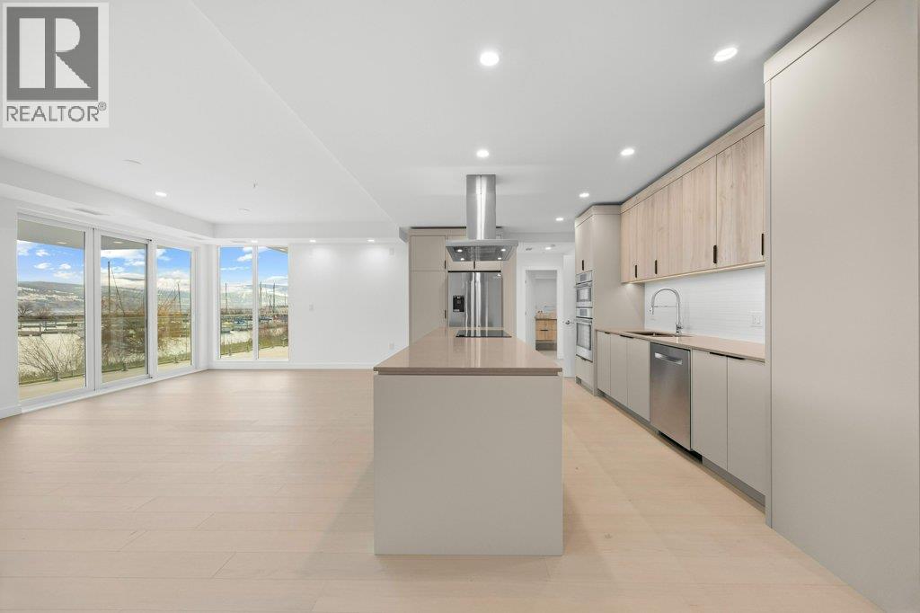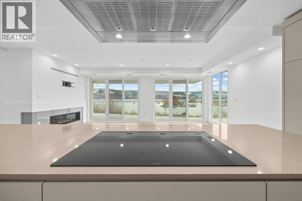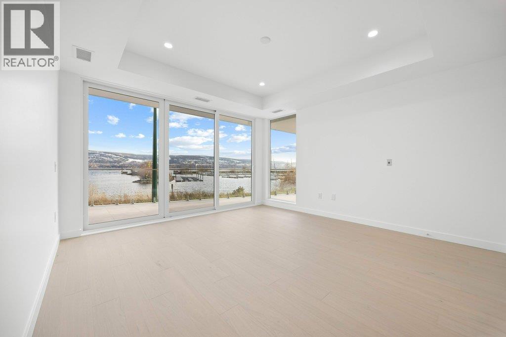 This gorgeous, luxurious, brand-new ground level lake front home awaits you, with expansive views that dreams are made of. Lavish 2 Bedroom & Den, 1829 sq ft, high ceilings, open floor plan, lovely gas fireplace for cozy winter nights, upgraded hardwood & tile throughout, quartz countertops: This Riviera living style blends coastal chic with Mediterranean elegance. Experience joyful meal prep & entertaining with the Bosch appliance package, oversized island, ample cabinetry & lake views galore. Enjoy spectacular Okanagan outdoor living on the 731 sq ft porcelain paver deck with NG BBQ outlet. The laundry room is spacious - includes countertop, sink, cabinetry, & large adjoining pantry. The mechanical room has a NG forced air furnace & there is central air, for hot summer nights. The upgraded electrical package accommodates ceiling fans if desired, & rear wall speakers to enjoy true surround sound. Construction of this complex is steel & concrete – only the best will do! 2 secure parking stalls are included in the heated garage, the breezeway from parkade to front door is tiled with luxury porcelain pavers, and there is a 260 sq ft, private & secure, heated storage unit included. The Oasis is just steps away from several beaches, water park, dog park, extensive waterfront walking paths, & upscale Shaughnessy’s Cove, for dining out with family and friends. Dreams can come true – your Oasis awaits you! Please contact your favourite Realtor to view. Measurements by iGuide. (id:21321)
