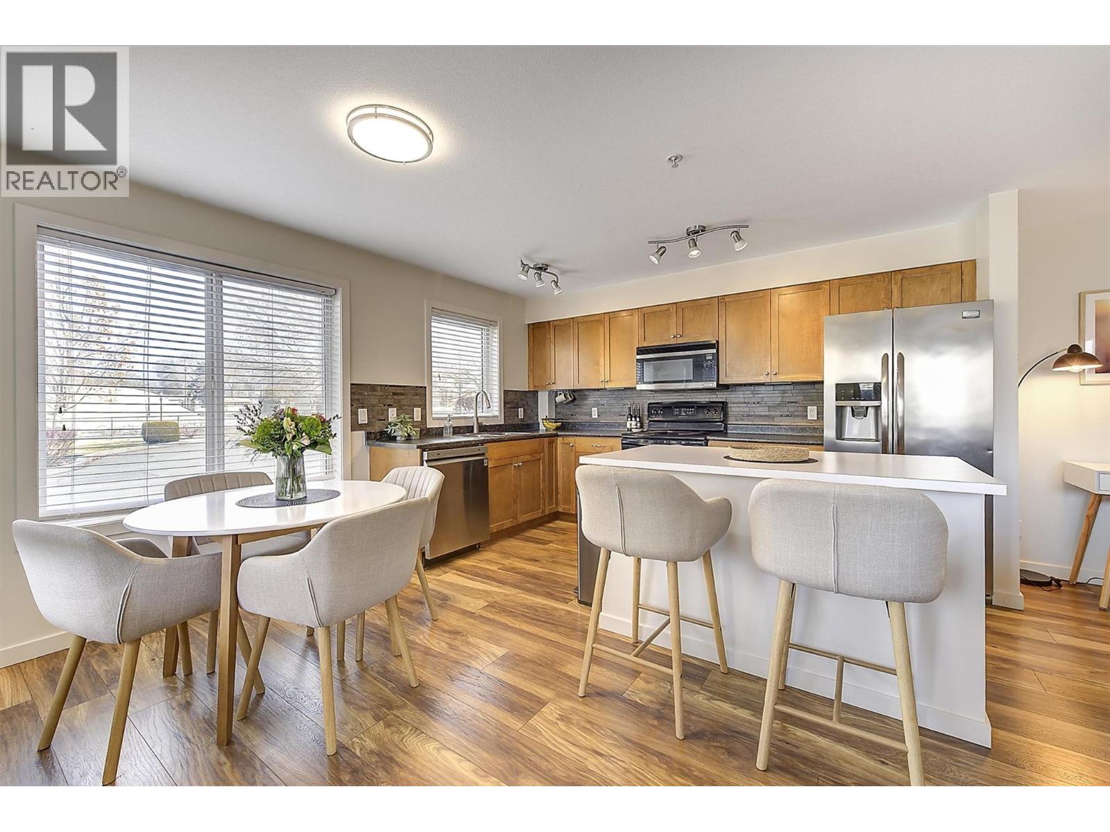 Check this one out! A corner unit condo that has many large windows creating a bright and spacious feel. 2 beds/2 baths. Comes with 6 appliances, including in-suite laundry room, large island kitchen with dining nook, office/desk area, and plenty of cupboard space. It has a/c, a secured parking spot, with cozy fireplace, and a nice patio for BBQing. Convenient walking distance to all shopping and amenities! A short drive to UBCO. Easy access, and on major bus routes. Unit has no shared common walls. (id:21321)