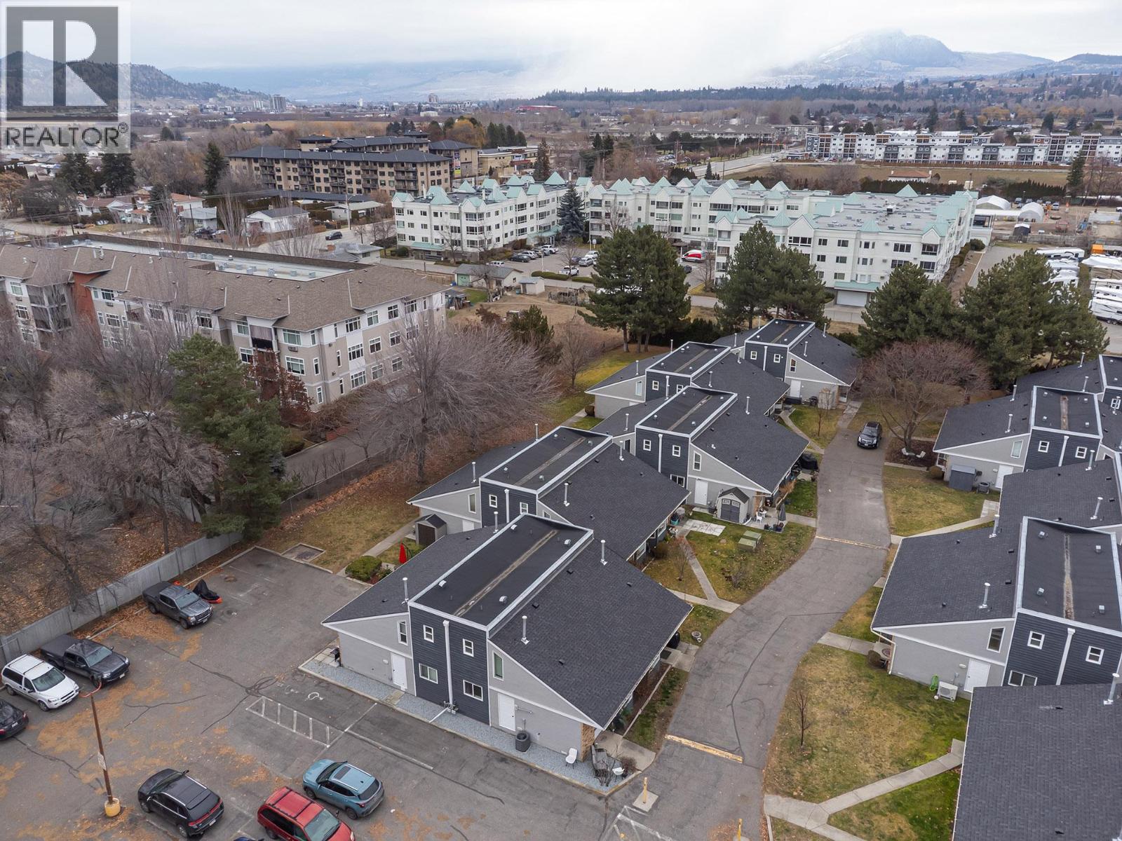 This designer-renovated 2-bed, 2-bath townhouse in Lower Mission delivers over $45K in thoughtful updates that elevate every detail. From a reimagined kitchen with quartz countertops, mosaic backsplash, and stainless-steel appliances to updated bathrooms with floating vanities, modern lighting, and elegant tile, the 2021 renovations bring polish and style throughout. New entrance tile, carpet, neutral paint, focal lighting, and updated hardware complete the transformation. The main level flows effortlessly between the open kitchen, dining, and living areas, perfect for entertaining or everyday life. A bedroom and updated bathroom offer flexible space on this level. Upstairs, the loft-style primary retreat feels warm and contemporary with vaulted ceilings, wall-to-wall closets, a custom glass railing, and in-suite laundry with storage. One of the best-located units in the complex, this townhouse features a rare patio area and assigned parking directly outside your door. A new furnace and hot water tank (2022), central air conditioning, and exterior storage shed add convenience and peace of mind. Low strata fees and rental and pet-friendly policies (with restrictions) make this an exceptional value for professionals, families, downsizers, or investors. The walkability is unmatched—steps to KLO Middle School, Pandosy Village shops, restaurants, beaches, and amenities, with Kelowna Secondary and Okanagan College within easy reach. (id:21321)
