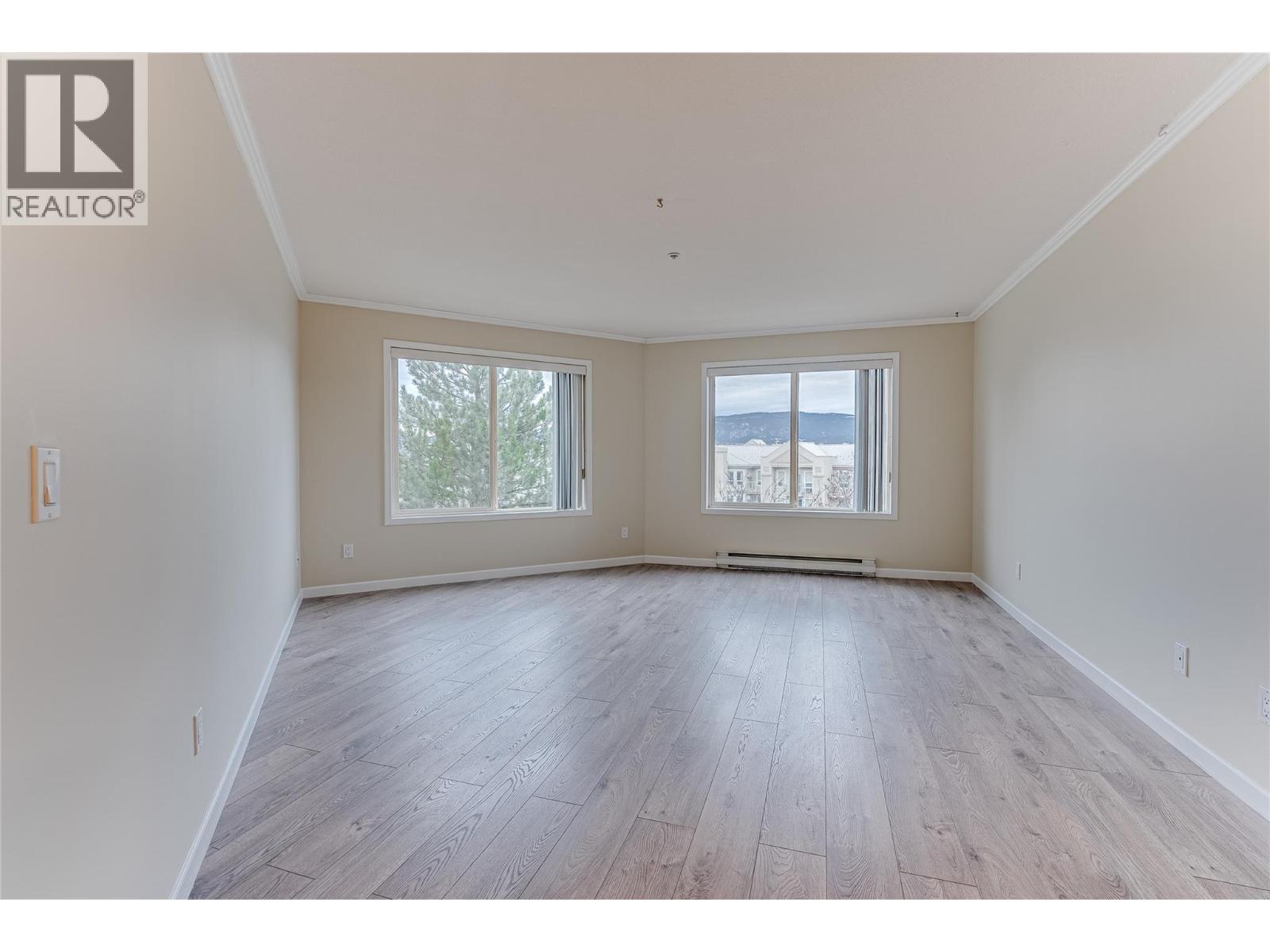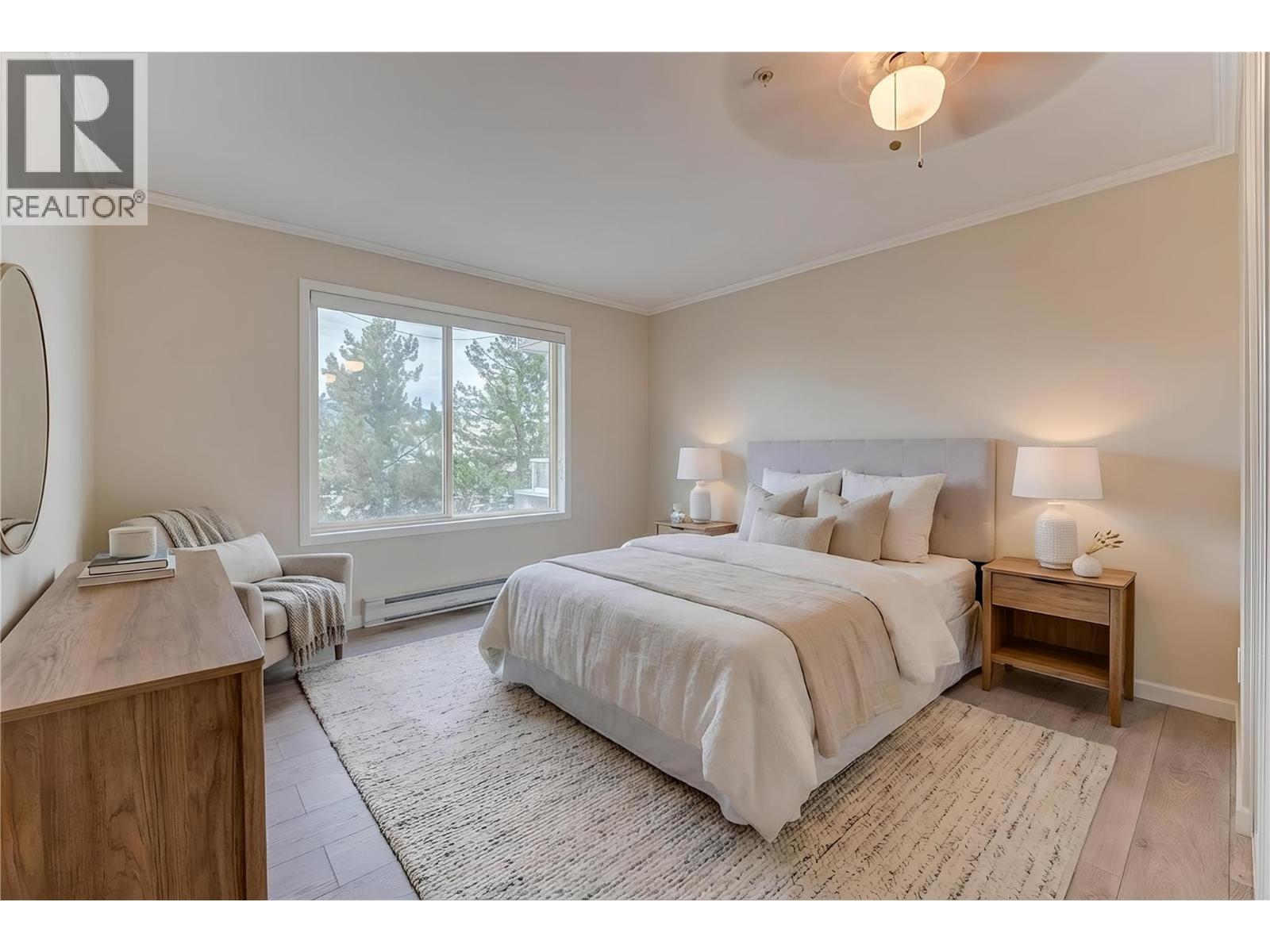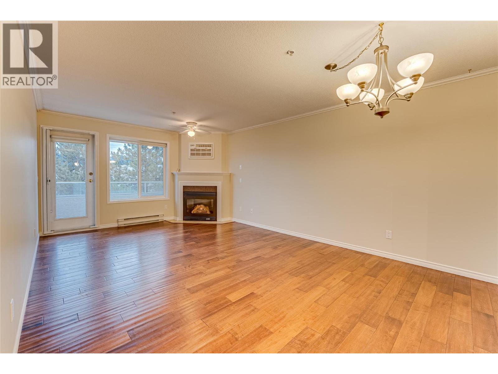 Welcome to Unit #102 at Imperial Ridge. With a fresh coat of paint, recently updated flooring, and a lovely kitchen, this 2-bedroom, 2-bathroom condo is truly move-in ready. The home is located in a well-maintained, all-ages building that has undergone extensive upgrades since 2022, including parkade improvements, building envelope work (windows, decks, stucco), a new elevator, and refreshed hallways with modern carpeting, lighting, and paint. Ideally located just steps from downtown Vernon’s shops, cafes, medical offices, and services, this quiet, south-facing home is filled with natural light and enjoys beautiful city views, with glimpses of Okanagan Lake. The spacious layout offers a modern kitchen with plenty of storage, opening into the dining area and comfortable living room. Enjoy the cozy gas fireplace on cooler days (natural gas included in the strata fee), and in summer relax on your private deck or stay cool with the newer wall-mounted A/C unit. The primary bedroom features a walk-in closet and full ensuite, while the second bedroom and full main bathroom provide flexibility for guests, a home office, or family. In-suite laundry with newer washer and dryer adds everyday convenience. Additional features include one secure underground parking stall, a storage locker, bike storage, and a common room. Strata fees include hot water, water, sewer, garbage, natural gas. Book your showing today! (id:21321)