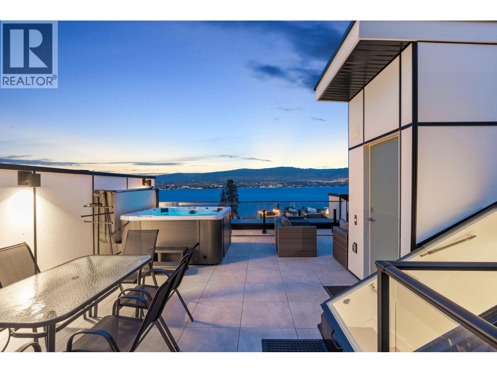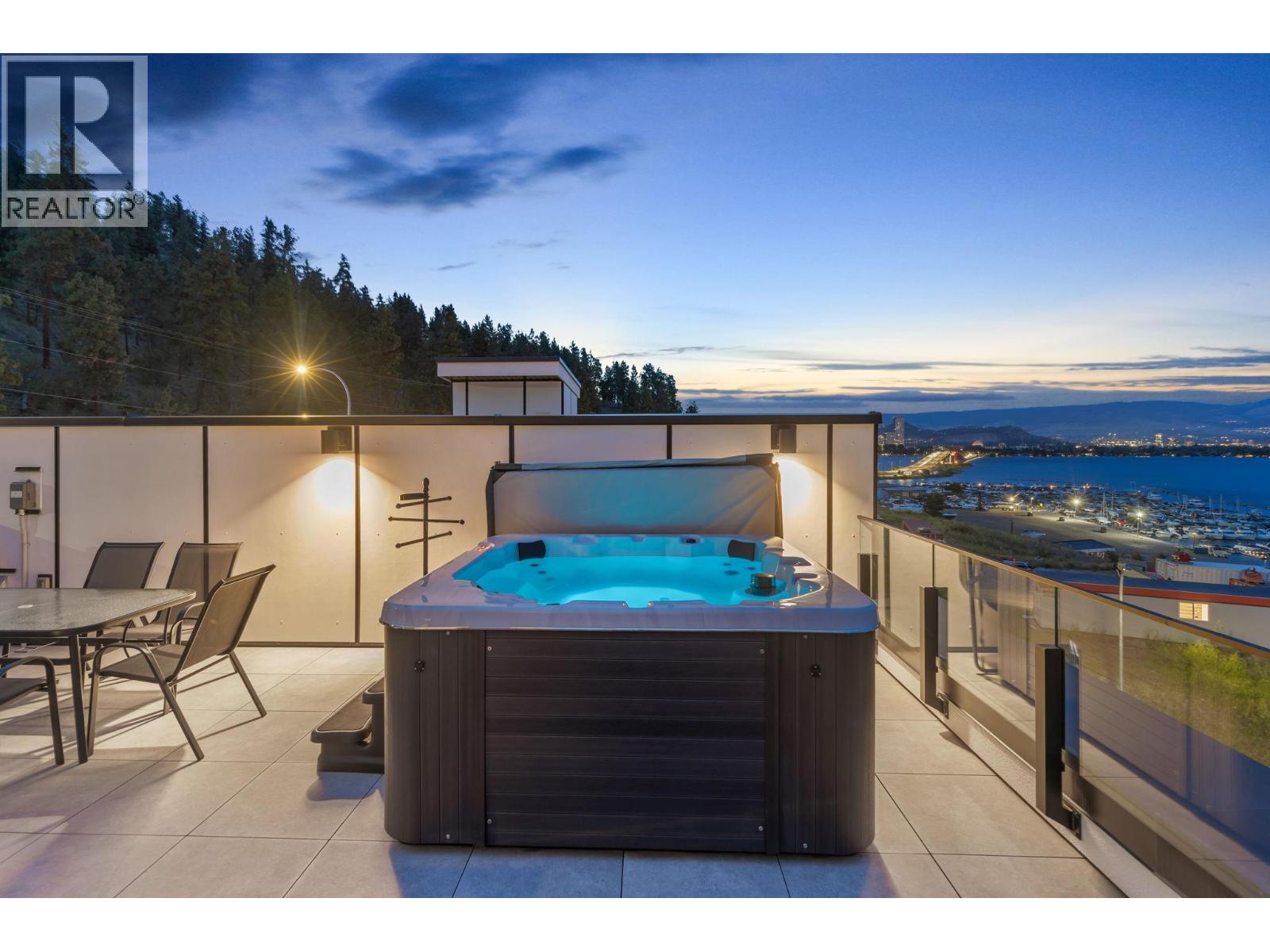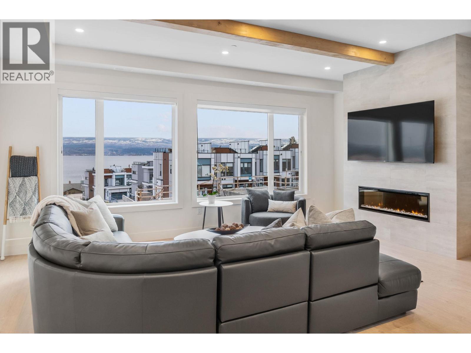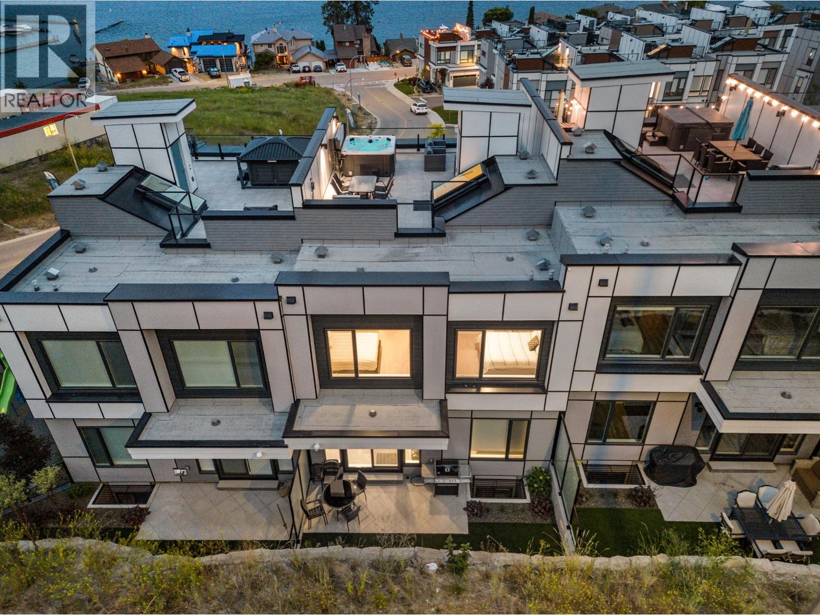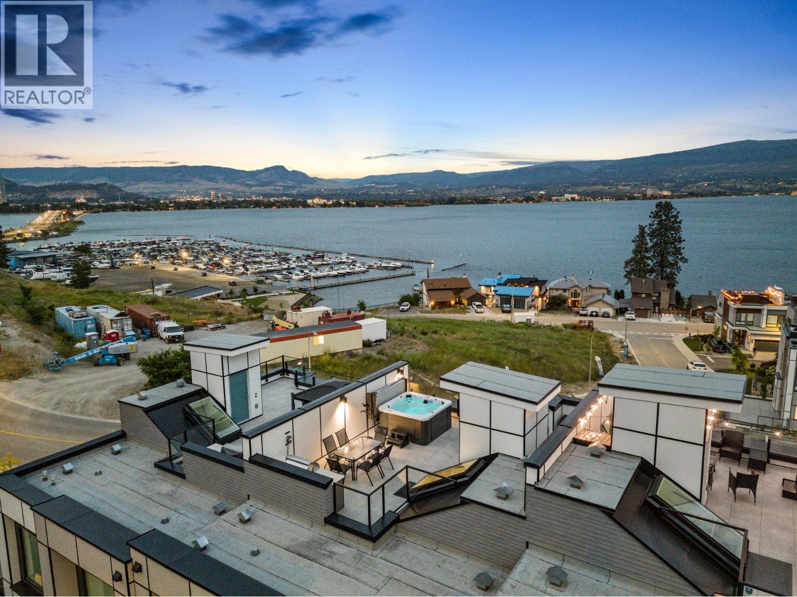 TURN KEY, FULLY FURNISHED, SHORT TERM RENTAL FRIENDLY, NO GST, NO PROPERTY TRANSFER TAX AND NO SPECULATION TAX!!! This is one of those opportunities that’s worth taking a closer look at: a near lakeside townhome with luxury finishings, offering refined modern living with stunning lake views from every level, while being located just minutes from downtown Kelowna. With one of the most desirable layouts in the complex, the U1 plan features 5 bedrooms PLUS a flex room, with a private elevator taking you between each of the 4 levels. Some notable features include an extra-wide layout, side-by-side double garage, open-concept design with exposed wood beams, private rear patio, high-end appliances and finishes throughout, and of course, a private roof top terrace. The terrace provides the perfect setting for entertaining with panoramic lake views, and is complete with a hot tub and built-in outdoor kitchen. Shelter Bay has quite the amenities: A private waterfront park is nearby, with a sandy beach, children’s playground, beach volleyball, a beach pavilion and picnic area as well as a wharf that is to be built. Once completed, the amenities centre will include a pool, hot tub, theatre, golf simulator, gym and open air sundeck on the upper level overlooking the lake, with a lower level complete with a lounge area, games room, and second sundeck. Upgrades to this townhome include a roof top built in BBQ and kitchen, hot tub, epoxy garage flooring & EV charger. (id:21321)