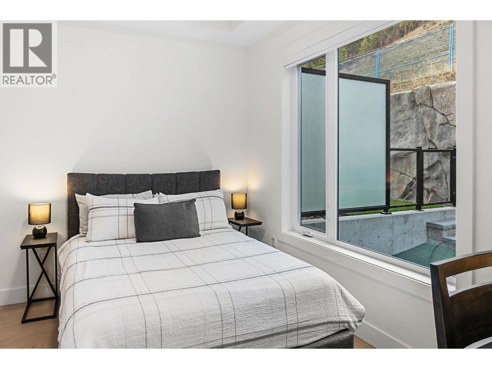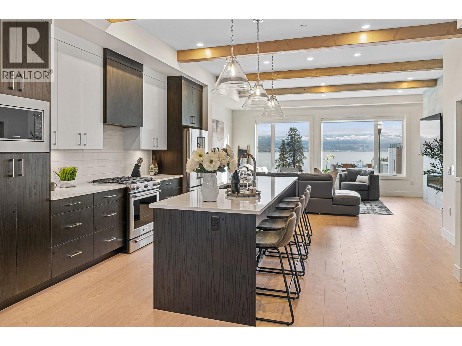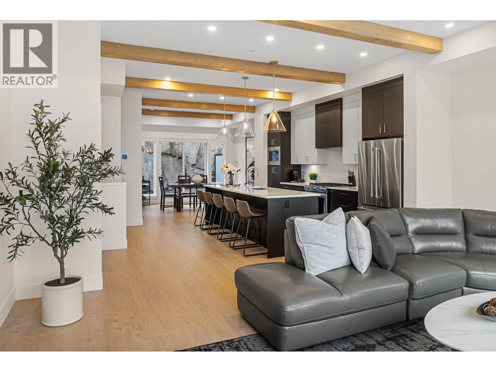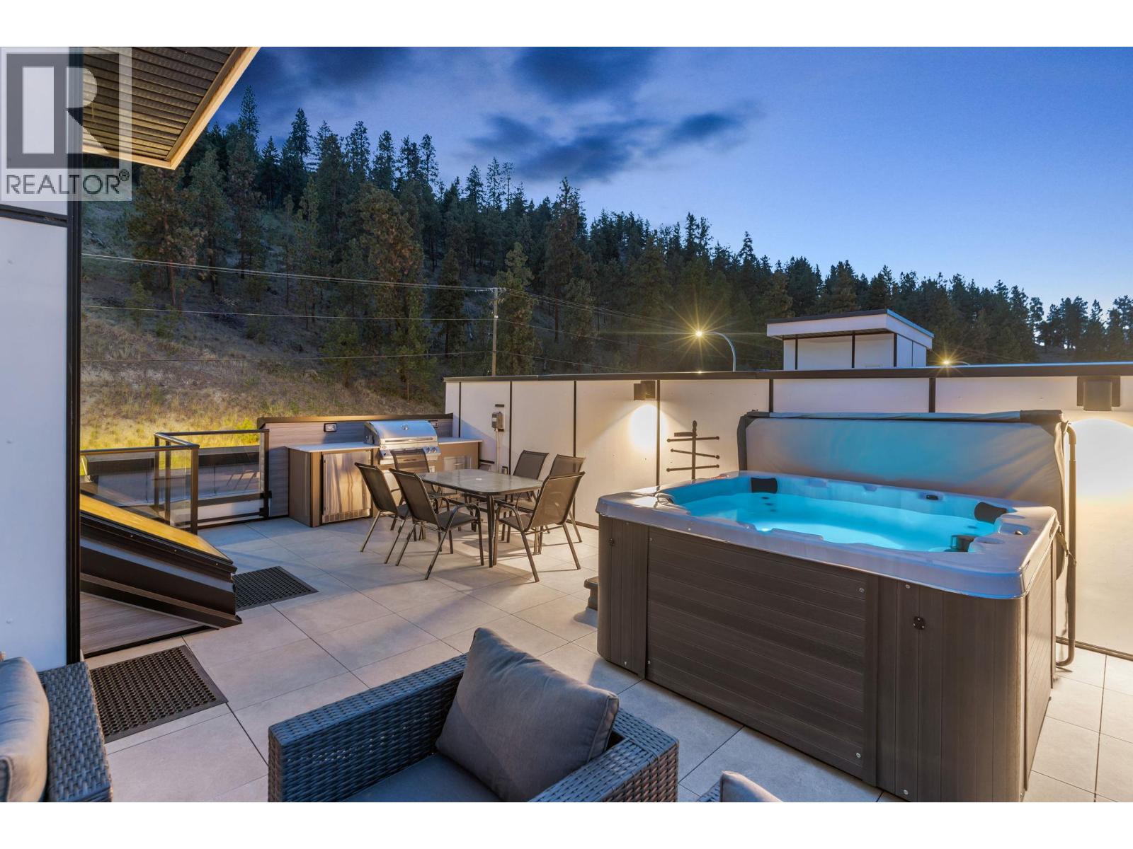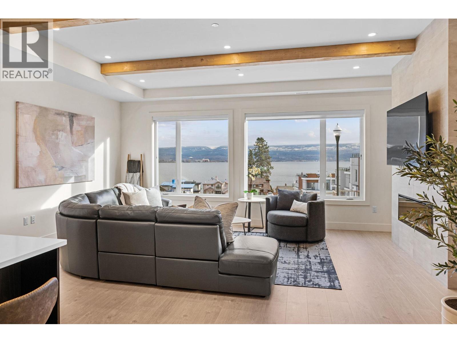 TURN KEY, FULLY FURNISHED, SHORT TERM RENTAL FRIENDLY, NO GST, NO PROPERTY TRANSFER TAX AND NO SPECULATION TAX!!! This is one of those opportunities that’s worth taking a closer look at: a near lakeside townhome with luxury finishings, offering refined modern living with stunning lake views from every level, while being located just minutes from downtown Kelowna. With one of the most desirable layouts in the complex, the U1 plan features 5 bedrooms PLUS a flex room, with a private elevator taking you between each of the 4 levels. Some notable features include an extra-wide layout, side-by-side double garage, open-concept design with exposed wood beams, private rear patio, high-end appliances and finishes throughout, and of course, a private roof top terrace. The terrace provides the perfect setting for entertaining with panoramic lake views, and is complete with a hot tub and built-in outdoor kitchen. Shelter Bay has quite the amenities: A private waterfront park is nearby, with a sandy beach, children’s playground, beach volleyball, a beach pavilion and picnic area as well as a wharf that is to be built. Once completed, the amenities centre will include a pool, hot tub, theatre, golf simulator, gym and open air sundeck on the upper level overlooking the lake, with a lower level complete with a lounge area, games room, and second sundeck. Upgrades to this townhome include a roof top built in BBQ and kitchen, hot tub, epoxy garage flooring & EV charger. (id:21321)