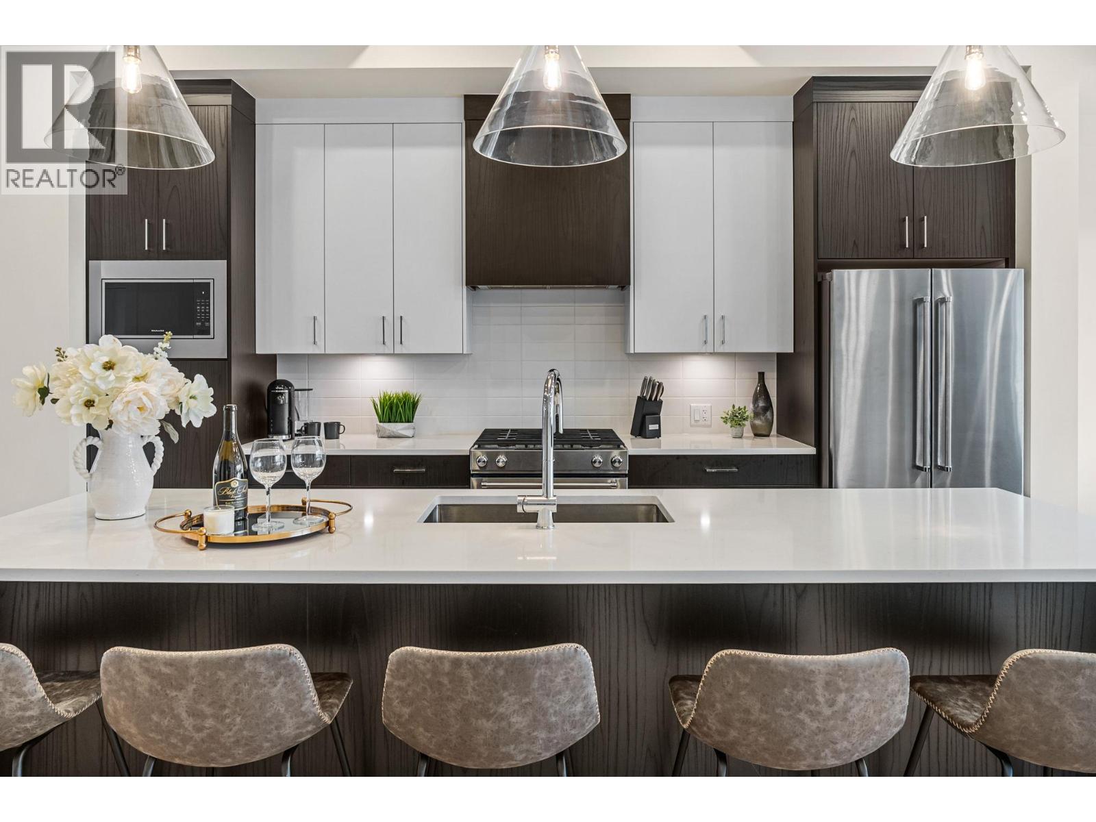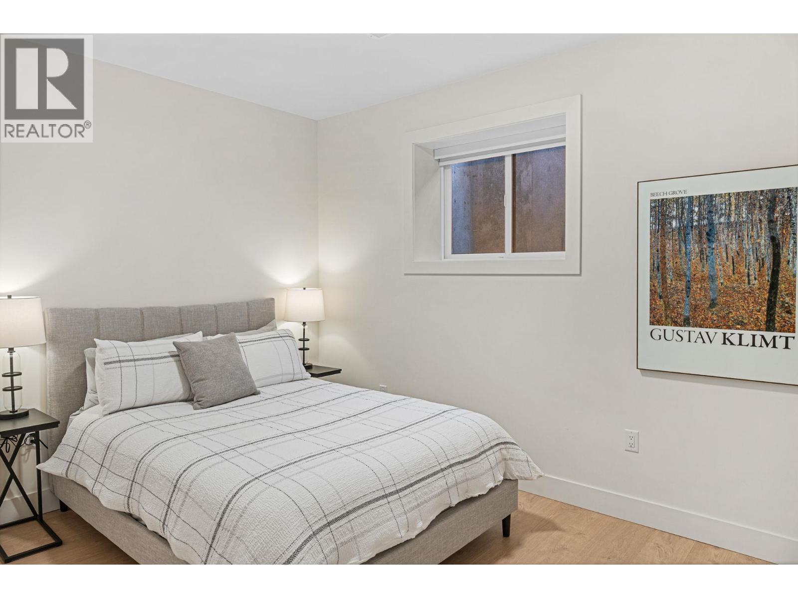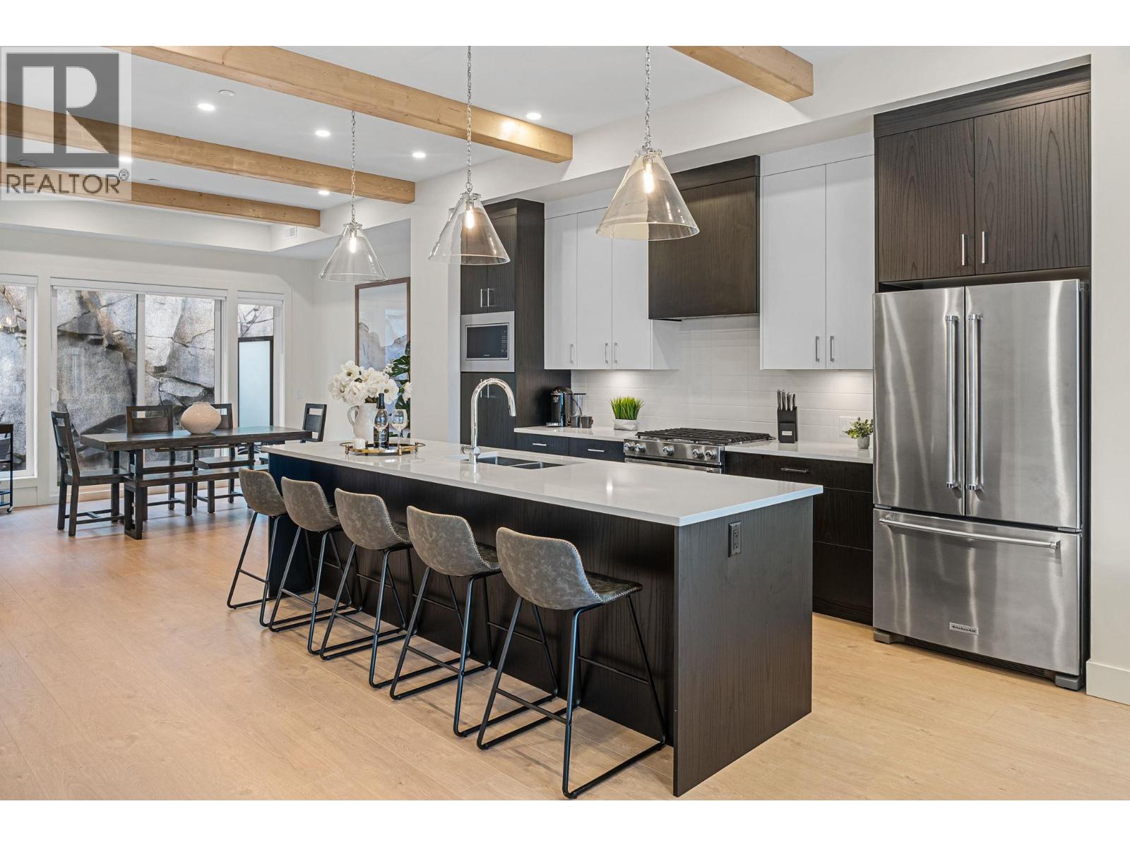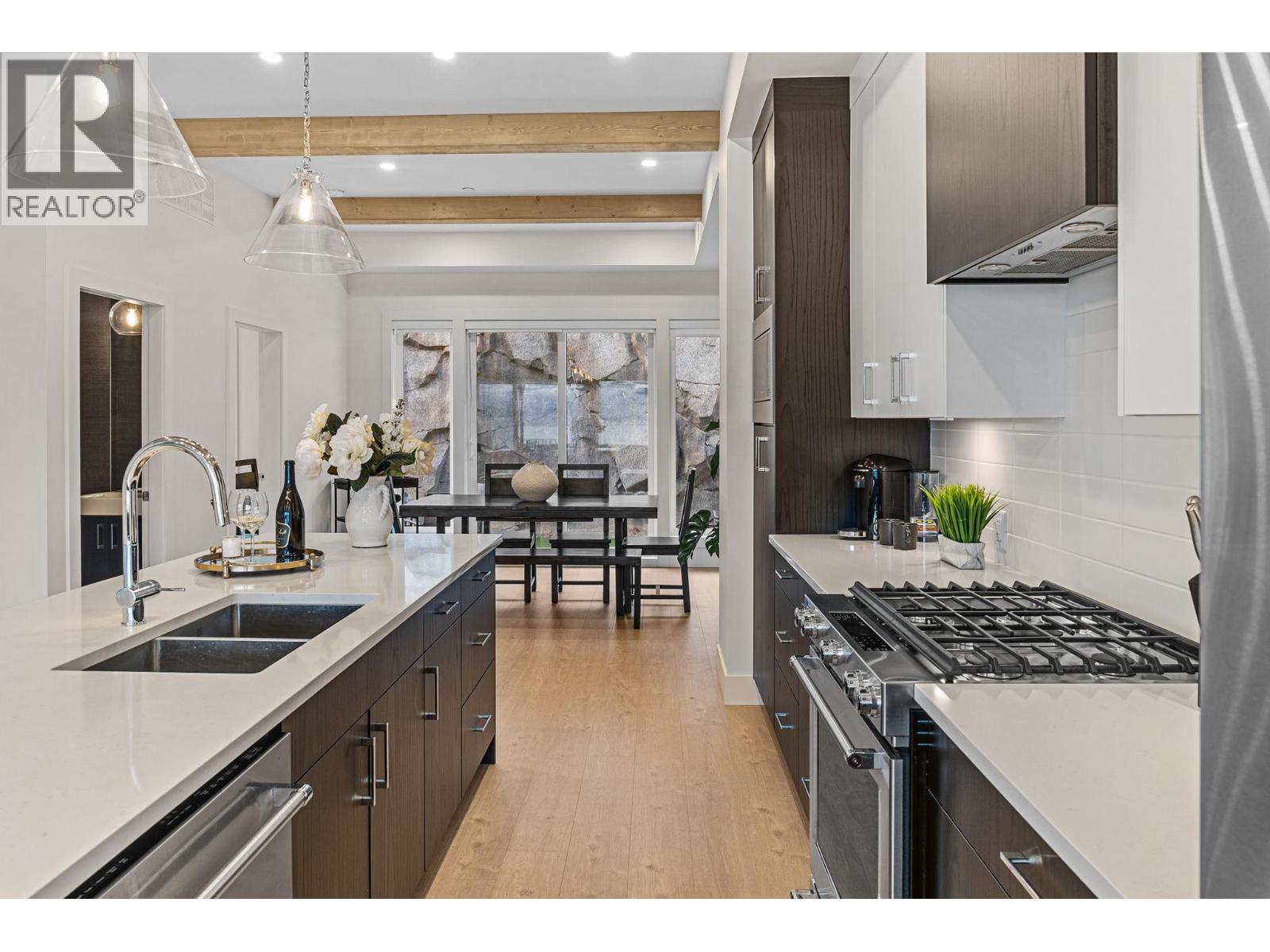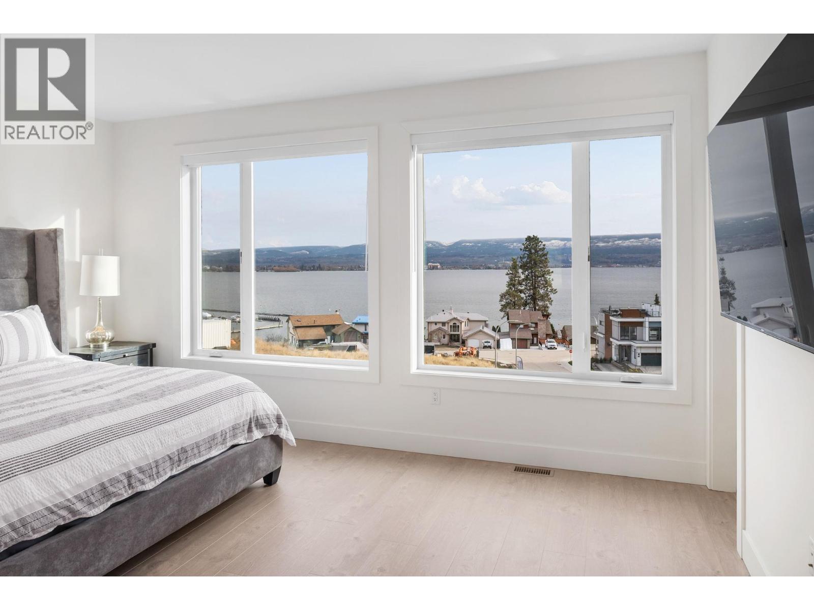 TURN KEY, FULLY FURNISHED, SHORT TERM RENTAL FRIENDLY, NO GST, NO PROPERTY TRANSFER TAX AND NO SPECULATION TAX!!! This is one of those opportunities that’s worth taking a closer look at: a near lakeside townhome with luxury finishings, offering refined modern living with stunning lake views from every level, while being located just minutes from downtown Kelowna. With one of the most desirable layouts in the complex, the U1 plan features 5 bedrooms PLUS a flex room, with a private elevator taking you between each of the 4 levels. Some notable features include an extra-wide layout, side-by-side double garage, open-concept design with exposed wood beams, private rear patio, high-end appliances and finishes throughout, and of course, a private roof top terrace. The terrace provides the perfect setting for entertaining with panoramic lake views, and is complete with a hot tub and built-in outdoor kitchen. Shelter Bay has quite the amenities: A private waterfront park is nearby, with a sandy beach, children’s playground, beach volleyball, a beach pavilion and picnic area as well as a wharf that is to be built. Once completed, the amenities centre will include a pool, hot tub, theatre, golf simulator, gym and open air sundeck on the upper level overlooking the lake, with a lower level complete with a lounge area, games room, and second sundeck. Upgrades to this townhome include a roof top built in BBQ and kitchen, hot tub, epoxy garage flooring & EV charger. (id:21321)
