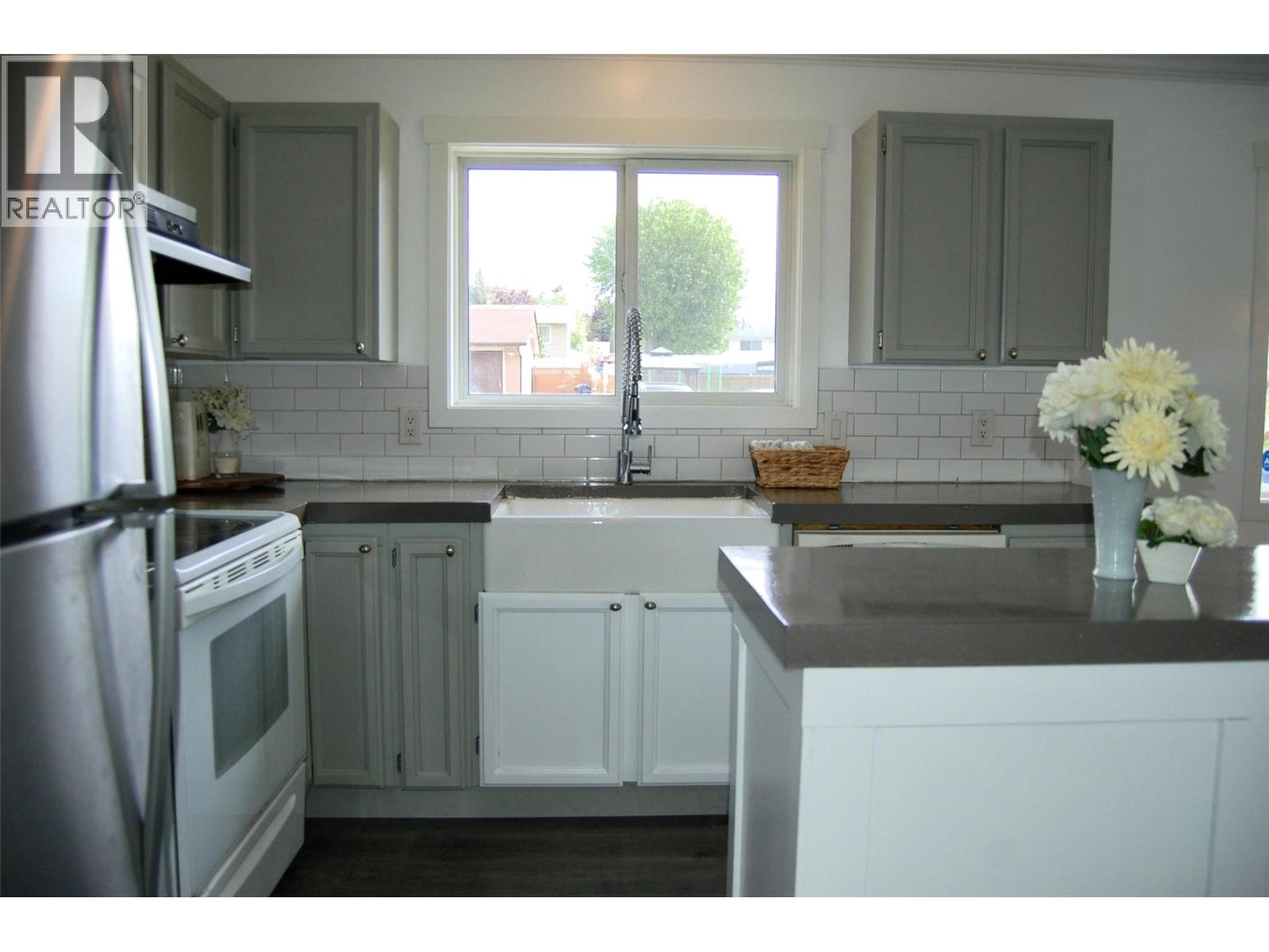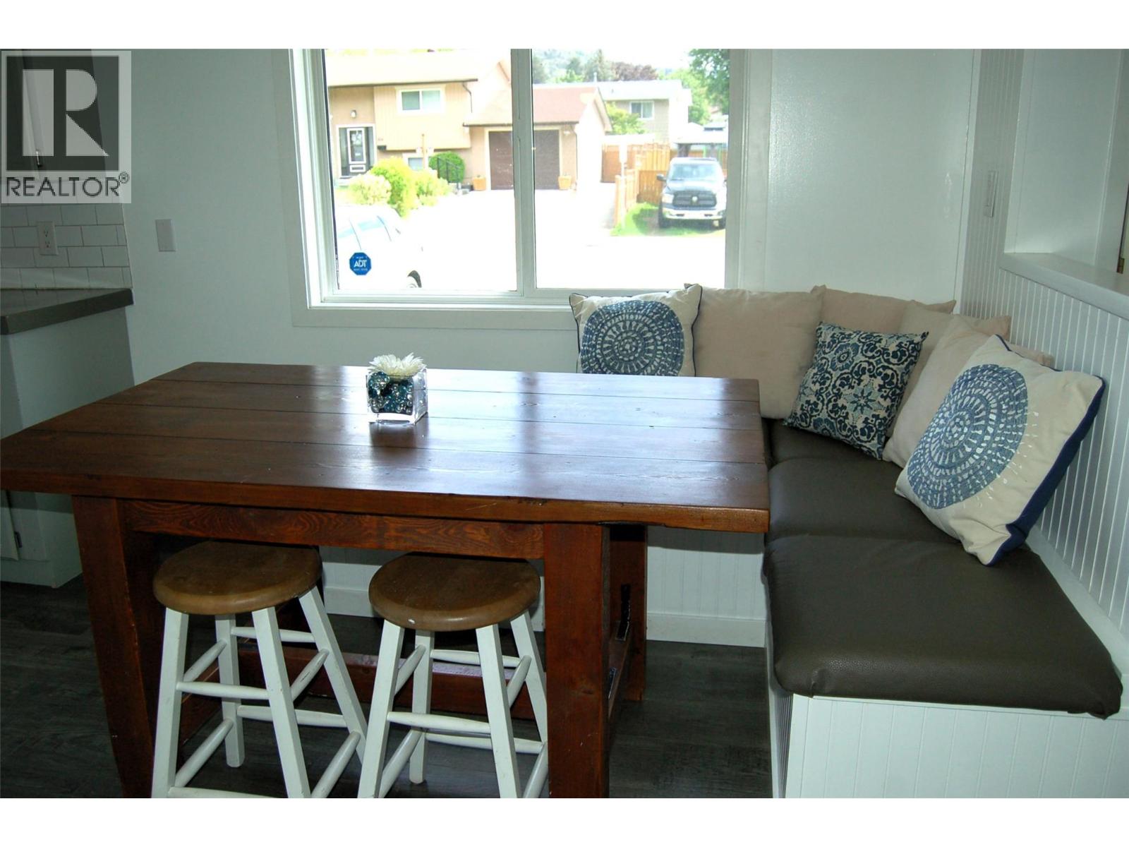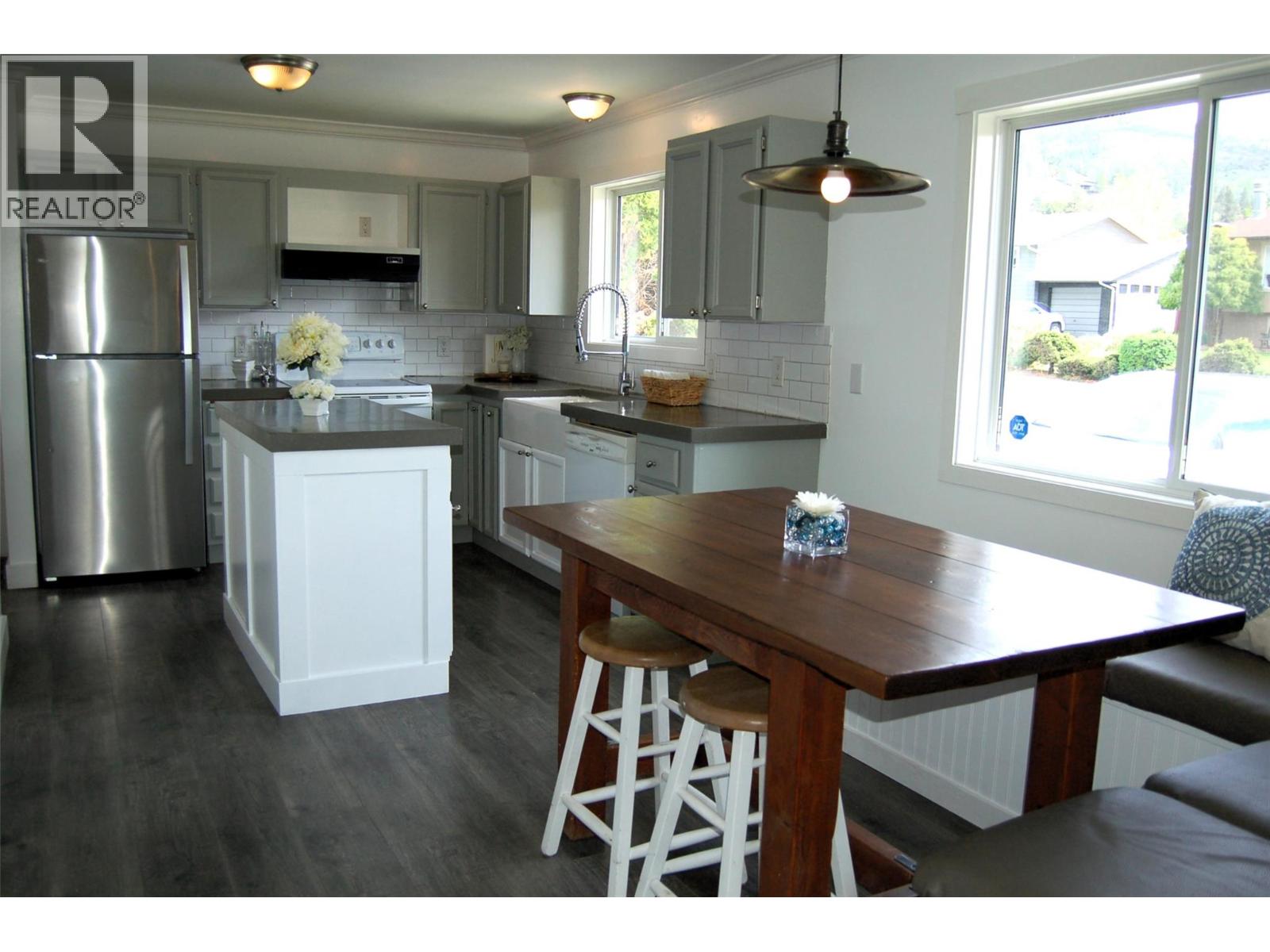 PRIME LOCATION in the popular neighbourhood of Columbia/Duncan, just steps away from Columbia Elementary School on a quiet residential street where pride of ownership is evident. This cozy bungalow features an open floor plan with a built-in banquette, small island, concrete countertops and farmhouse sink in the kitchen, large windows for plenty of natural light, two bedrooms, a den, and a 4pc bathroom. It has been freshly painted throughout, with updated laminate flooring, and a feature wall in the living room. The backyard is a good size with a stamped concrete patio and a pergola over the large outdoor kitchen area - perfect for entertaining family and friends, a grassy area for playtime, and a small enclosed vegetable garden. The driveway extends along the east side of the house to the 22' x 12' wired workshop at back - originally a small garage. This home would be perfect for a couple of any age looking for one-level living, or a small family, and it is move-in ready, with quick possession possible. Enjoy summer in Penticton this year! All measurements are approximate. Contact your favourite Realtor to view! (id:21321)
