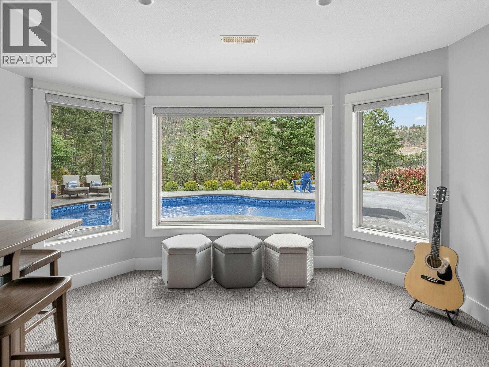 Elevated Setting with Serene Hidden Lake Views. Discover this elegant 4-bedroom, 4-bathroom sanctuary offering over 3,600 sq ft of refined living space with calming views over Hidden Lake. Thoughtfully designed for both comfort and sophistication, this meticulously maintained home features a Carolyn Walsh–designed gourmet kitchen with granite countertops and premium finishes—an ideal centerpiece for everyday living and entertaining. The open-concept layout flows seamlessly to a sunlit backyard retreat, complete with a shimmering pool perfect for relaxing summer afternoons. The main level hosts a peaceful primary suite, while the lower level is built for entertaining with a spacious rec room, wet bar, and custom built-ins. A whole-home sound system enhances every moment, whether you're enjoying quiet evenings or hosting lively gatherings. Enjoy year-round beauty—from skating on Hidden Lake in winter to soaking in tranquil views through every season. Ideally located near schools, UBCO, and the airport, this home offers a rare blend of luxury, lifestyle, and convenience. (id:21321)