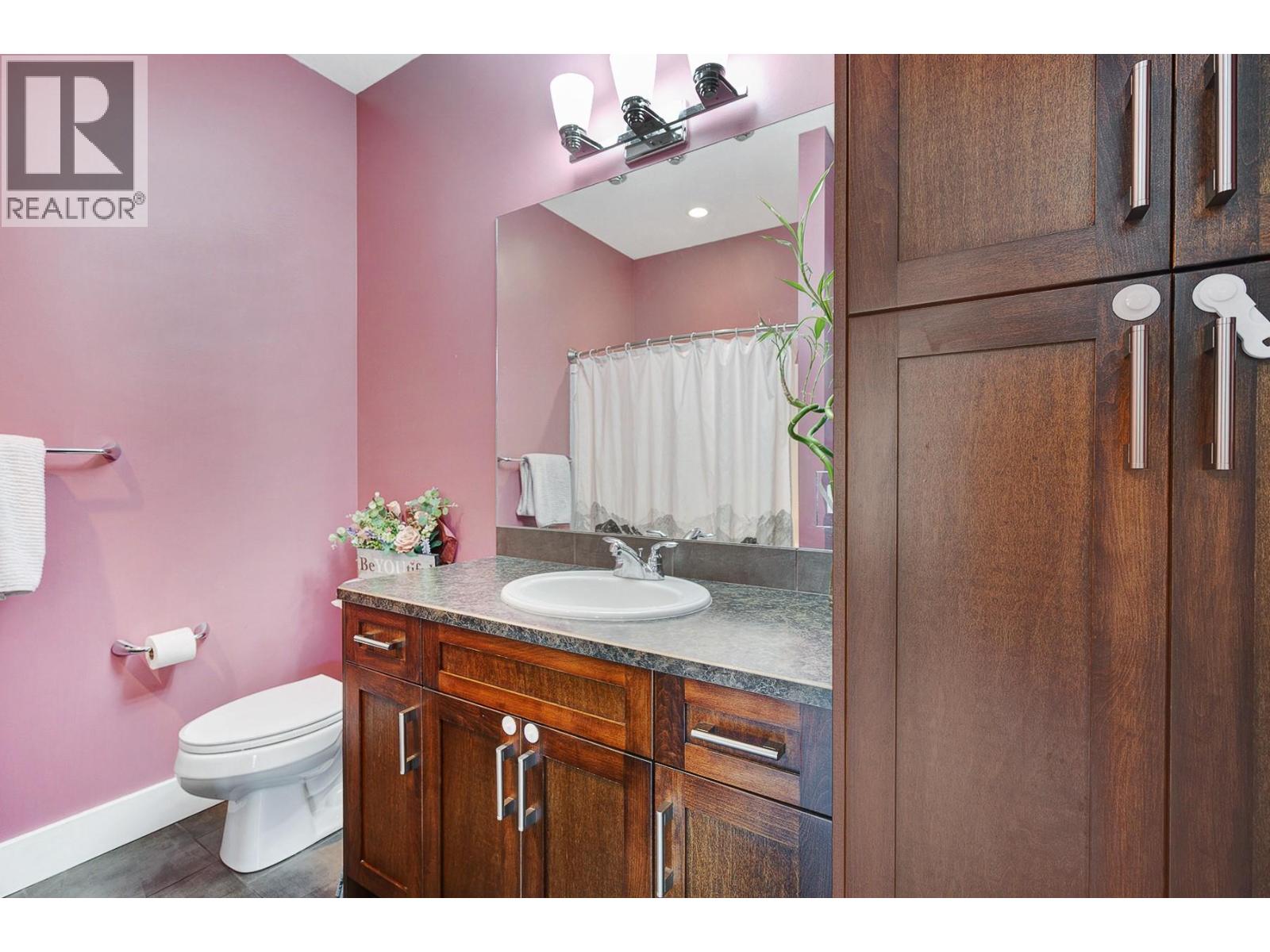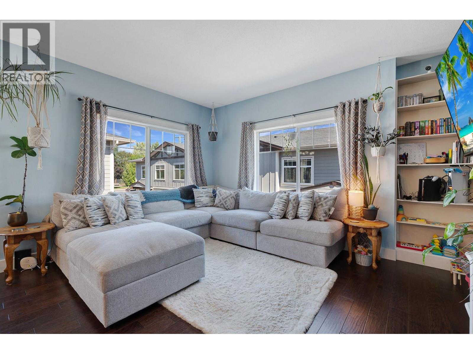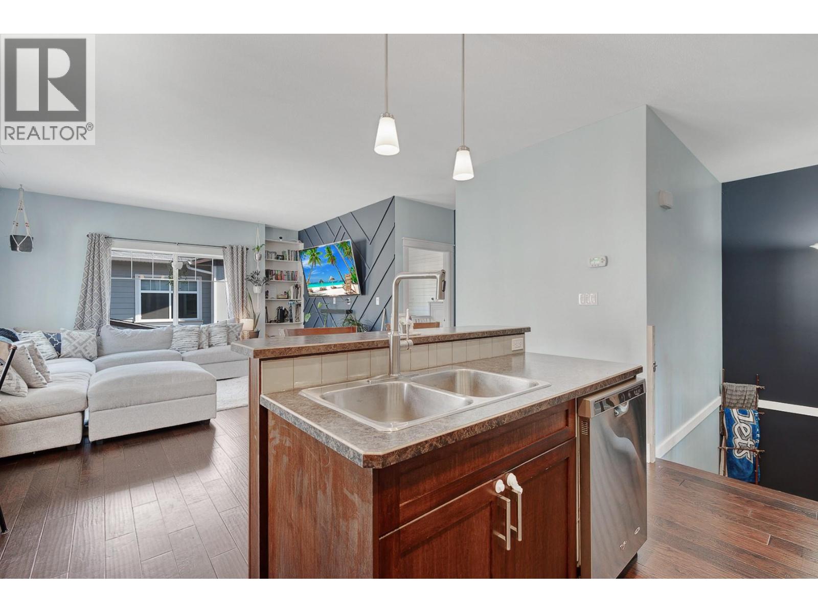 Welcome to Cornerstone Townhomes – Quiet, Quality Living! Tucked at the back of this well-maintained 10-unit complex, this immaculate 3- bedroom + den townhome offers rare privacy and serenity – all just minutes from Vernon’s best amenities. With garage parking and an additional assigned stall right next to the unit, convenience is built right in. Thoughtfully designed with timeless craftsmanship and an open- concept layout, the home welcomes you with a spacious kitchen featuring a large island and quality appliances. The seamless flow to the living and dining areas makes it perfect for hosting or relaxing. The main level features a generously sized primary suite with a spa-inspired ensuite, a second bright bedroom, and a full guest bath. On the entry level, a cozy den, third bedroom with sliding doors to a private patio, an extra bath, and laundry area round out the functional layout. Storage is abundant throughout, and the unit backs onto the quiet side of the development, adding to the peaceful atmosphere. This pet-friendly complex embraces a warm, community feel with LOW strata fees and pride of ownership throughout. Conveniently located close to the hospital, schools, downtown shops, Nature’s Fare, Kin Beach, and extensive recreation – including pickleball, sports fields, walking trails, and more. Don’t miss your chance to own in this tightly held community where quality, quiet, and comfort come together. (id:21321)