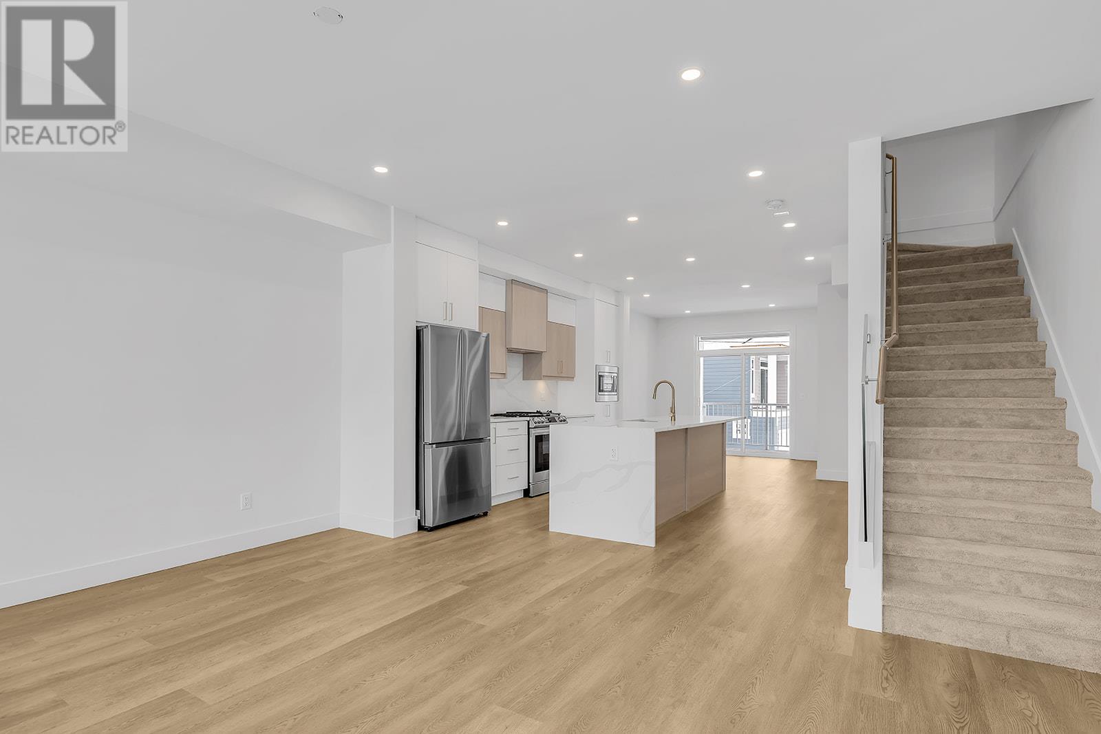 Townhome living doesn’t get better than this! This 4-bed, 4-bath inside home offers picturesque views of Okanagan Lake and the multiple parks that are right at the doorstep. Step inside to discover the open-concept living complemented by 9ft ceilings and luxury vinyl plank flooring throughout the main floor. Entertain in style in the gourmet two-tone kitchen, featuring a waterfall island, designer brass finishings, and top-of-the-line Wi-Fi-enabled Samsung appliances. On the top floor, the primary bedroom is complete with a spacious walk-in closet and a spa-inspired ensuite bath. Additional bedrooms offer flexibility for guests or family. Enjoy seamless indoor-outdoor living with a covered deck off the dining room and a lower-level patio, perfect for enjoying the Okanagan summers. This home features a single garage with EV charging roughed-in and fully landscaped fenced yards. Move-in ready. Don’t miss the chance to call one of Kelowna’s most sought-after neighbourhoods home. . PTT exempt (some conditions could apply). Move-in ready. Photos & virtual tour are of similar home in community.