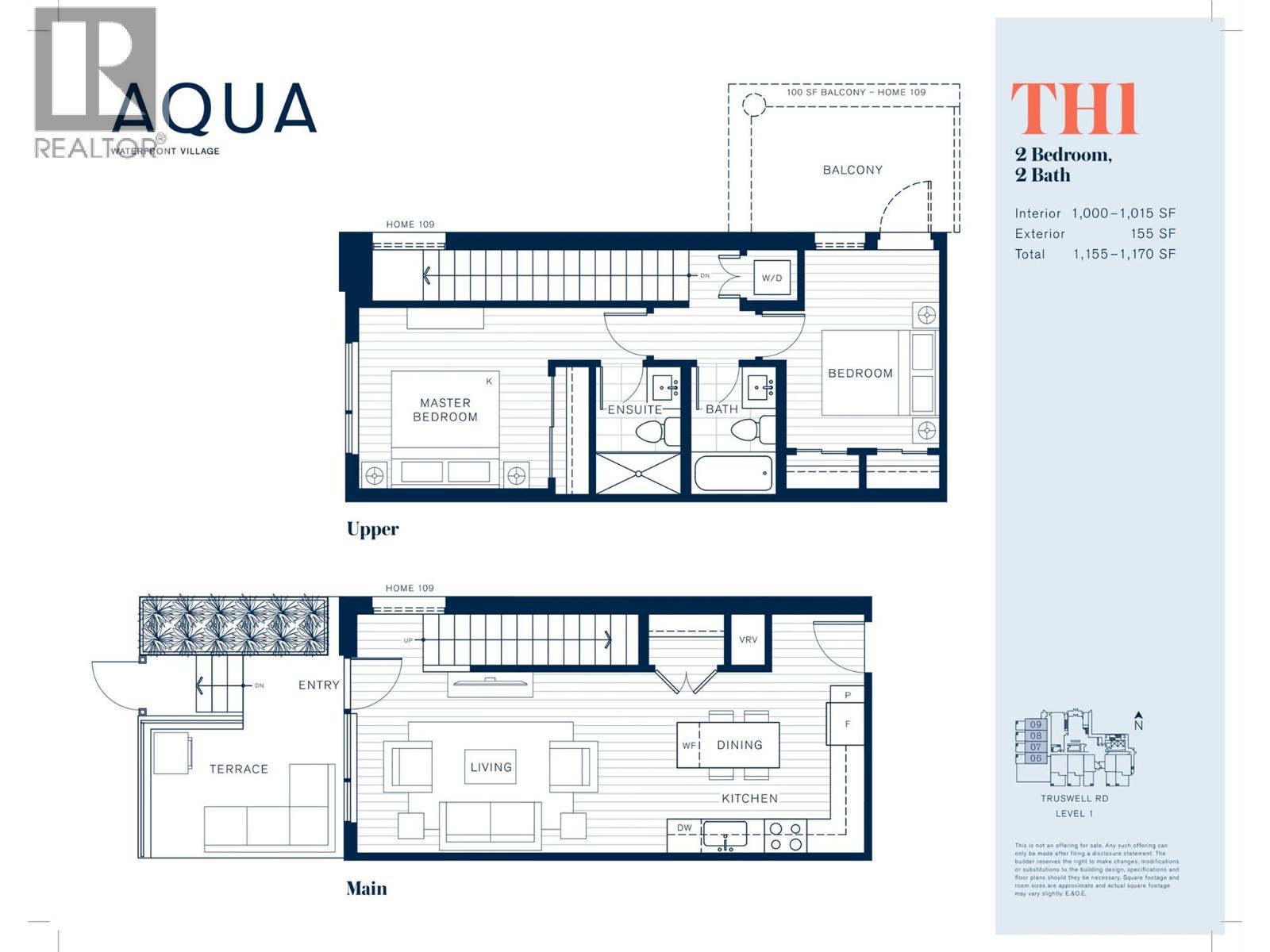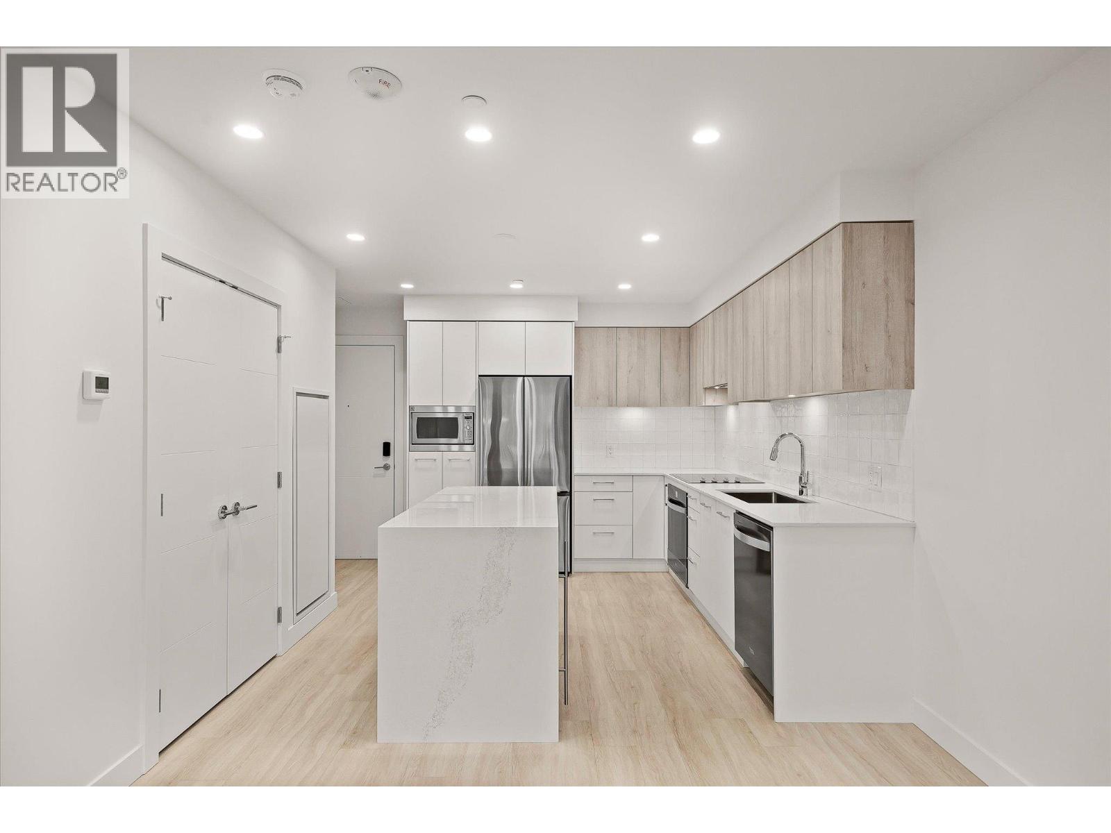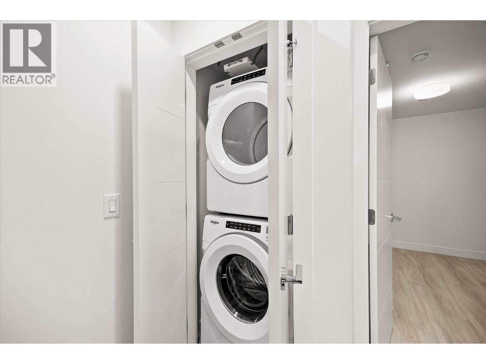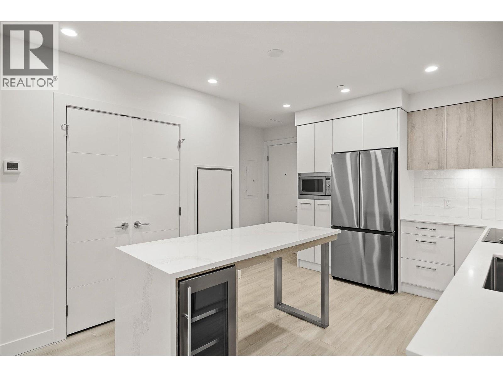 Welcome to Aqua Waterfront Village, Kelowna’s premier lakefront community in Lower Mission. This 2-storey, 2 bed, 2 bath townhome offers approx. 1,015 sqft of interior living, 155 sqft of exterior space, and includes a private, tandem 2-car garage in the building's parkade. The main floor features a bright, open-concept layout with oversized windows providing ample natural light. Luxury wide-plank vinyl flooring extends throughout the kitchen, living, dining, and bedroom areas. The kitchen showcases modern two-toned cabinetry, polished quartz countertops, dining island, integrated LED lighting, and a premium stainless steel appliance package that includes a wine fridge. Upstairs, you’ll find 2 generous bedrooms and 2 contemporary bathrooms featuring quartz vanities, porcelain tile and stylish finishes. Additional touches include blackout roller shades in the primary bedroom, custom closet organizers in both bedrooms and an energy-efficient central heating/cooling system. 1 storage locker, 1 bike locker included. Amenities include: an outdoor pool and hot tub, gas fire pits and BBQ’s, a fireside lounge and co-working area, 2-level fitness centre, pet wash and bike wash and maintenance area. Vacant and ready for quick possession. Only a 5% deposit required. Buyer to verify all details and measurements if deemed important. All offers must be written on the Developer’s CPS. (id:21321)