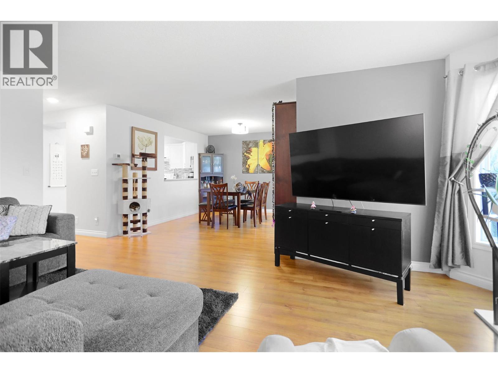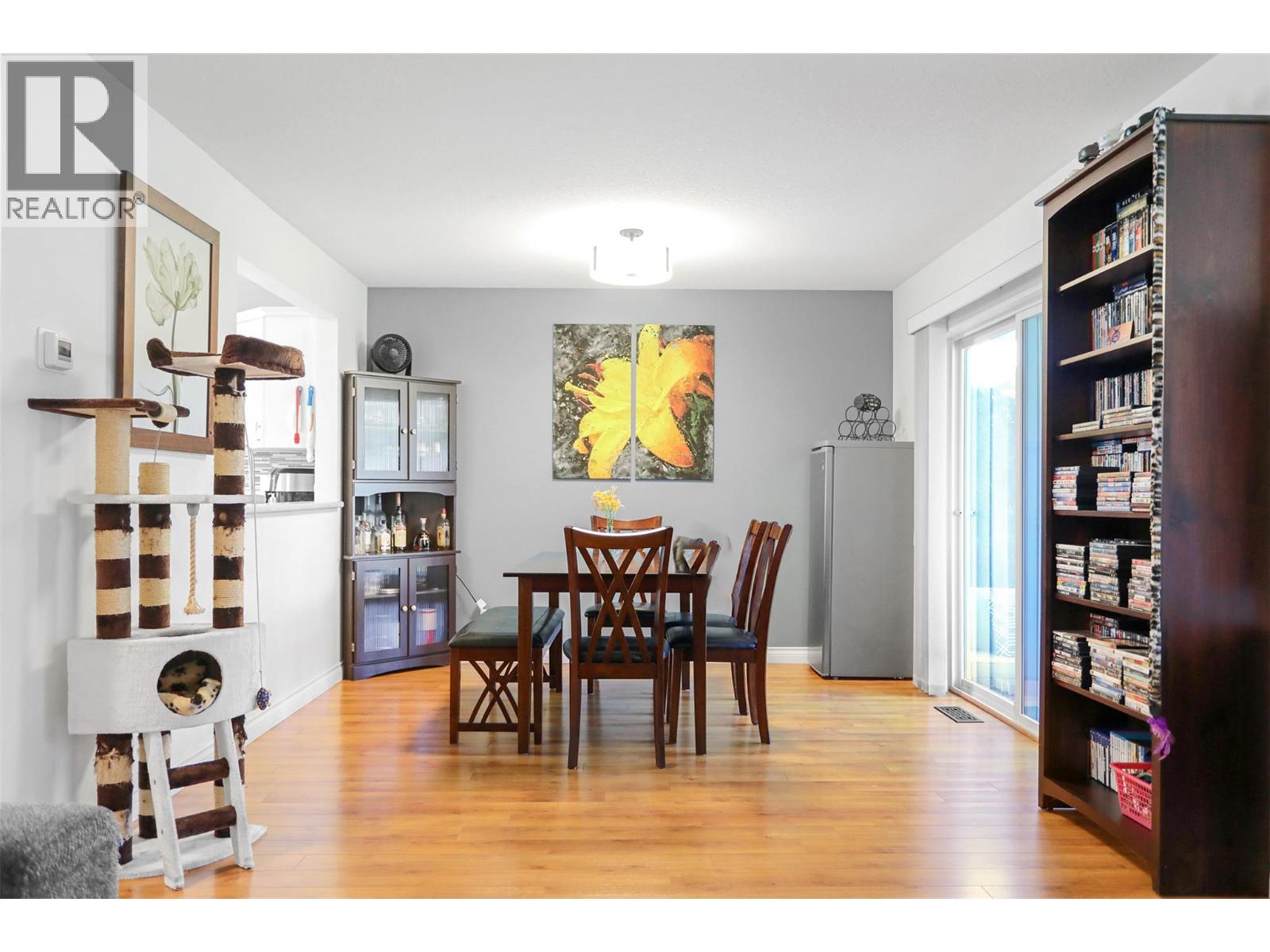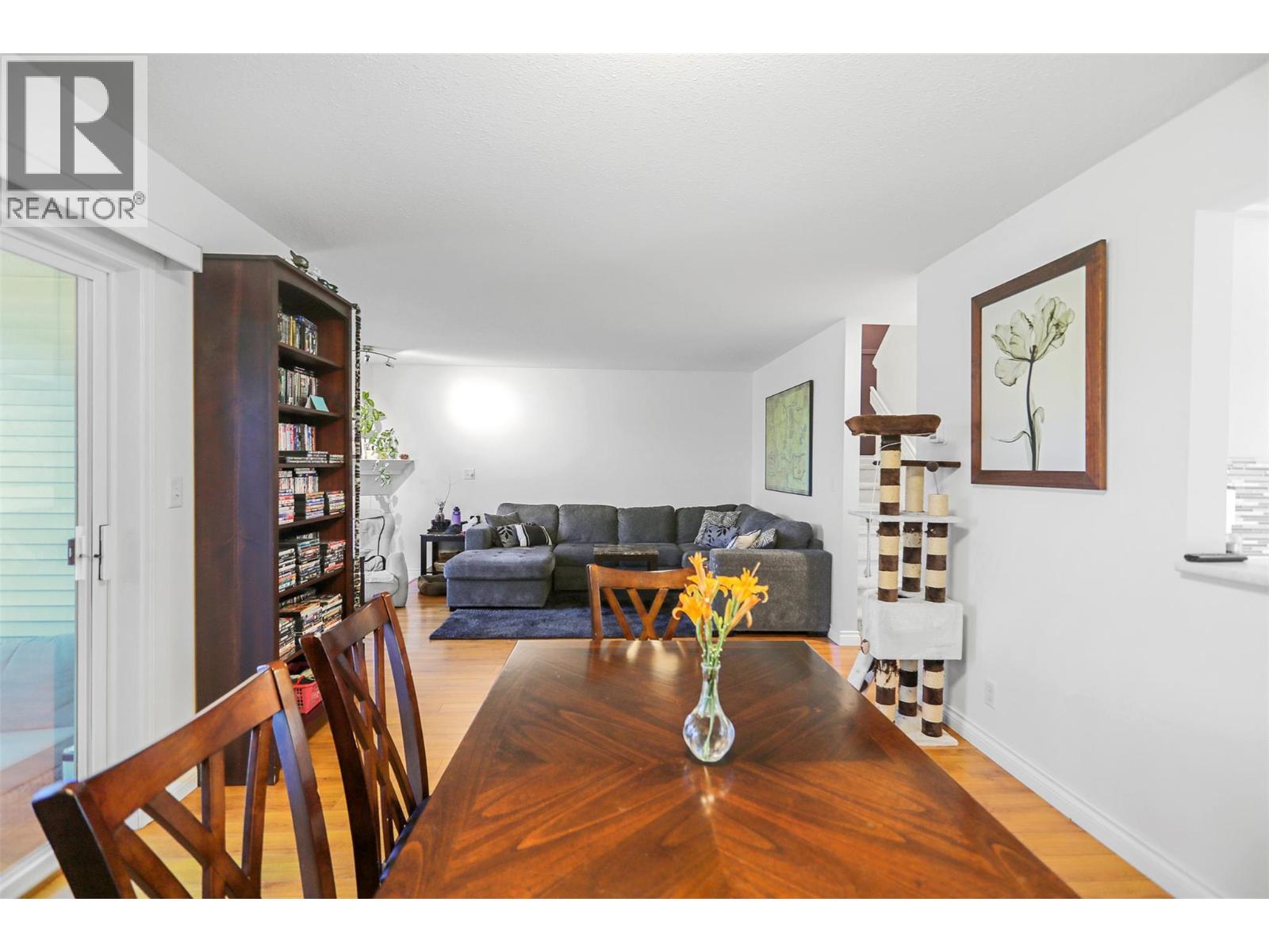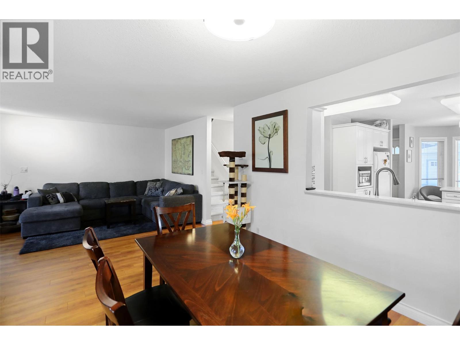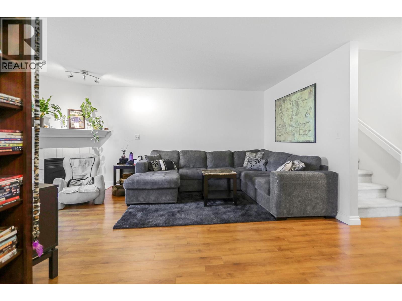 Welcome to your dream townhome in the heart of a vibrant, well-maintained complex! This bright and airy end-unit townhome is flooded with natural light thanks to its extra windows, creating a warm and inviting atmosphere. The main level boasts a spacious kitchen with ample cabinetry and counter space, perfect for culinary enthusiasts, complete with a charming pass-through window to the generous dining/living room area. Adjacent to the dining room, step out onto your private covered patio, where you can relax and enjoy stunning views of lush green space. The kitchen also features a cozy eat-in area, ideal for casual meals. The expansive living room is anchored by a gas fireplace, perfect for cozy evenings. Upstairs, you’ll find two generously sized bedrooms with abundant clothing storage, complemented by a convenient cheater en-suite bathroom. Recent upgrades include a new HWT (25'), furnace (22') and air conditioner (22'), ensuring year-round comfort, and a 2025 roof replacement for peace of mind. The property includes a spacious single-car garage with extra storage and a crawl space for seasonal items, plus an oversized dedicated surface parking spot right outside your front door (largest in the complex). Perfectly located, this home is just a short drive from Strathcona Beach and downtown, yet within walking distance to the charming boutique shops and amenities of Guisachan Village. Don’t miss this rare opportunity to own a move-in-ready townhome in an unbeatable location! (id:21321)