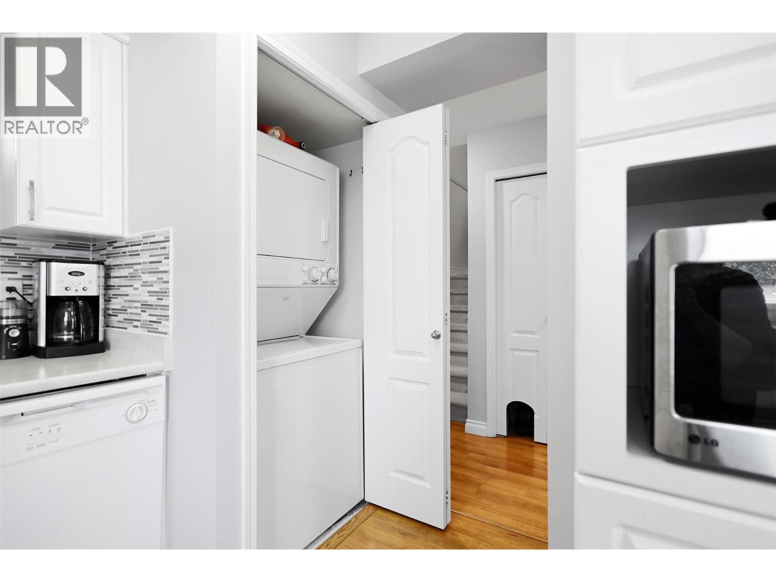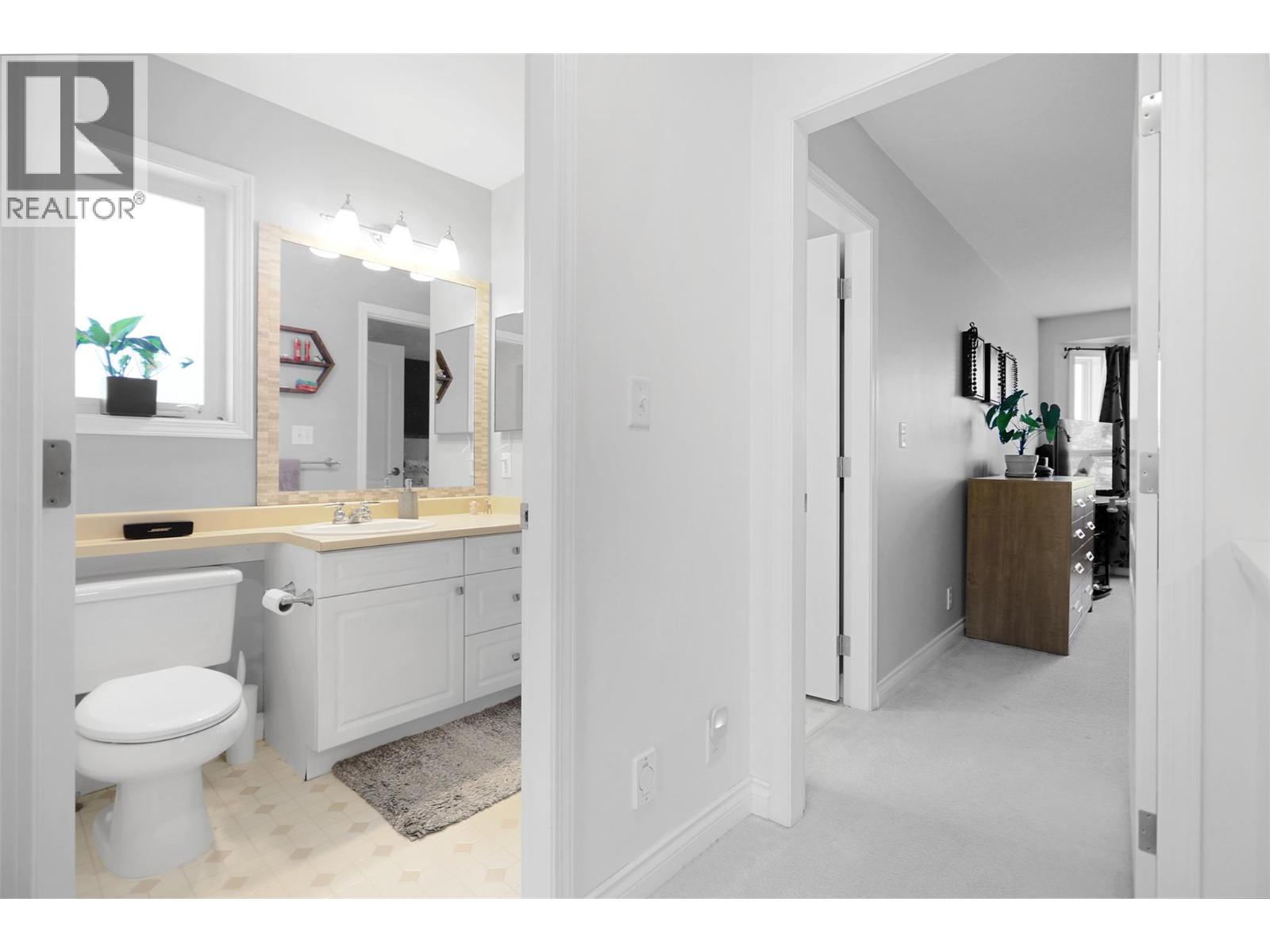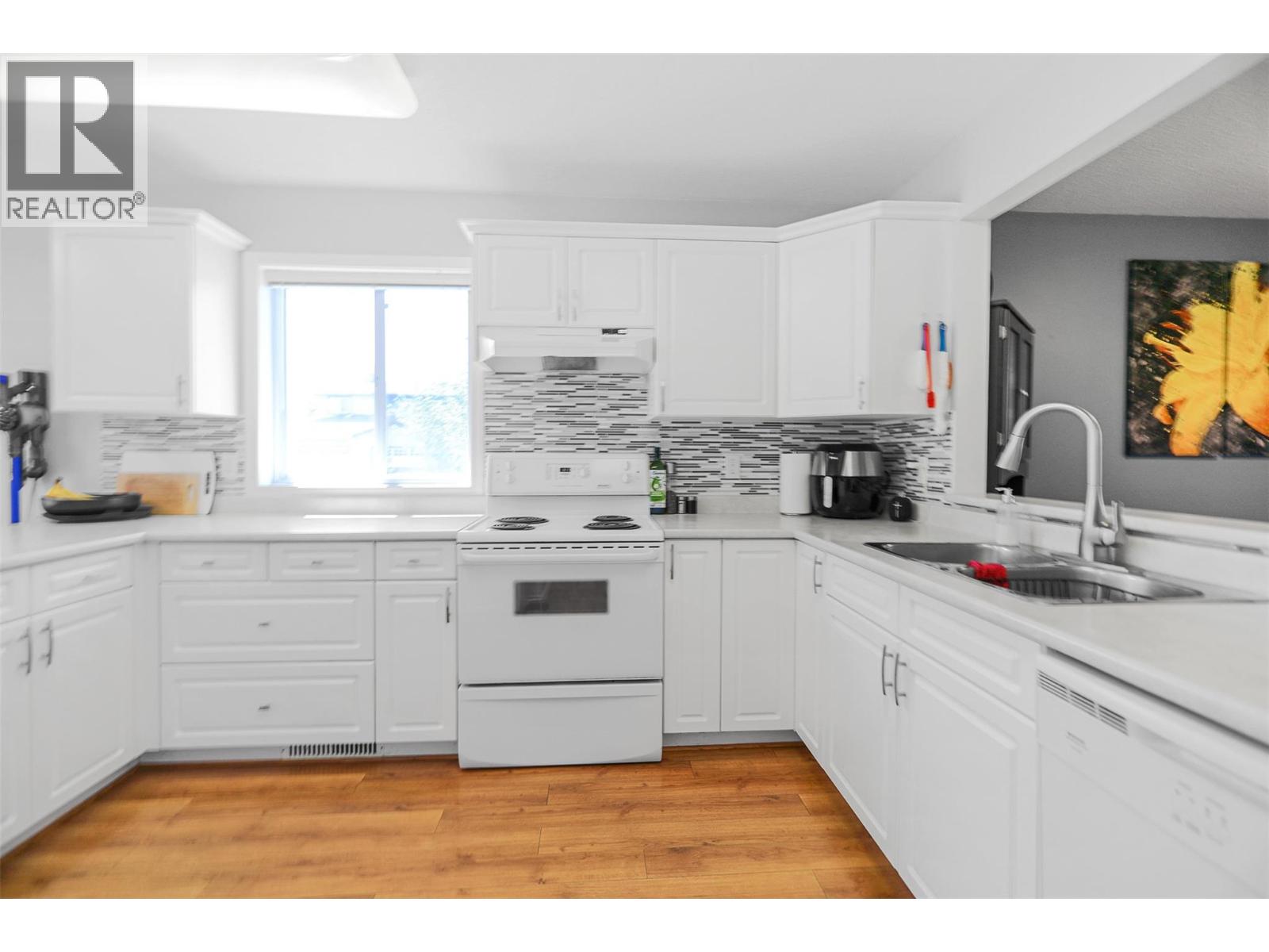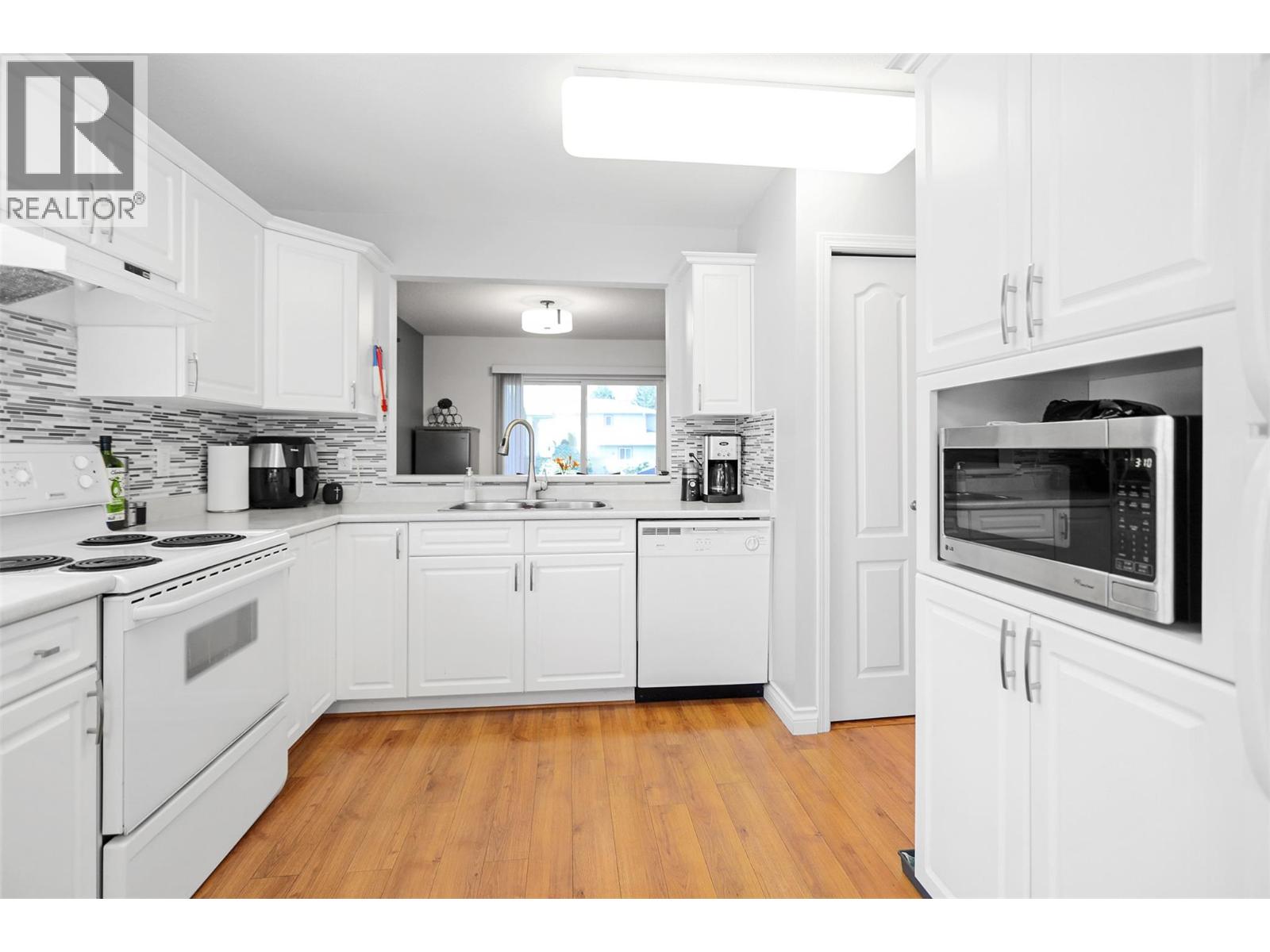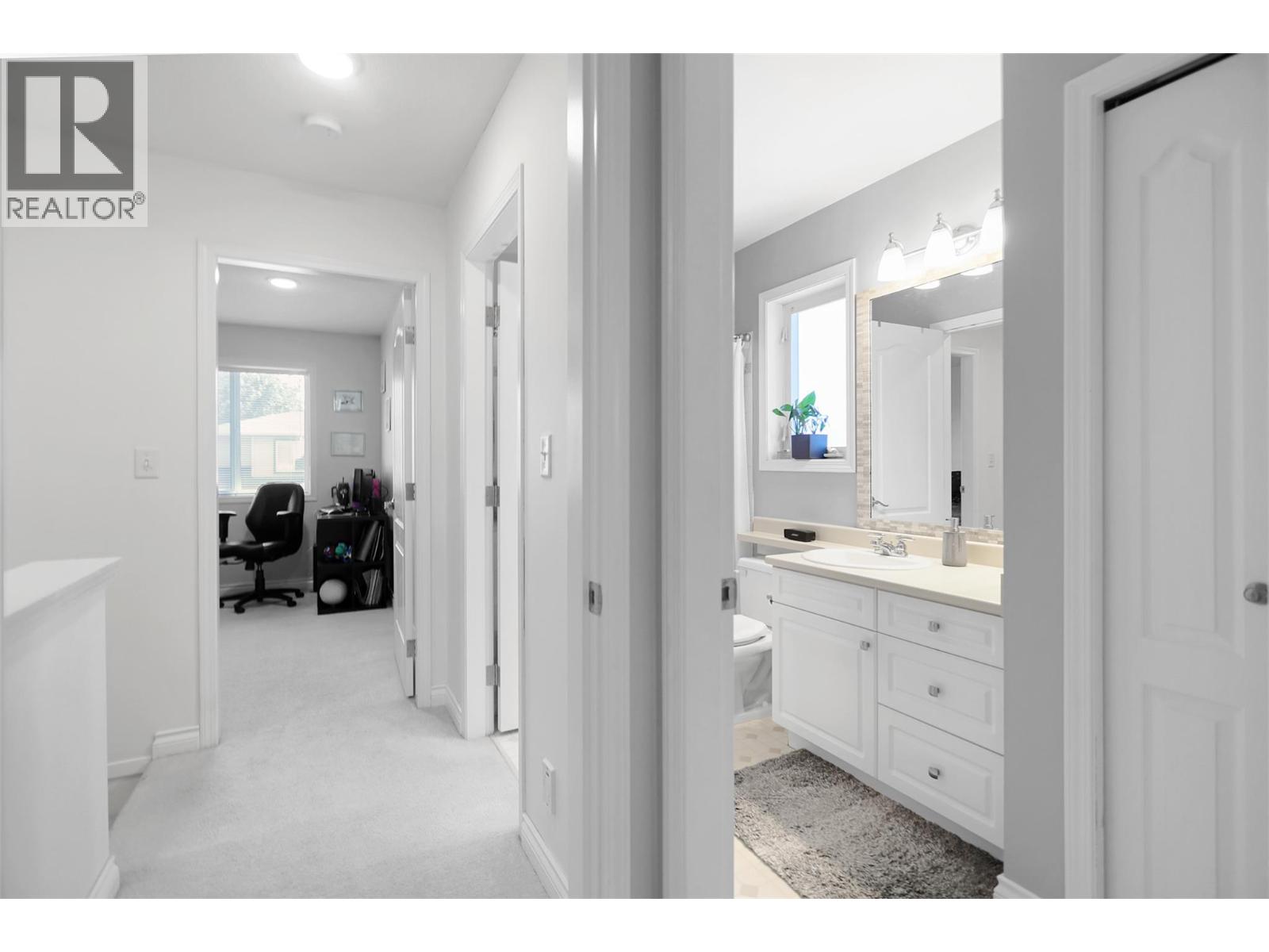 Welcome to your dream townhome in the heart of a vibrant, well-maintained complex! This bright and airy end-unit townhome is flooded with natural light thanks to its extra windows, creating a warm and inviting atmosphere. The main level boasts a spacious kitchen with ample cabinetry and counter space, perfect for culinary enthusiasts, complete with a charming pass-through window to the generous dining/living room area. Adjacent to the dining room, step out onto your private covered patio, where you can relax and enjoy stunning views of lush green space. The kitchen also features a cozy eat-in area, ideal for casual meals. The expansive living room is anchored by a gas fireplace, perfect for cozy evenings. Upstairs, you’ll find two generously sized bedrooms with abundant clothing storage, complemented by a convenient cheater en-suite bathroom. Recent upgrades include a new HWT (25'), furnace (22') and air conditioner (22'), ensuring year-round comfort, and a 2025 roof replacement for peace of mind. The property includes a spacious single-car garage with extra storage and a crawl space for seasonal items, plus an oversized dedicated surface parking spot right outside your front door (largest in the complex). Perfectly located, this home is just a short drive from Strathcona Beach and downtown, yet within walking distance to the charming boutique shops and amenities of Guisachan Village. Don’t miss this rare opportunity to own a move-in-ready townhome in an unbeatable location! (id:21321)
