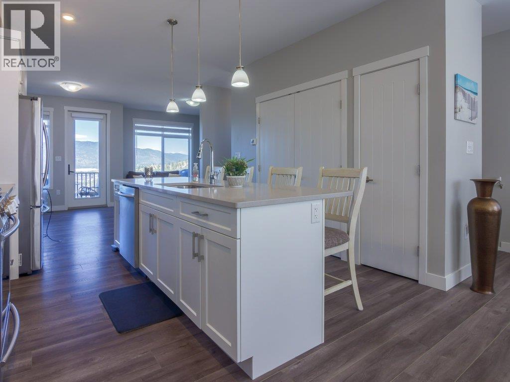 Savour sweeping, unobstructed views of Penticton’s cityscape and valley stretching all the way to Apex Mountain from this private corner townhome in the sought-after Sendero Canyon community. This nearly new 1,932 sqft residence offers 3 bedrooms, a flex room, and 3 bathrooms, blending modern finishes with a bright, open-concept design. The stylish kitchen features quartz countertops, high-end stainless steel appliances, and abundant cabinetry, flowing effortlessly into the living and dining areas. Large windows flood the space with natural light and frame the stunning vistas of Penticton, Campbell Mountain, and Apex Mountain. Step onto the private deck to enjoy outdoor dining or simply relax and take in the peaceful surroundings. Upstairs, the primary suite provides a serene retreat complete with a walk-in closet and a beautifully appointed ensuite. The additional bedrooms are generously sized—perfect for family, guests, a home office, or a fitness space. A spacious 21'x18' double garage, along with two additional exterior parking spots, offers room for up to four vehicles. Nestled in a quiet, family-friendly neighbourhood, this home is just minutes from schools, parks, walking trails, and a short drive to Penticton’s vibrant downtown. A rare combination of privacy, modern comfort, and breathtaking views—this townhome truly has it all. Don't wait, call to book your private viewing today! (id:21321)