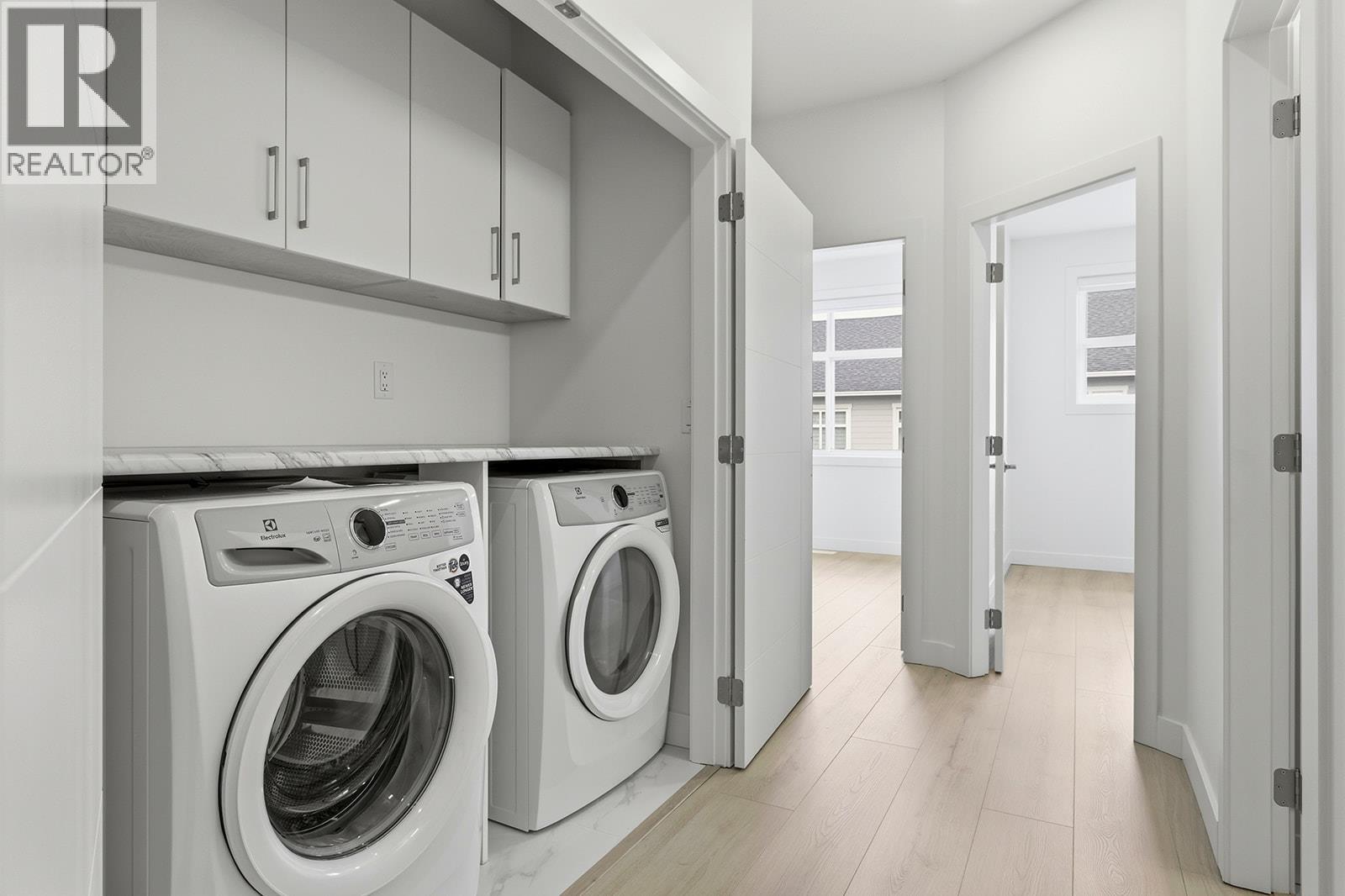 Unparalleled Living in Kettle Valley. Why Wait for Someday? Your Kettle Valley Story Starts Now. Brand New, Move-In Ready Townhomes, Live/Work Homes, & Condos. Welcome to Parallel 4, the newest addition to Kettle Valley—Kelowna’s award-winning, family-friendly neighbourhood. It’s a hub designed around the 4 cornerstones of an unparalleled life: community, nature, purpose, & growth. Enjoy all the benefits of a brand-new home – stylish & modern interiors, new home warranty, No PTT (some conditions apply), & the excitement of being the first to live here. This 4-bed, 4-bath townhome offers views of Okanagan Lake & neighbouring parks. The stylish kitchen is the centre of the main living area, featuring an oversized waterfall island, quartz countertops & backsplash, designer brass fixtures & laminate flooring. Access the front patio from the dining room, & enjoy movie-night in the comfortable living room. The primary suite, with an ensuite and walk-in closet, is on the upper floor alongside two additional bedrooms. A fourth bedroom and bathroom are on the lower level. Other thoughtful details include custom shelving in closets, roller blind window coverings, an oversized single-car garage roughed in for EV charging, and a fenced yard. Located across Kettle Valley Village Centre, enjoy a walkable lifestyle close to the school, shops, pub and parks. Townhomes starting from $734,900. Photos & Virtual tour of a similar home. Showhome open at #106 Sat-Sun12-3pm.