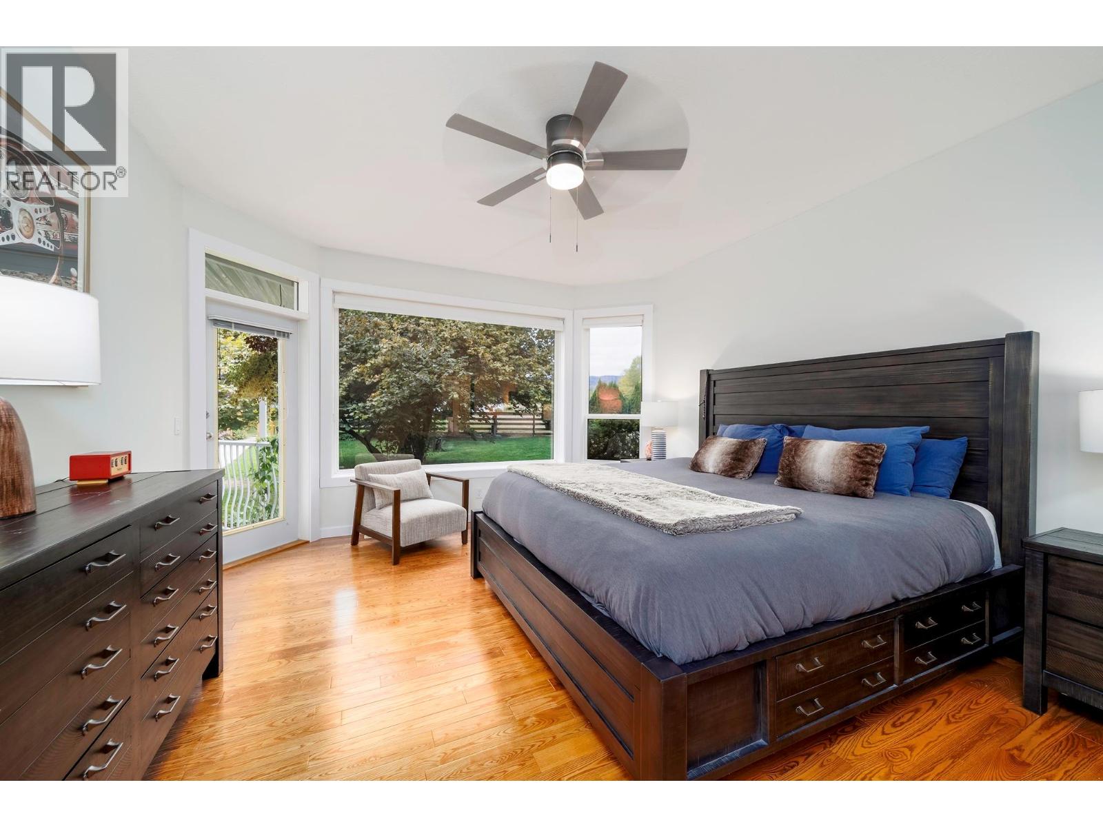 An extraordinary 2.69-acre countryside estate is surrounded by flourishing orchards, offering breathtaking panoramic views of the city skyline and shimmering lake. The residence blends timeless design with natural light, where soaring white ceilings and expansive windows capture stunning exposures from every direction. At the heart of the home, the open-concept living and dining areas seamlessly extend to a partially wrapped-around deck—perfect for entertaining or simply soaking in the views. The chef-inspired kitchen is positioned to overlook the magnificent landscape, while the primary suite provides a true sanctuary with direct access to the backyard, a private retreat space, and a spa-like ensuite designed for relaxation. With four additional bedrooms, a versatile flex room with lake views, and a balcony walkout, this home offers both functionality and luxury for families of all sizes. Outdoors, the ultra-private grounds boast lush green space—ideal for a pool, sports, or gatherings—while the expansive driveway leads to a triple car garage, a separate workshop, and ample parking for boats, RVs, or equipment. Adding to its appeal, a two-bedroom guest suite;complete with kitchen, laundry, and bathroom provides the perfect solution for extended family, guests, staff, or rental opportunities. A rare opportunity to own a private slice of paradise just minutes from local amenities—or enjoy a leisurely stroll to nearby wineries. (id:21321)