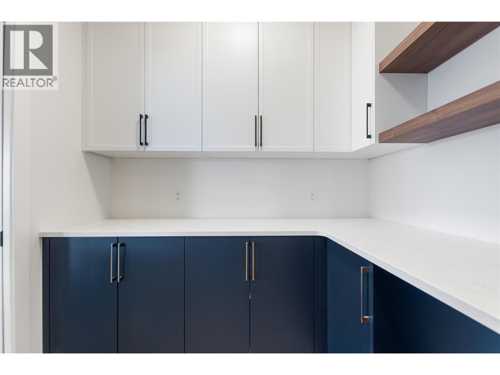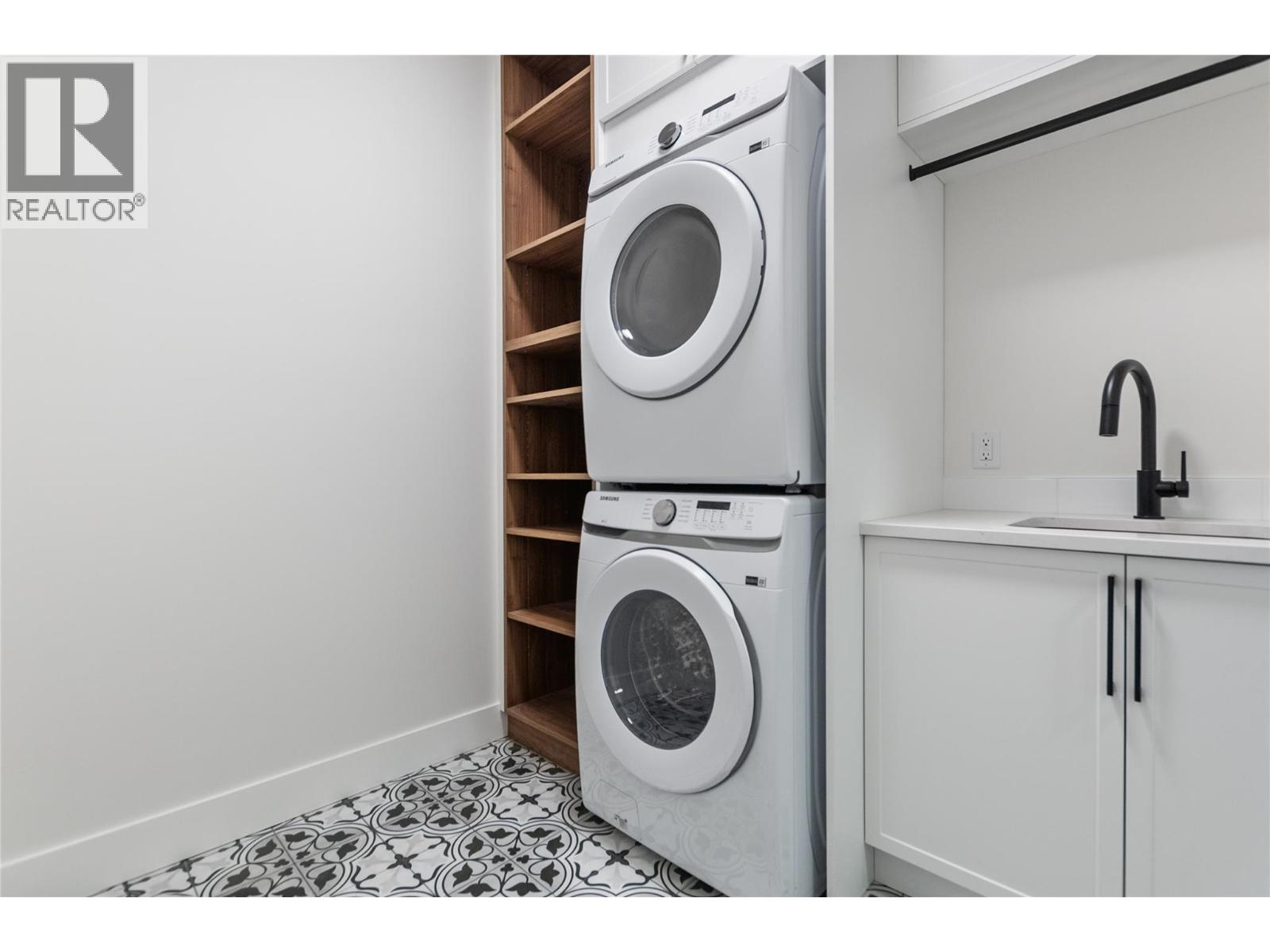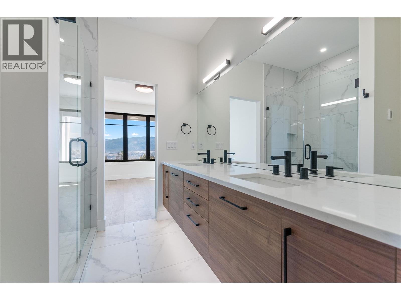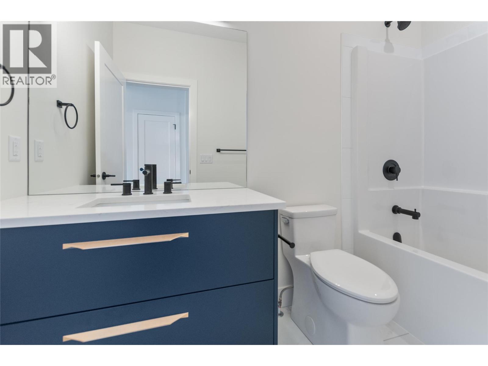 Welcome to this beautifully designed modern home in the sought-after Ridge Penticton development—where style meets functionality in every corner. The main residence features three spacious bedrooms and three bathrooms, crafted with comfort and design in mind. You'll find engineered white oak hardwood flooring throughout the main floor, while the luxurious ensuite bath is finished with matte porcelain tile. The chef-inspired kitchen boasts quartz countertops, custom cabinetry, and a premium Bosch appliance package, including a gas range, fridge, and dishwasher. Downstairs, a legal two-bedroom, one-bath suite offers privacy and potential rental income. It features quartz countertops, durable laminate flooring, matte porcelain tile in the bathroom, and a separate entrance with stair access from the street. The suite also includes its own Samsung appliance package—fridge, dishwasher, electric oven, washer, and dryer—and a generous 200+ square foot covered patio, ideal for outdoor living. The staircase to the lower level is fully carpeted and continues into the hallway and lower bedroom, providing a warm, cozy transition between levels. The two-car garage offers direct access into the home through a multi-functional space that combines a mudroom, laundry area, and pantry. Whether you're looking for a multi-generational home or an income-generating opportunity, this property delivers flexibility and sophistication in one of Penticton’s premier neighborhoods. (id:21321)