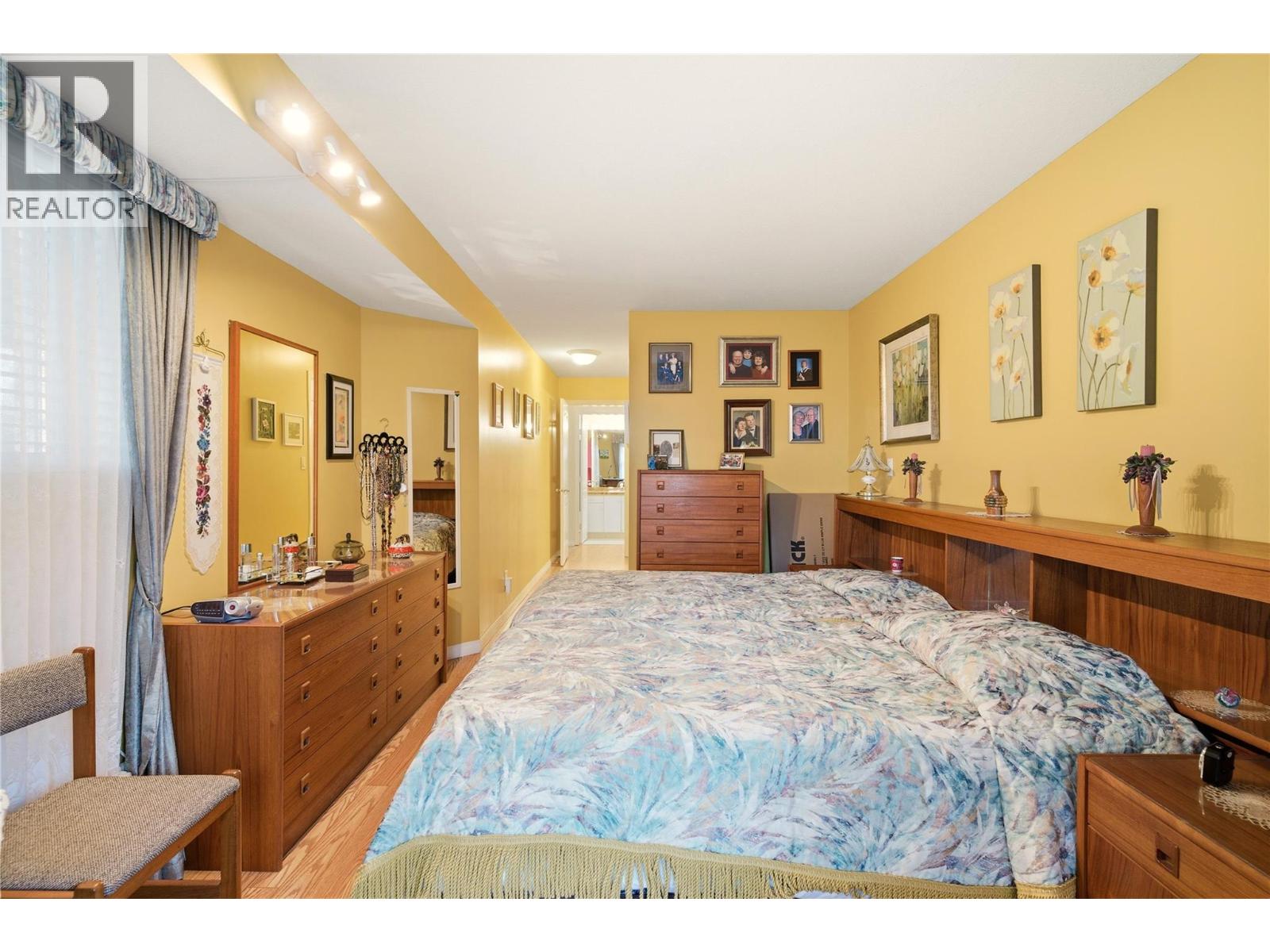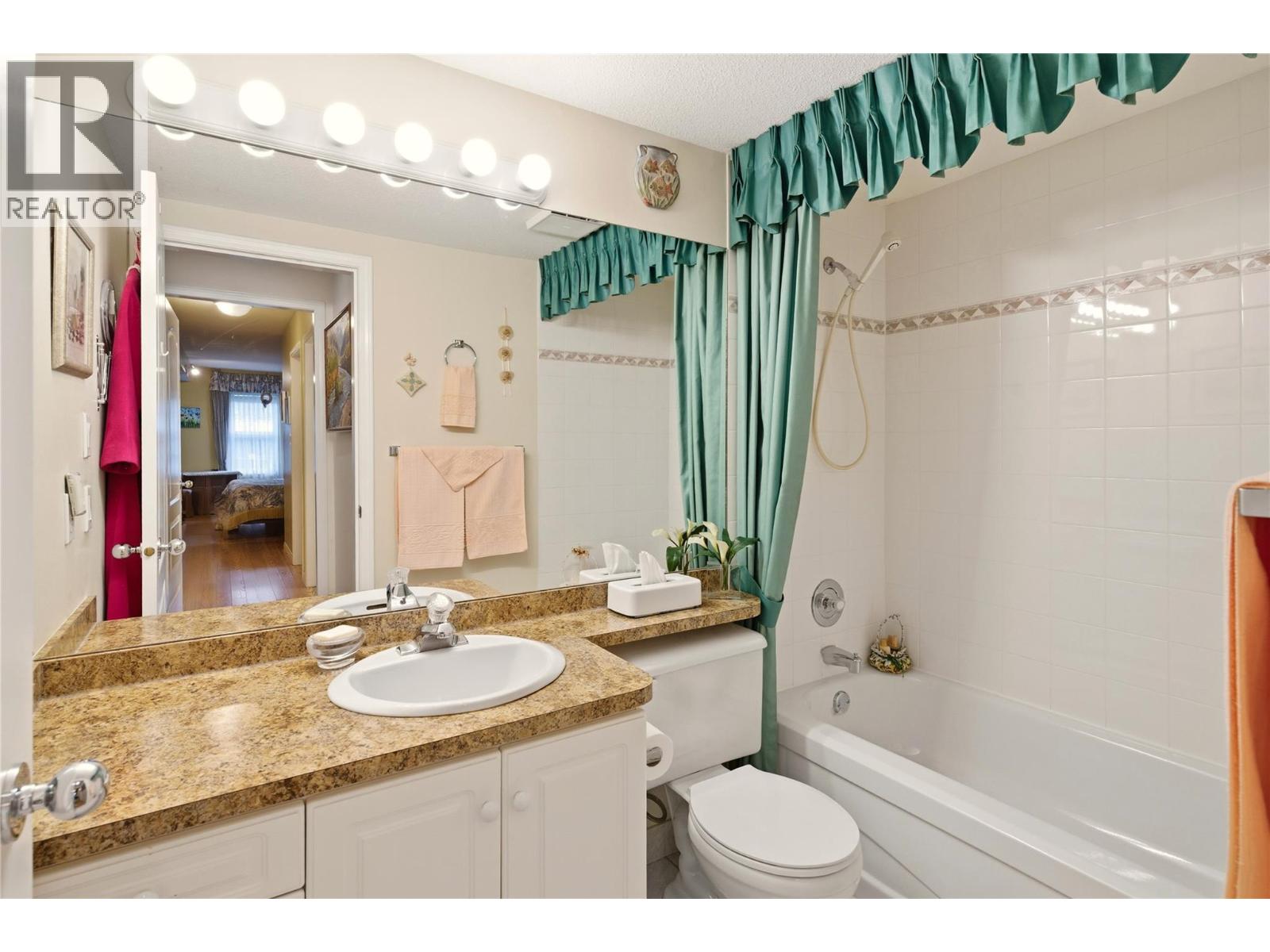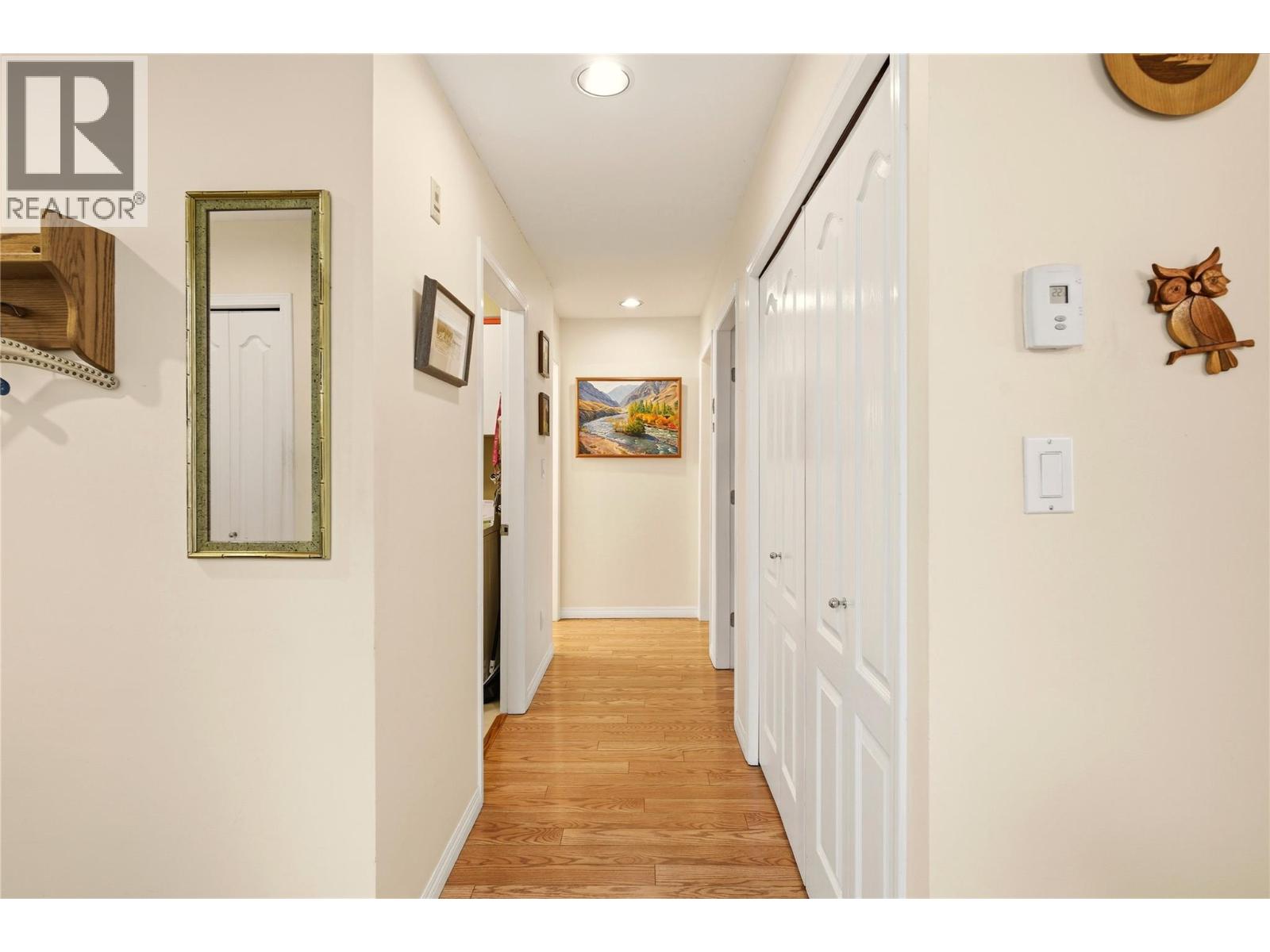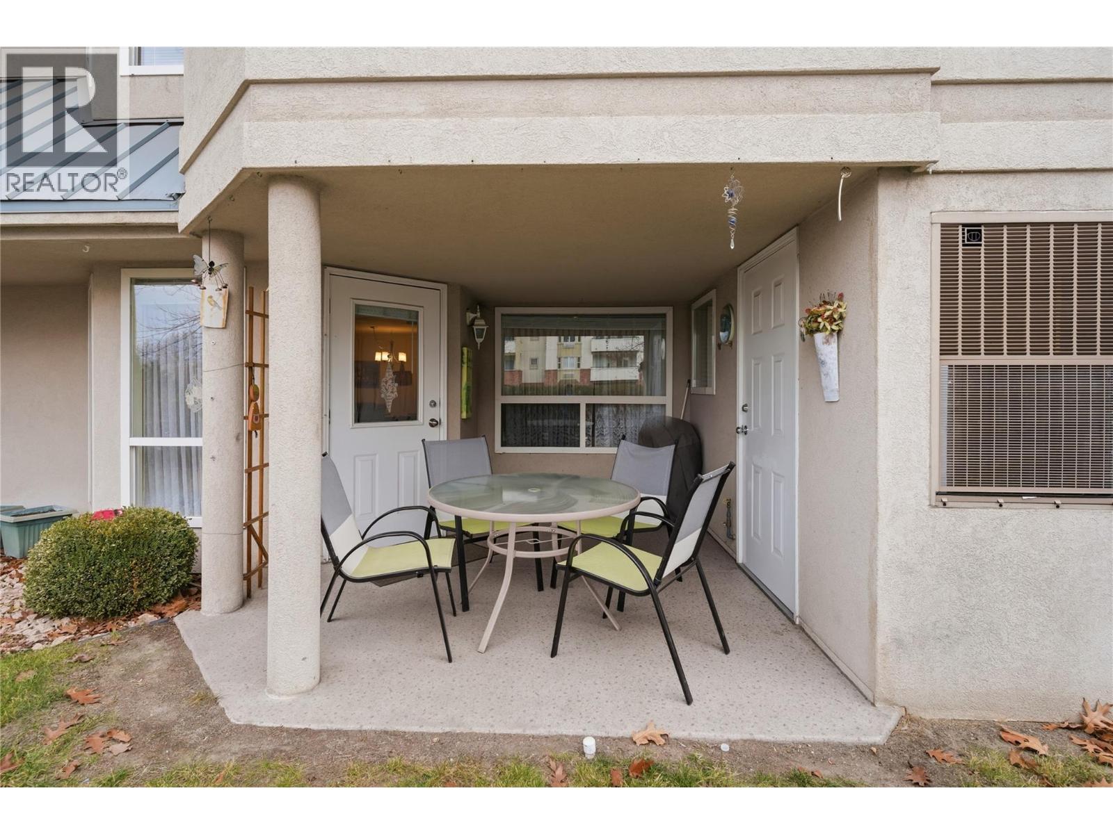 Welcome to one of the best-kept secrets in Bristol Gardens. This immaculate ground-floor 2 bedroom, 2 bathroom (original show home) offers 1,156 sq ft of comfortable, easy living in a location that puts everything at your doorstep. Lovingly cared for by the original owner, this home shows true pride of ownership the moment you walk in. You’ll love the spacious layout with oversized bedrooms and bay windows, including a primary suite with walk-in closet and beautifully updated ensuite featuring a walk-in tiled shower. The separate laundry room is a rare bonus, no squeezing past stacked machines in a closet here. Same-floor storage is just steps away for added convenience. Step outside to your walk-out patio with gas BBQ hookup, perfect for summer evenings and casual entertaining. Enjoy central heat and air conditioning for year-round comfort, with the furnace replaced in 2021. One underground parking stall included. The well-managed building offers a clubhouse, workshop, heated parkade, car wash bay, and two elevators. Walk to Orchard Park Mall, Costco, Superstore, restaurants, and the Mission Creek Greenway. Pet friendly (1 dog or 1 cat) with low strata fees. Peaceful, private, and move-in ready. This is condo living done right. (id:21321)
