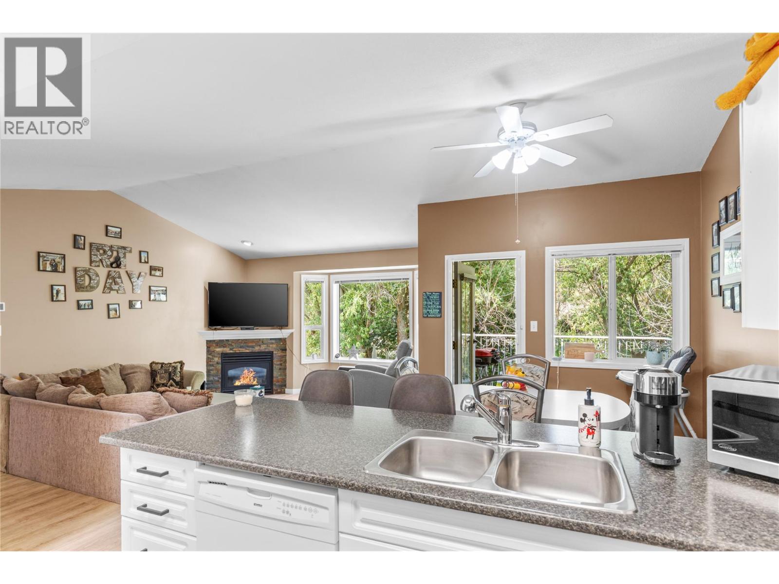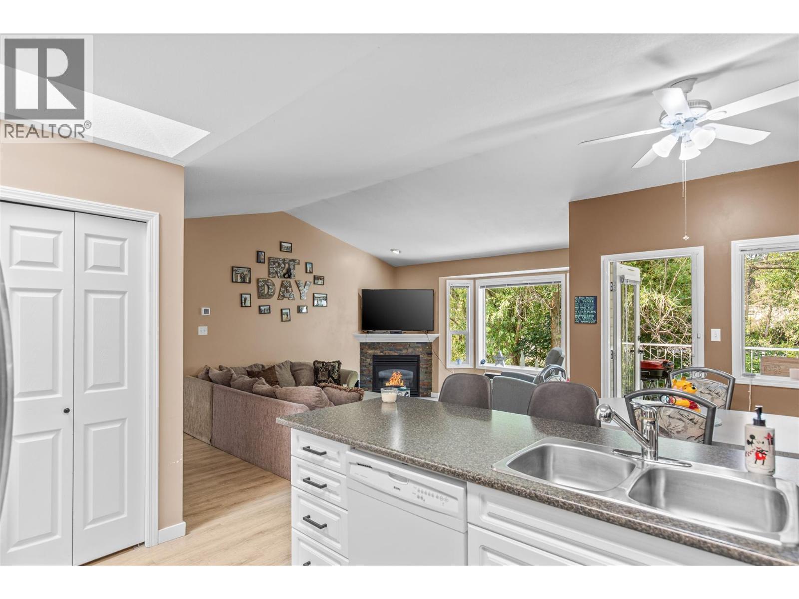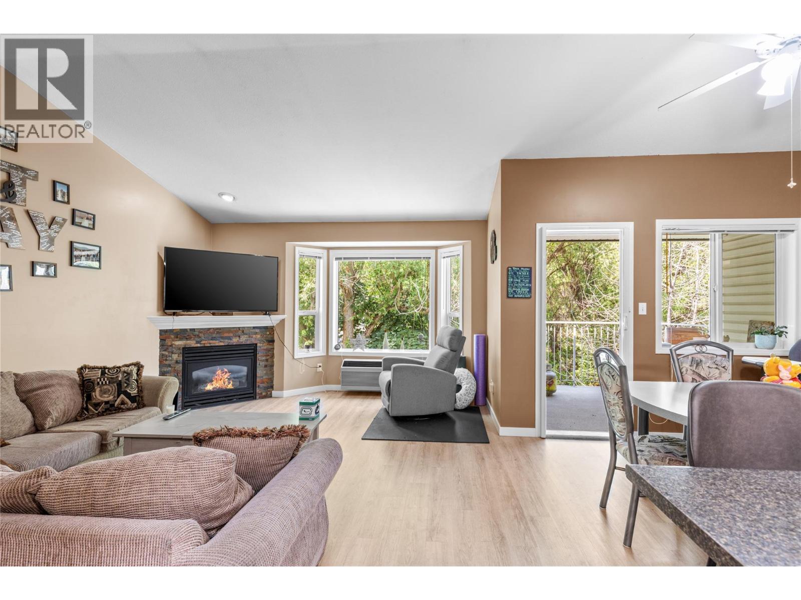 Welcome to Country Estate Place! This quiet tucked away complex gives you the feeling of privacy and tranquillity nestled in a parklike setting. Only 12 units in the complex makes it an ideal place to live. This beautiful 2 bedroom, 2 bath, top floor corner unit has vaulted ceiling in the living room and an open floor plan that allows for tons of natural light. The large master bedroom has large walk in closet and a 4 piece ensuite and you'll find a cozy gas fireplace in the corner of the living room to cuddle up to for those chilly winter nights. Enjoy your morning coffee, BBQ or evening tea sitting on the deck just off of the dining area that overlooks Vernon Creek. Recent upgrades include new fridge and dishwasher (June 2025) and Poly B was done in 2023. In unit laundry, large storage room and a sky light for extra daylight round off this unit. Beautifully maintained and move in ready. Strata fees are $460.00 and include snow removal, water, sewer, garbage, and landscaping. Pets allowed with restrictions, 1 dog or 1 cat. No size restrictions. Walking distance to Kal Beach and the Rail Trail. Close to golf, transit and shopping. Call me today to arrange your viewing and make this condo your new home! (id:21321)