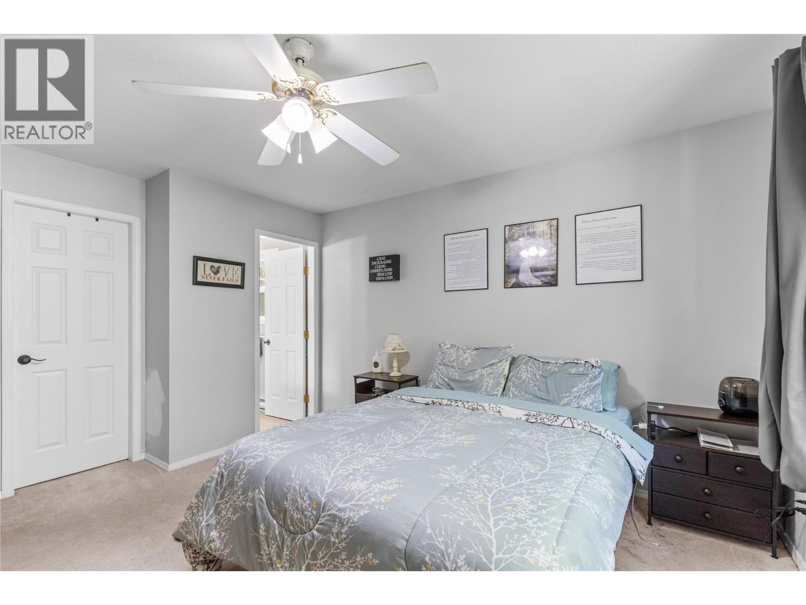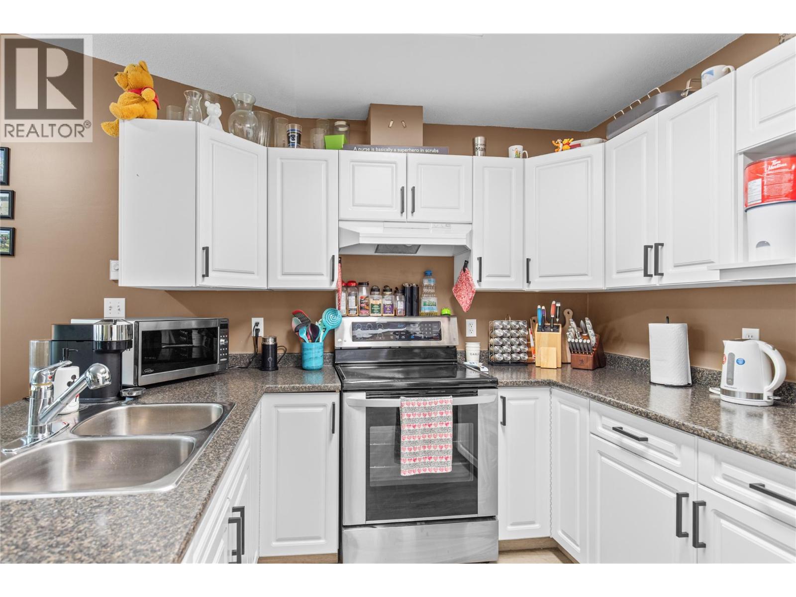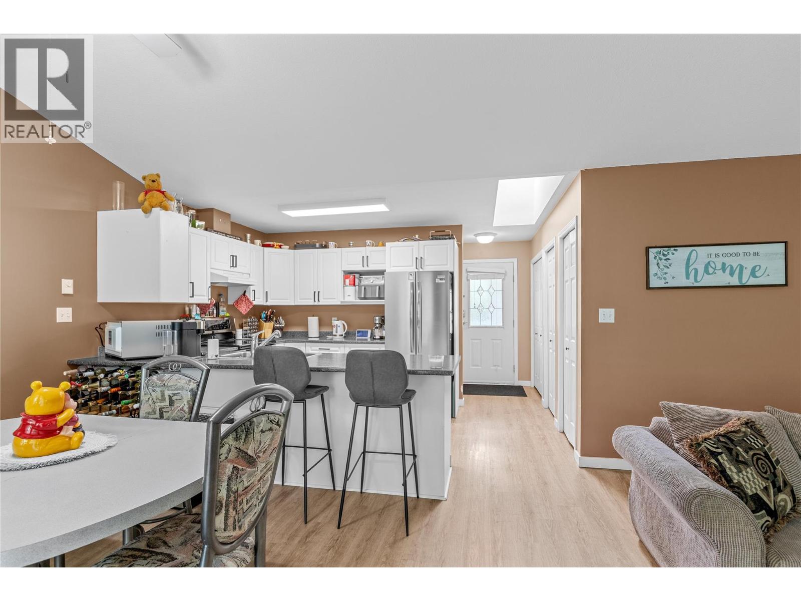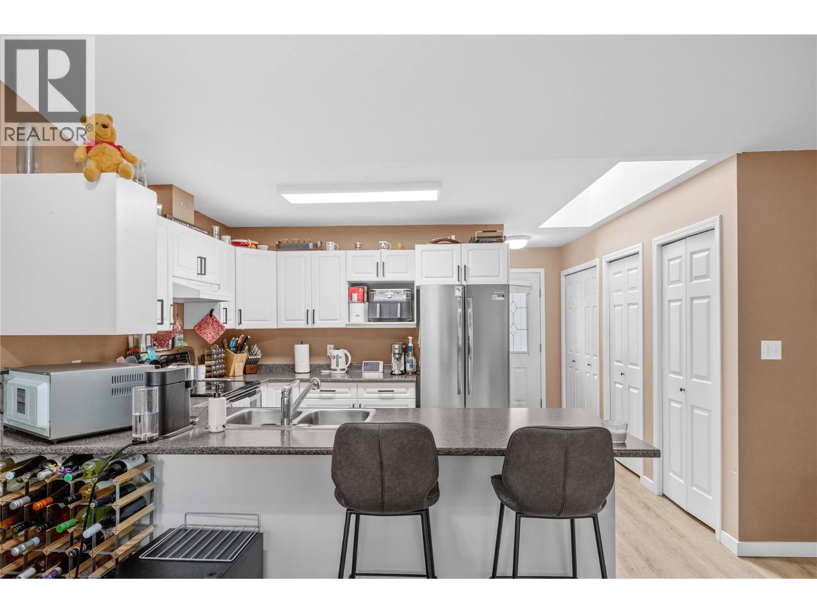 Welcome to Country Estate Place! This quiet tucked away complex gives you the feeling of privacy and tranquillity nestled in a parklike setting. Only 12 units in the complex makes it an ideal place to live. This beautiful 2 bedroom, 2 bath, top floor corner unit has vaulted ceiling in the living room and an open floor plan that allows for tons of natural light. The large master bedroom has large walk in closet and a 4 piece ensuite and you'll find a cozy gas fireplace in the corner of the living room to cuddle up to for those chilly winter nights. Enjoy your morning coffee, BBQ or evening tea sitting on the deck just off of the dining area that overlooks Vernon Creek. Recent upgrades include new fridge and dishwasher (June 2025) and Poly B was done in 2023. In unit laundry, large storage room and a sky light for extra daylight round off this unit. Beautifully maintained and move in ready. Strata fees are $460.00 and include snow removal, water, sewer, garbage, and landscaping. Pets allowed with restrictions, 1 dog or 1 cat. No size restrictions. Walking distance to Kal Beach and the Rail Trail. Close to golf, transit and shopping. Call me today to arrange your viewing and make this condo your new home! (id:21321)