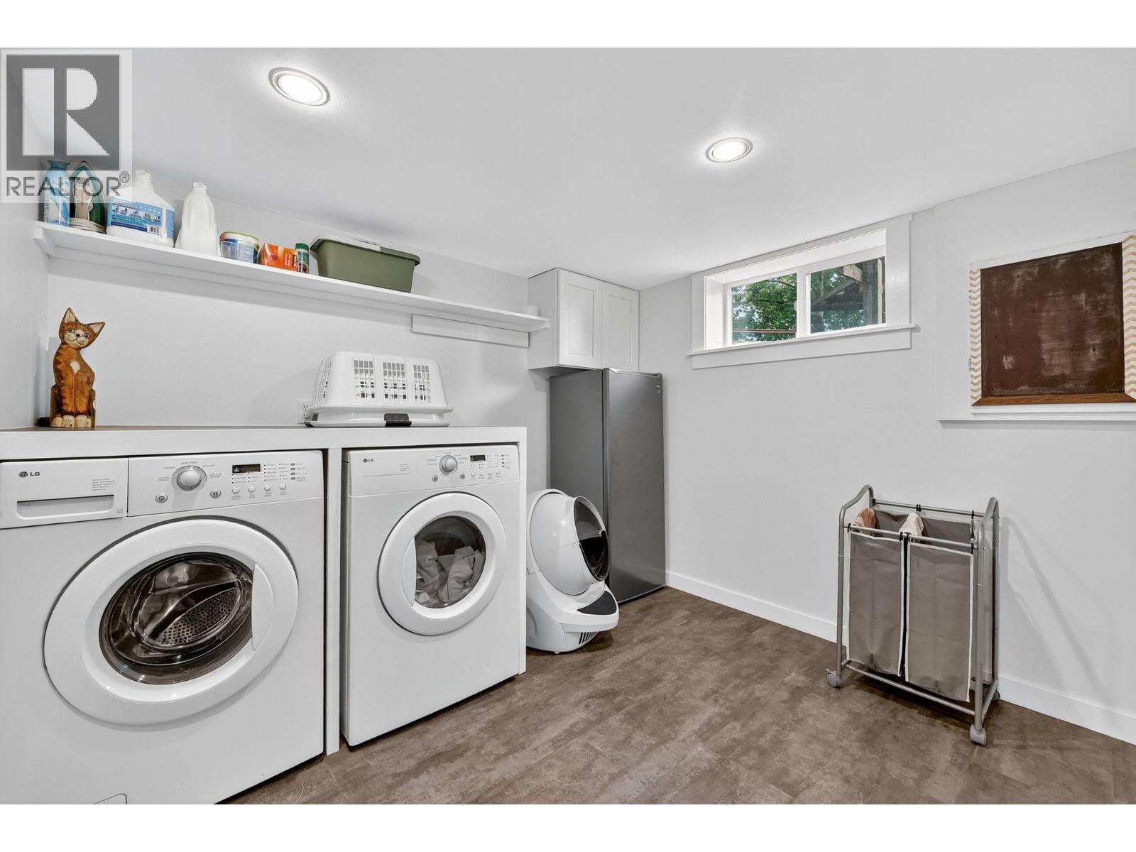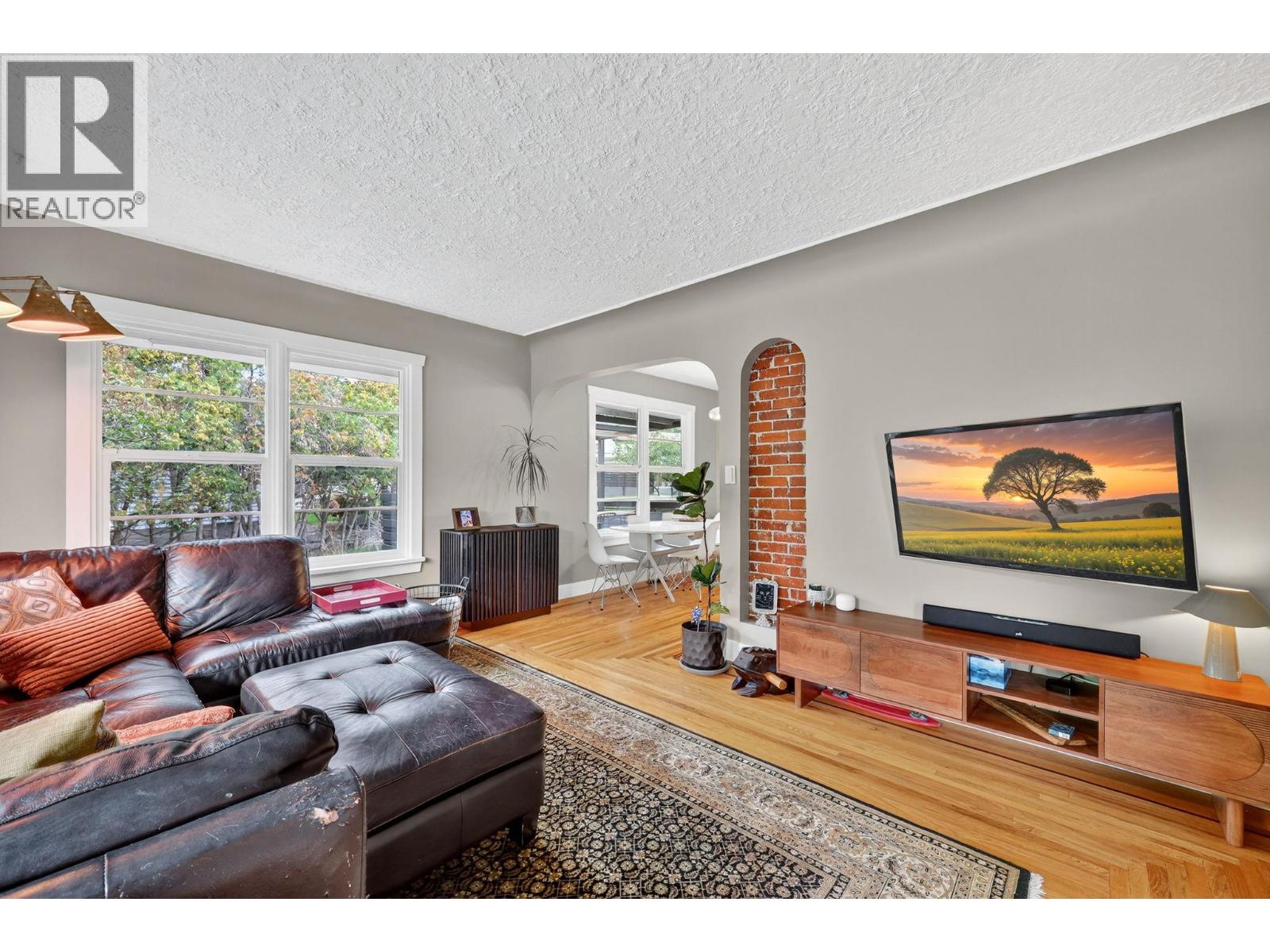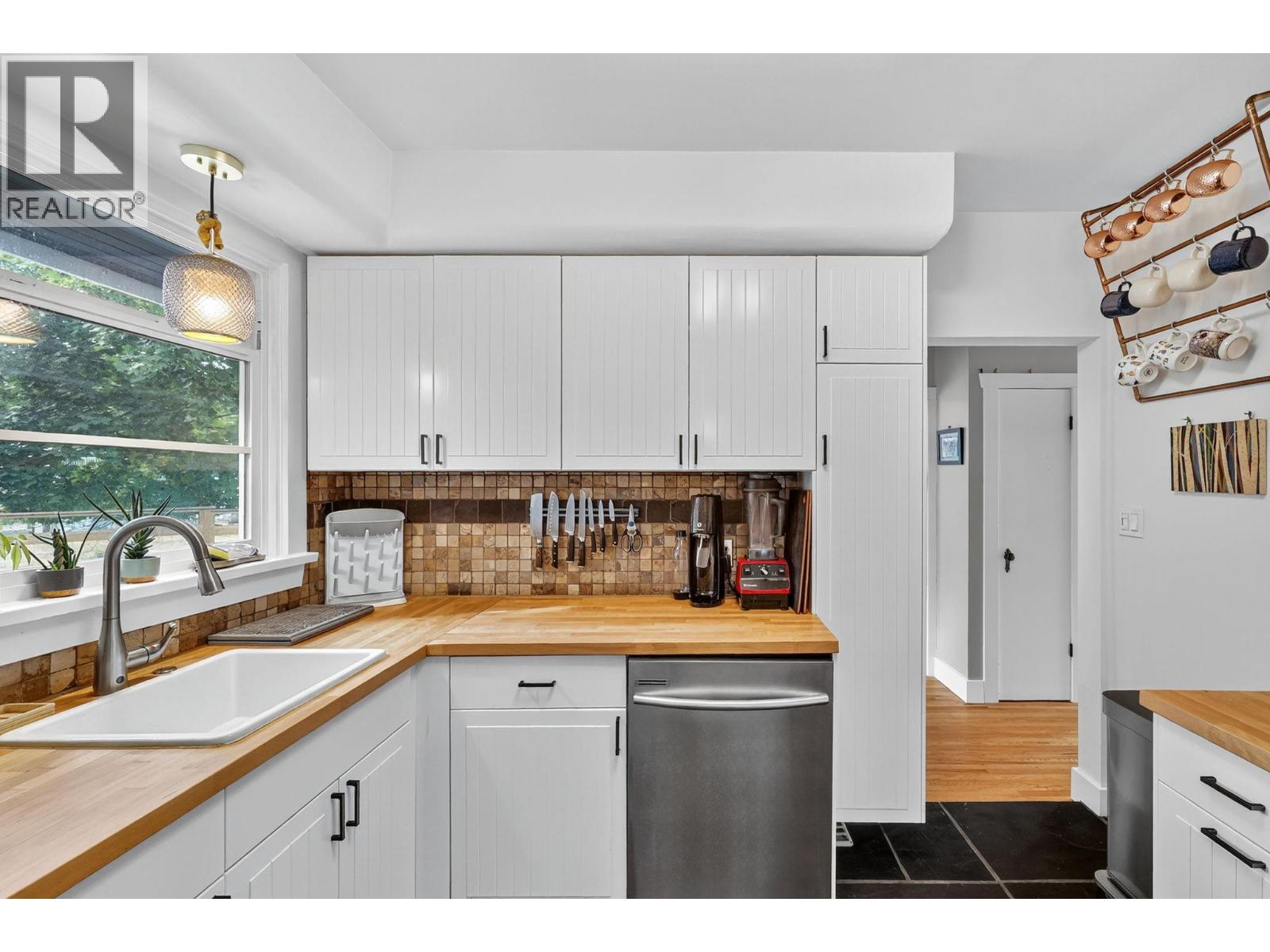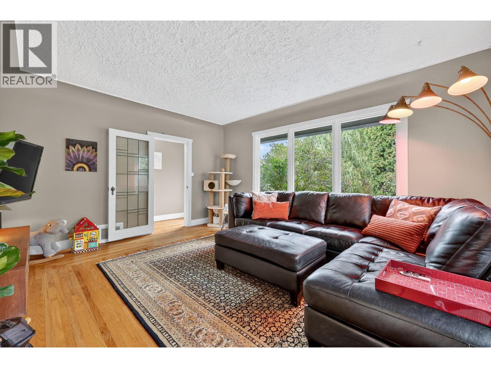 Beautifully maintained and updated 1950s home in one of Kelowna's most sought-after neighborhoods. This move-in ready 3-bedroom, 2-bathroom residence offers the ideal blend of classic character and thoughtful updates. The main floor features professionally refinished hardwood floors, a bright living room with stepped tray-style ceilings and extra-large windows, and a stunning kitchen with slate flooring, butcher block countertops, and country-style cabinets. Two bedrooms and a full bathroom complete the main level. The basement adds versatile living space with a family room, third bedroom, full bathroom with custom glass shower, and large laundry room. A separate entrance provides excellent flexibility for extended family or potential rental income. Extensive upgrades include a high-efficiency gas furnace, updated PEX plumbing, and new windows and exterior doors throughout, ensuring modern efficiency and peace of mind. Outside, enjoy a spacious deck, generous yard, storage shed, and 12x10 workshop. The recently paved driveway offers abundant parking with a gated area for your RV or boat. Perfectly located on a quiet, family-friendly street, you're minutes from schools, parks, golf courses, and shopping. This solid home represents excellent value in Old Glenmore. Call, Text or Email today with any questions or to arrange a private viewing of this charming property! (id:21321)