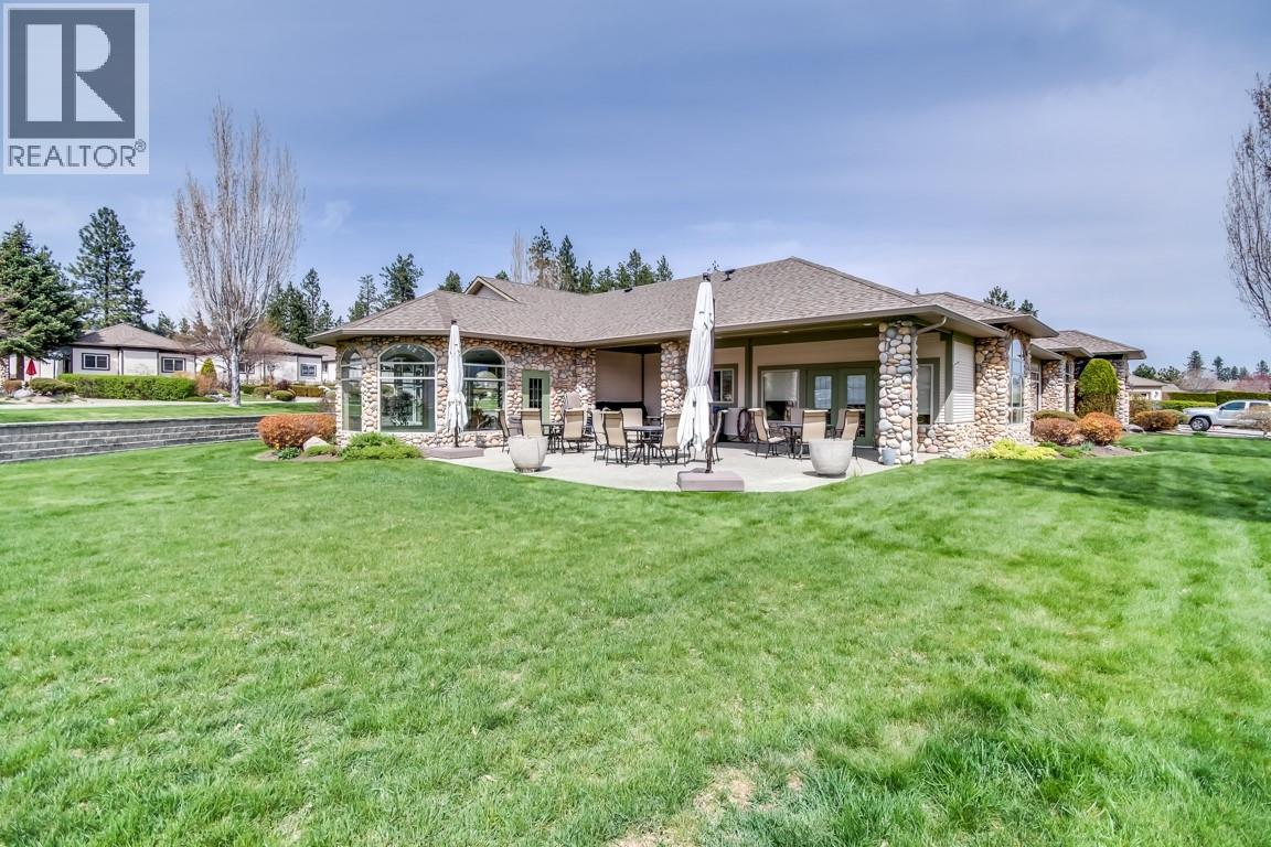 LEASE IS PAID! Welcome to ""The Pointe""! This 55+ gated community is just above the boardwalk & shores of Lake Okanagan. This well appointed detached walk-out rancher is privately situated & backs onto a lush quiet greenspace to be enjoyed all year round w/ canyon & mountain views. The wrap around deck allows you to enjoy the natural beauty of this spot. The open floorplan features a living room w/vaulted ceilings, fireplace & hardwood floors, surround sound, a wall of windows opening onto the deck & allowing for loads of natural light. The kitchen features quartz counters, white cabinetry, newer black appliances & large walk-in pantry. The primary bedroom is spacious & has an updated 3 pc ensuite. A spacious foyer, den, laundry room complete the main floor. Downstairs features a large family room w/gas fireplace & wet bar, 2 bedrooms, even a workshop for the hobby enthusiast. Furnace, HWT & AC have recently been replaced & the list of updates goes on! The Clubhouse is close by with; Salt water pool, BBQ, Kitchen, Billiards room, Exercise Room & Library. An active social community within the development just adds to the total package. The location is superb with easy access to shopping, Waterfront Walking Trail, West Kelowna Yacht Club & Wineries along the Westside Wine Trail. (id:21321)