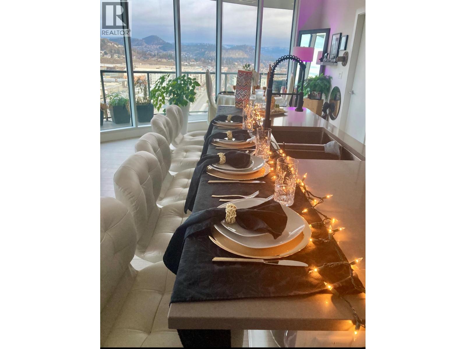 This stunning sub-penthouse offers luxury living with panoramic lake and city views from an expansive 65-foot deck and floor-to-ceiling windows throughout. Featuring two spacious bedrooms plus a den, currently transformed into a custom wine room, and two and a half bathrooms, this home combines style and functionality. The bright, open-concept layout is ideal for entertaining, highlighted by a gourmet kitchen with an oversized island that seats six, premium appliances, and high-end finishes. Both bedrooms include full ensuites with upgraded showers, while the primary suite features a generous walk-in closet. Professionally designed upgrades elevate the interior with a sleek, modern aesthetic. Located just steps from the beach, restaurants, and boutique shops, this sub-penthouse offers the perfect blend of luxury and lifestyle. A rare opportunity to own an exceptional residence with unparalleled views in one of the area’s most desirable locations. (id:21321)