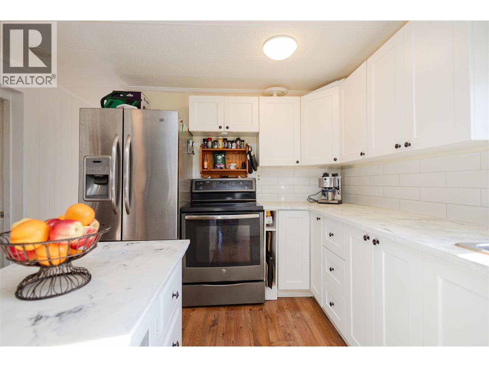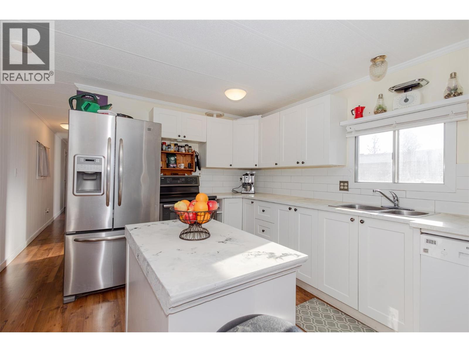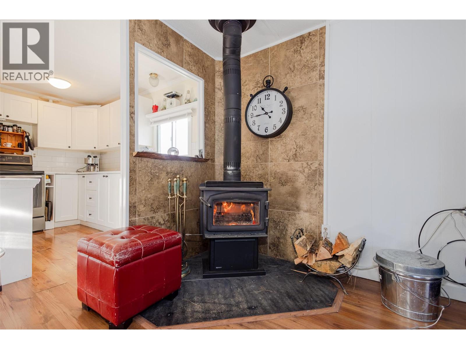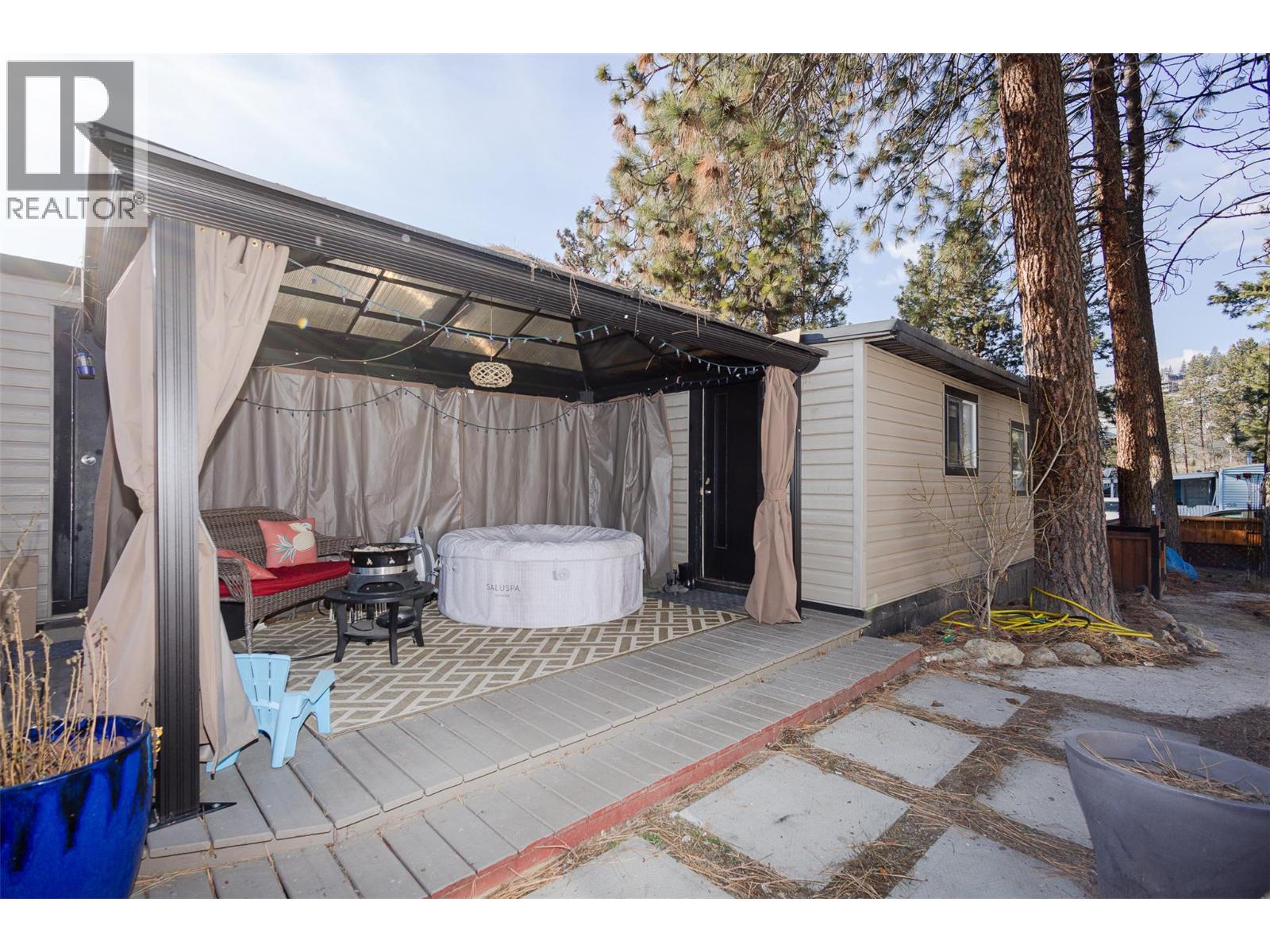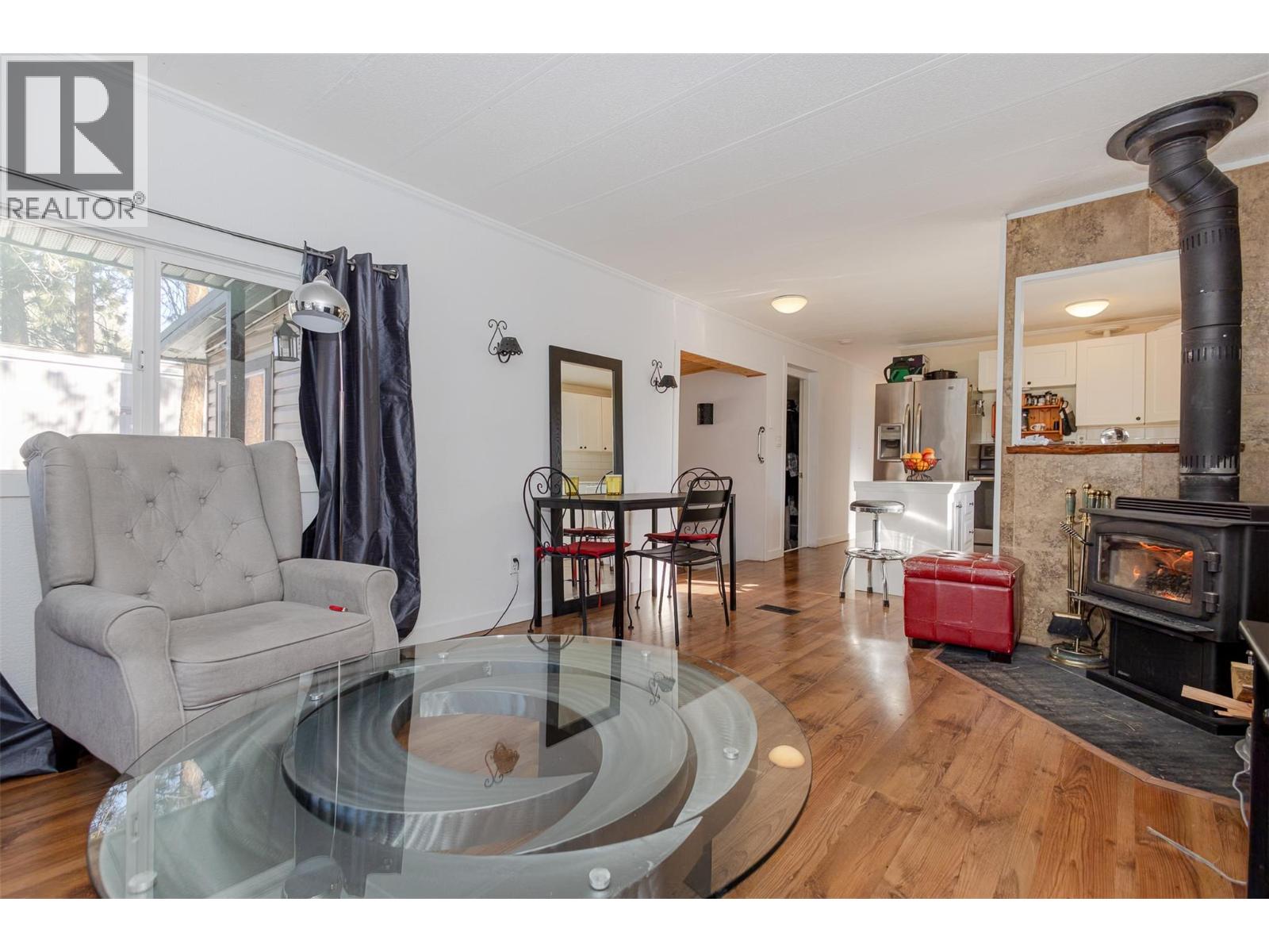 This beautifully maintained 3 bedroom, 2 bathroom home offers the perfect blend of comfort, functionality, and outdoor living — all set against scenic mountain views and exceptional privacy. Step inside to an inviting layout featuring a cozy living space centered around a brand new WET-certified wood-burning stove, creating warmth and ambiance throughout the cooler months. The kitchen has been thoughtfully upgraded with a brand new GE Profile 6-burner convection oven and a stainless steel GE refrigerator, offering both performance and style for those who love to cook and entertain. Major updates provide peace of mind, including a 6-year-old roof and hot water tank. Where this property truly shines is outdoors. The private yard has been transformed into a functional oasis complete with: A covered deck with a brand new 12 ft gazebo Raised garden beds Two storage sheds — one equipped with 100 amp power, ideal for a workshop, hobby space, or additional storage No rear neighbours, backing onto a quiet gravel area with gated access Mature trees adding natural privacy and character Westview Village remains one of West Kelowna’s most sought-after manufactured home communities due to its unbeatable central location — just minutes to schools, transit, golf, restaurants, shopping, beaches, and Okanagan wineries. (id:21321)