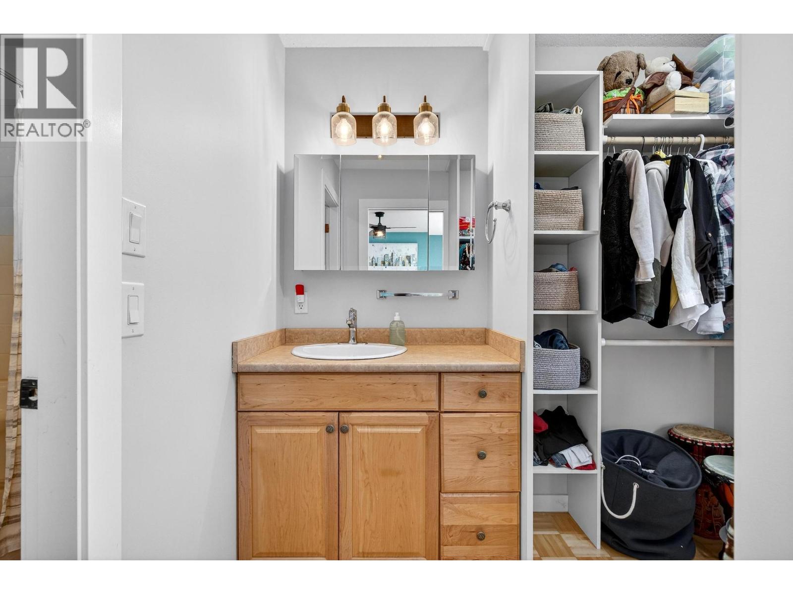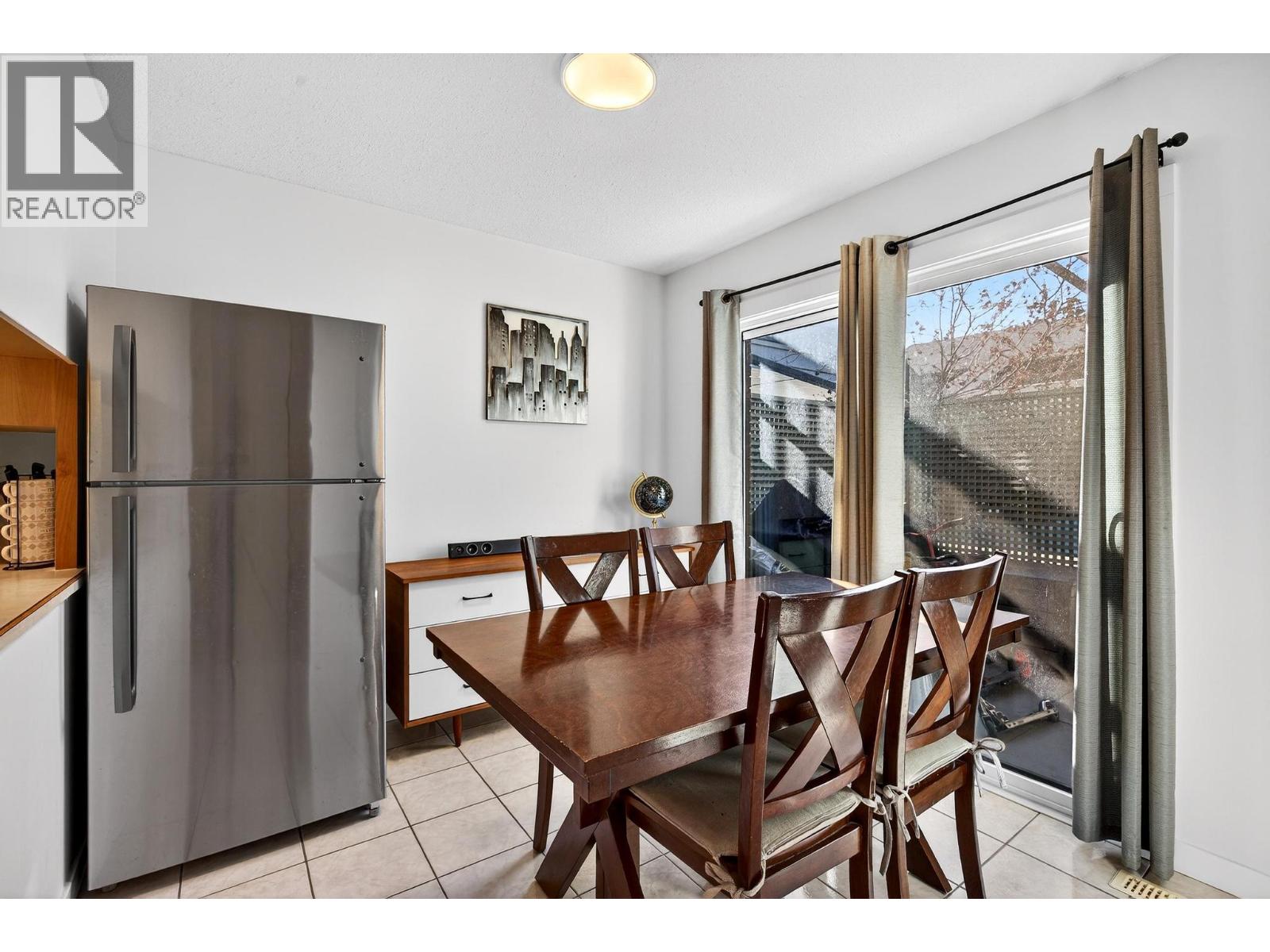 Backing onto Mill Creek and a lush greenbelt, this beautifully updated 3 bed, 2.5 bath townhouse offers a rare park-like setting that truly feels like an escape. The main floor features rich maple hardwood, a ceramic tile entry and kitchen, and a spacious living room with a cozy gas fireplace that opens directly to a covered patio. Step outside to peaceful green space along the creek, perfect for kids and pets to play. The updated kitchen is finished with stainless steel appliances (2021), maple cabinetry, and modern black hardware. Upstairs, all three bedrooms are conveniently located on one level. The king-sized primary suite includes a walk-in closet, private ensuite, and its own sundeck to enjoy the Okanagan sunshine. Two additional bedrooms and a full 4-piece bathroom complete the upper floor. Recent updates include LED lighting, fresh paint, A/C (2022), hot water tank (2021), and Centra glass windows and doors (2021), along with new exterior paint (2021). Three outdoor spaces in total. Two parking stalls included (1 carport, 1 stall). Ample storage throughout. Pet friendly (2 dogs, 2 cats, or 1 of each, dogs up to 24"" at shoulder). No age restrictions. Just steps to Capri Mall, schools, parks, restaurants, and transit. (id:21321)