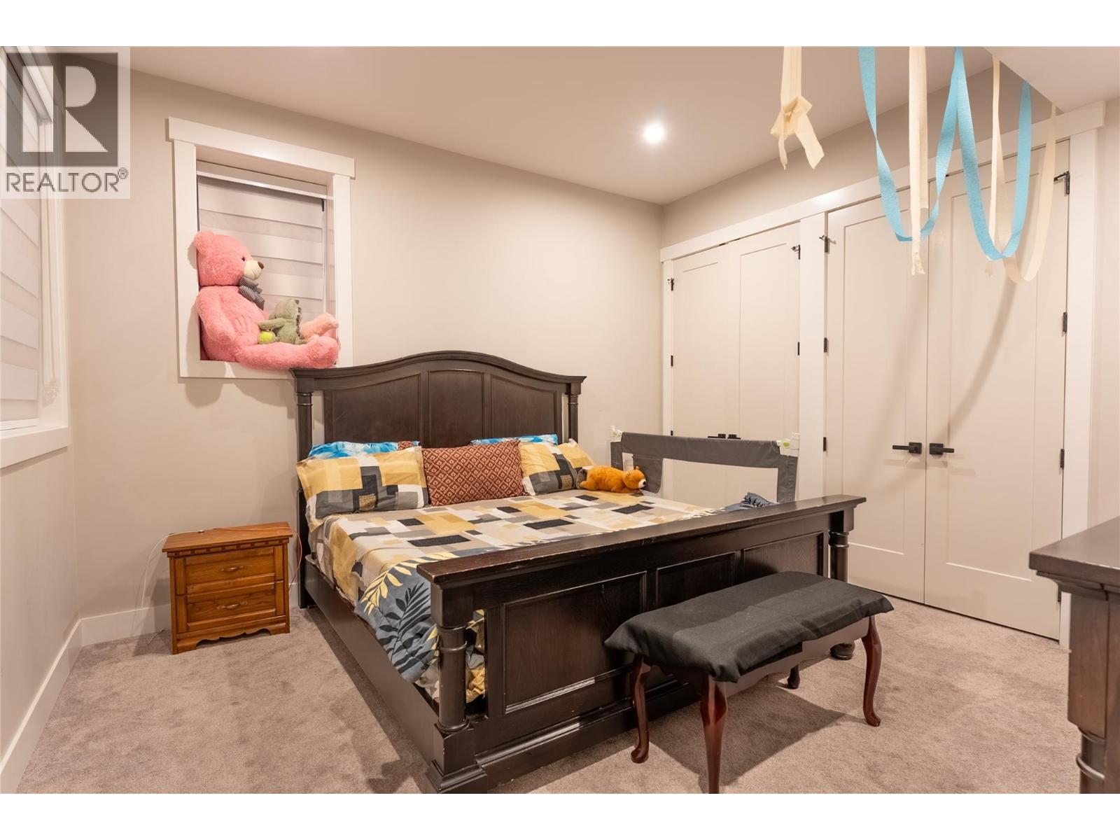 Modern 6-bed, 6-bath home suited home in Black Mountain's private Mine Hill Lane! The main floor of this remarkable home features an airy open-concept layout, grand vaulted ceilings, large picture windows featuring stunning views sweeping East of Kirschner mountain to Okanagan Lake, cozy fireplace, elegant kitchen , large island with bar seating, beautiful quartz counters, tons of cabinets, spacious master suite abundance of south exposure windows with doors leading to the and wrap around patio, spa-like ensuite with glass shower, free-standing soaker tub, well-appointed main bathroom, office and extra bedrooms. 3-car garage & access to the large covered patio with glass railing to showcase those remarkable South and West facing views. The self-contained, legal lower-level suite is every bit as stunning as the main floors featuring 1-bedroom, 1-bathroom, laundry, access to yard & covered patio. There is also an additional 2-bedroom nanny suite downstairs for multi-generational living! (id:21321)