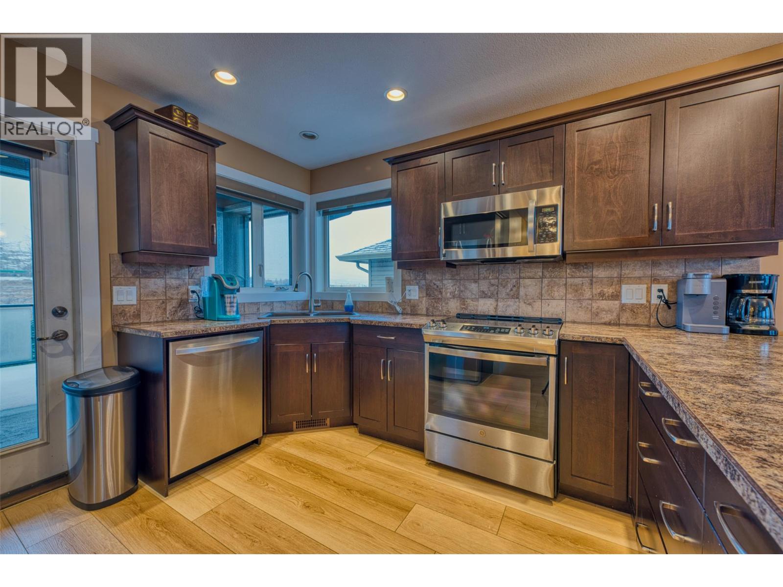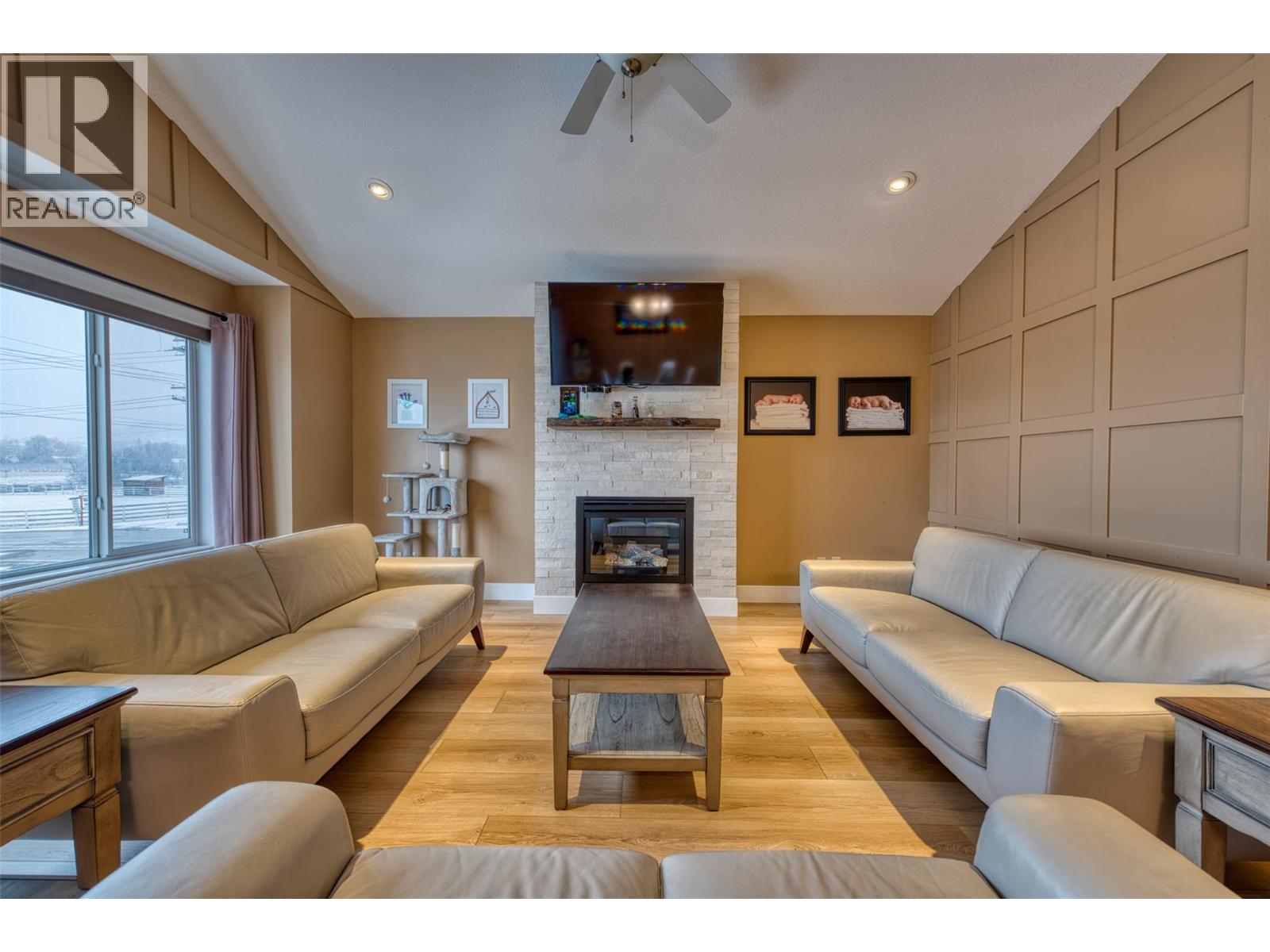 Discover the ultimate family home in the picturesque Okanagan! This exceptional home features a seamless open-concept design on the main floor with brand new vinyl flooring throughout, complete with vaulted ceilings and expansive windows that frame stunning mountain views. The kitchen is equipped with ample storage and sleek stainless steel appliances. Enjoy dining al fresco on the deck adjacent to the kitchen, or unwind on the front deck. The main level also includes a generously-sized primary bedroom with a walk-in closet and ensuite bathroom, plus two additional spacious bedrooms and another full bathroom. The lower level offers versatile options with a fourth bedroom (or office) for visitors, a half bath that can be easily converted back to full bath with a shower or tub, and a separate entrance, ideal for converting into a suite or utilizing as a large rec room or entertainment space. Step outside to a low-maintenance yard featuring an in-ground pool and synthetic lawn, perfect for children and pets with its secure fencing. Embrace the Okanagan lifestyle with this ready-to-enjoy home! (id:21321)