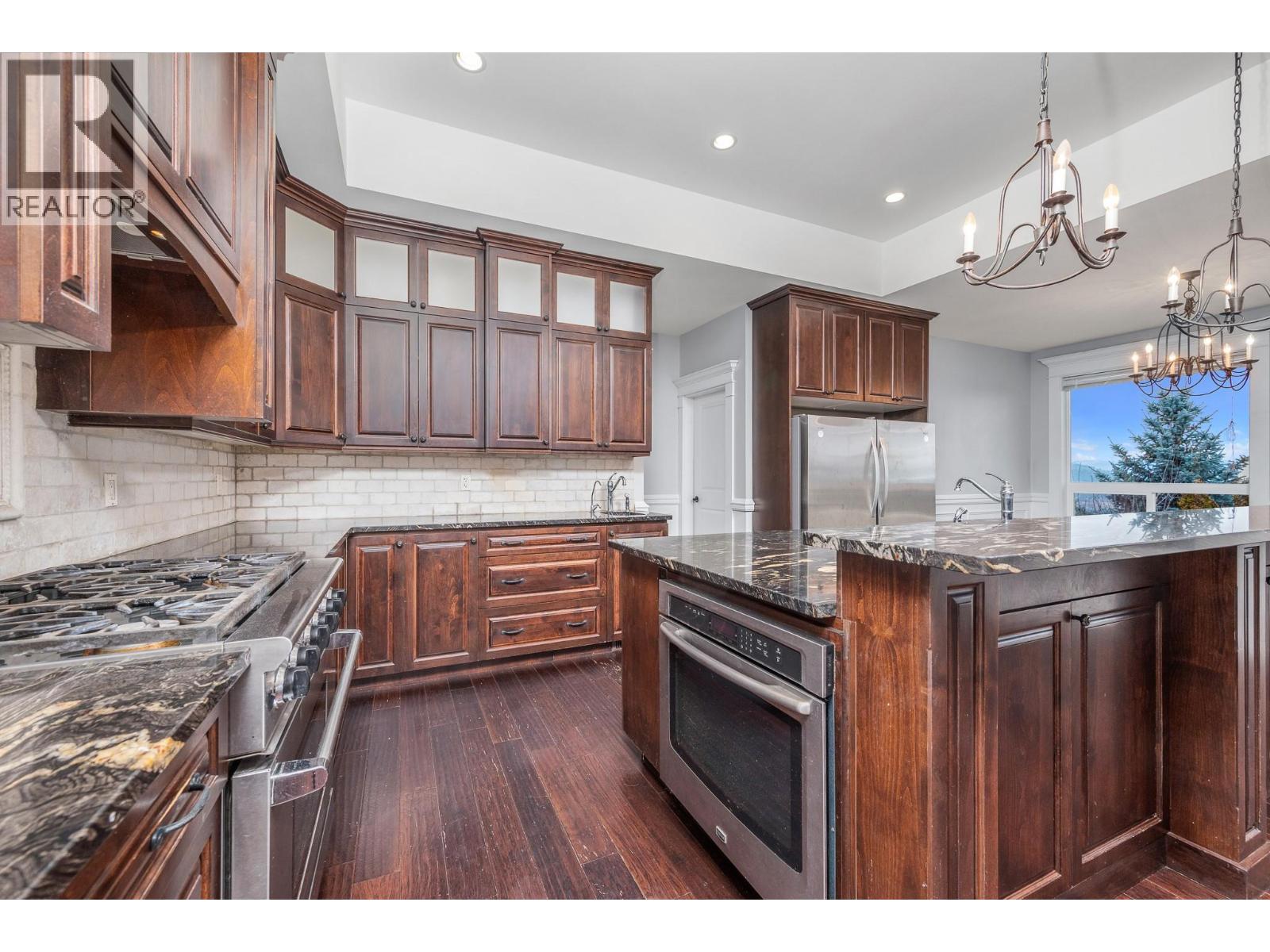 Take in the lake and city views from this thoughtfully designed Foothills rancher with walk-out basement, offering high-quality living space on a beautifully maintained 0.3-acre property. The main level features open-concept living anchored by a well-appointed chef’s kitchen with stone countertops, gas range, second prep sink, generous pantry, and separate fridge and freezer—ideal for entertaining or hosting family gatherings. The covered deck extend the living space outdoors, with views that stretch across the city and toward Kalamalka Lake. The primary bedroom is a private retreat, complete with a spacious walk-in closet and a spa-inspired ensuite featuring a soaker tub, glass shower, and double sinks. Downstairs, the walk-out level offers a large family room with wet bar, perfect for casual entertaining and movie nights. A fully self-contained one-bedroom suite with private entrance provides excellent Airbnb potential or comfortable accommodation for extended family, while an additional 400 sq ft of unfinished space offers endless options for a media room or hobby space. Outdoors, the property includes a garden area, hot tub, ample additional parking for an RV or boat, and a 3-car garage equipped with both 110 and 220 power. Located close to BX School, BX Falls, and just 15 minutes to Silver Star, this home delivers a rare combination of views, space, and versatility in one of Vernon’s most desirable neighbourhoods. (id:21321)