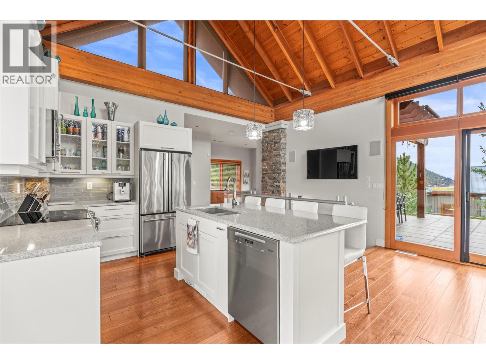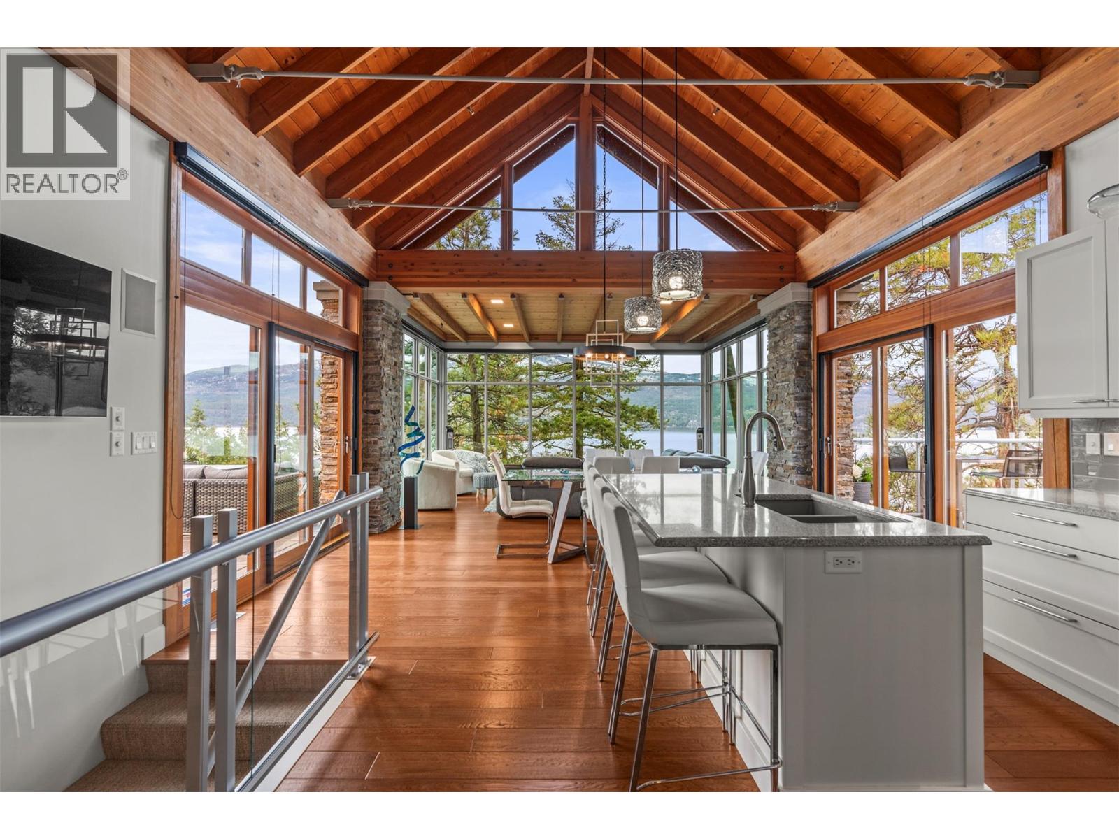 Experience refined lakefront living with unobstructed panoramic views from this stand-alone Ridge Home in the prestigious Outback on Okanagan Lake. Designed for effortless elegance, it features an airy upper level with vaulted ceilings, rich hardwood floors, and a chef-inspired kitchen with custom white cabinetry, quartz surfaces, a walk-in pantry, and an elegant island. Floor-to-ceiling glass and two view decks create seamless indoor–outdoor living. A stylish den with a built-in bar and wine fridge, plus a powder room, completes the level. The lower floor offers three generous bedrooms, including a lavish primary with a reimagined walk-in closet and ensuite with in-floor heat, plus a private patio with a hot tub & outdoor shower. The Outback Lakeside Resort is not simply another Vernon community. With multiple tennis courts, pools and hot tubs, a fitness center, two private beaches and a marina, this handsome lakefront property offers a unique lifestyle that goes beyond luxury. A marina boat slip is available separately if desired. (id:21321)