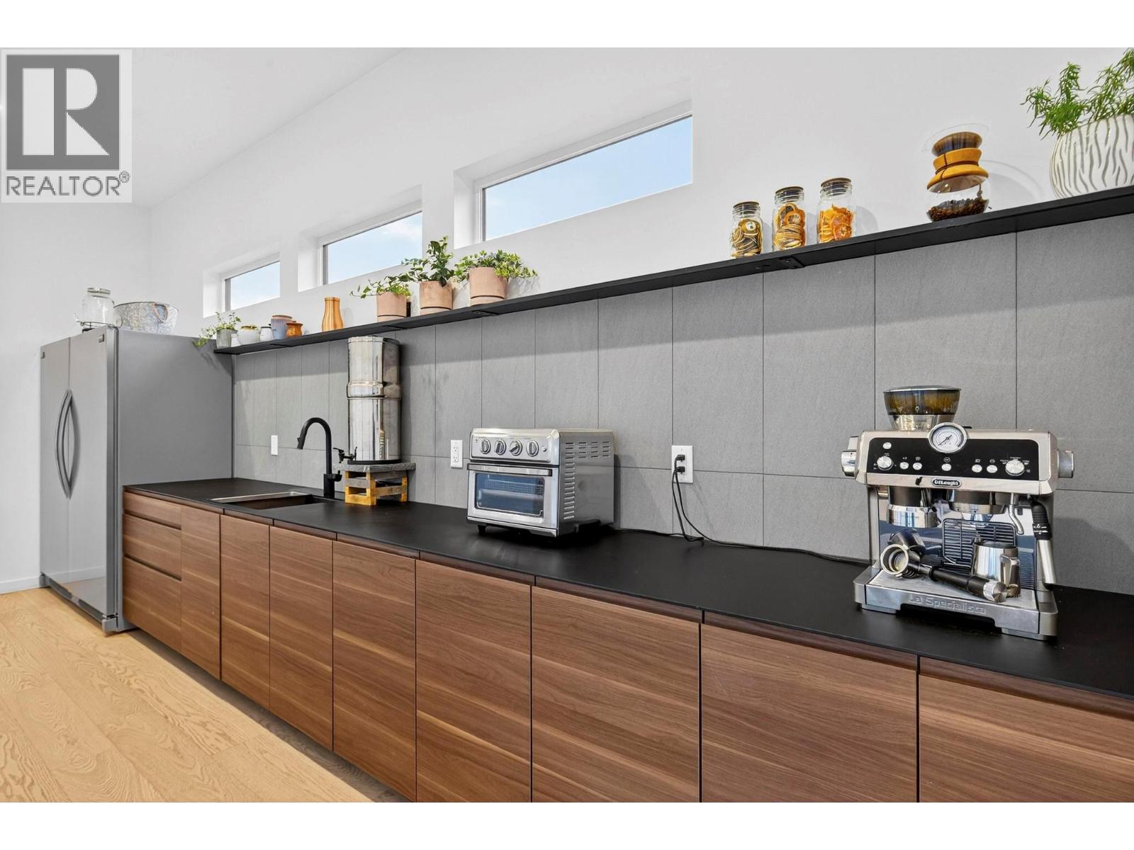 A designer’s dream with show-stopping lake views, this modern 3,000 SQ FT masterpiece sits in the heart of Oyama - one of the Okanagan’s most coveted lake communities. Just a 3-minute walk to Kaloya Park and Kalamalka Lake, you’re steps from beaches, trails, and endless recreation. Surrounded by both Wood & Kal Lake and close to local favourites like Oyama General Store, Pane Vino, Gatzke Orchard, and Folktale Cidery, this location delivers the ultimate Okanagan lifestyle. Inside, luxury and intention take centre stage. 10 ft ceilings, oversized sliding patio doors, and architectural detailing create natural light and flow throughout. The gourmet kitchen features custom steel countertops and a full butler’s pantry, opening into an airy main living space with seamless indoor-outdoor connection. The home offers 3 bedrooms + office and 3 full bathrooms, including a stunning primary suite with heated bathroom floors and an acoustic-treated ceiling - designed for both comfort and calm. Want even more space? There is room to build an approx. 1000 SQ FT suite above the garage. Sitting on a rare, flat 12,000 SQ FT double lot, the outdoor potential is unmatched. Enjoy a level walk-out yard from the main floor with room for a pool and 1,000 SQ FT of wrapped patio space spanning three sides of the home and 900+ SQ FT triple garage with extended bay (perfect for a boat or full-size truck). Modern Okanagan living—elevated in every way. (id:21321)