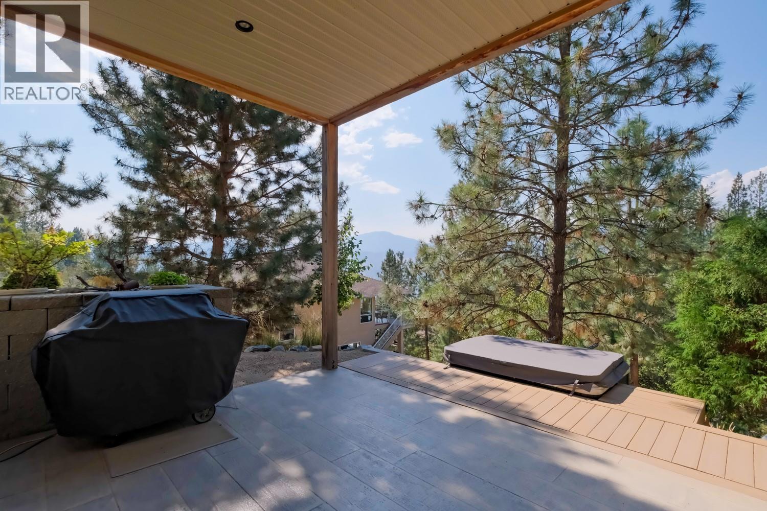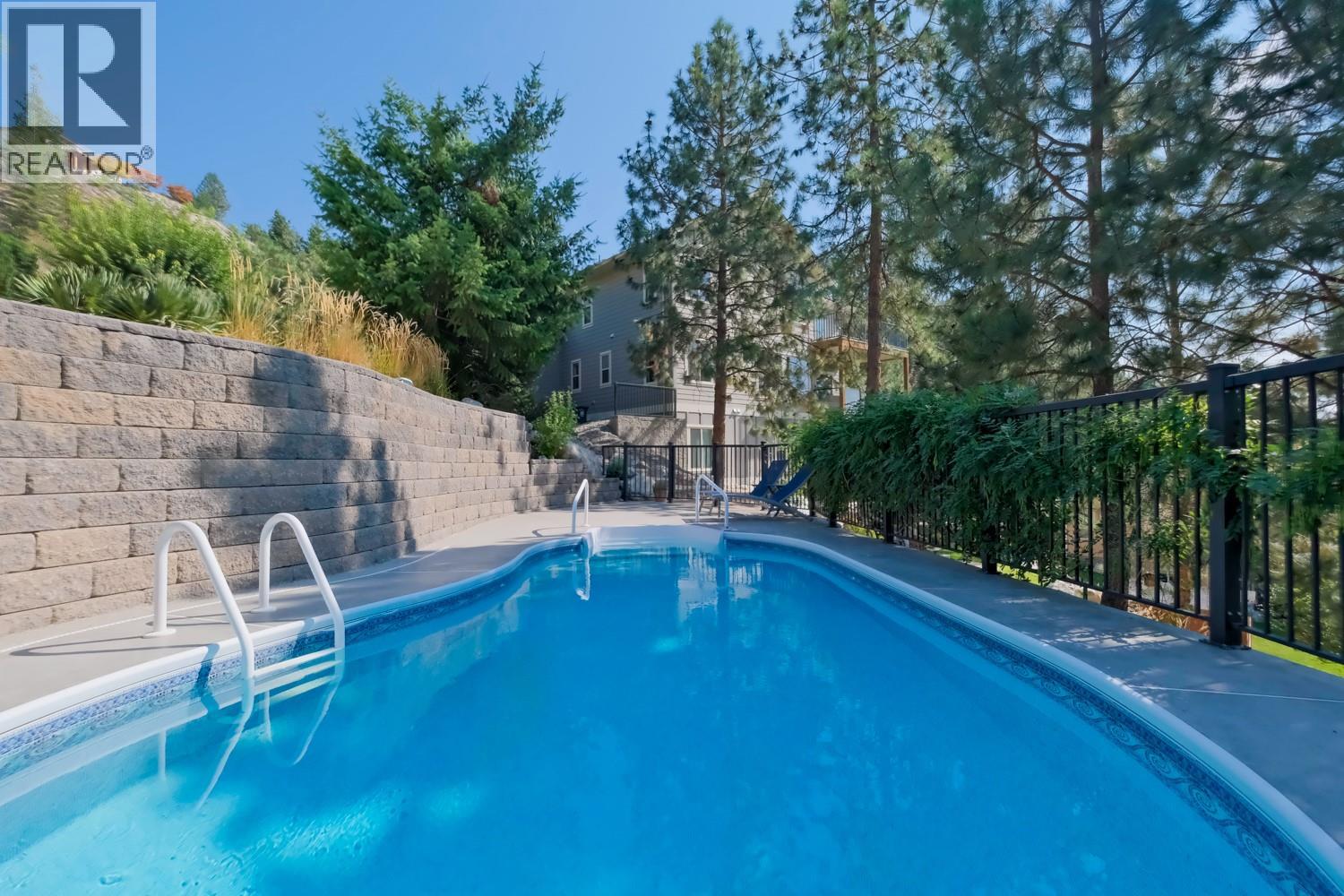 Set on just under an acre of meticulously landscaped grounds, this remarkable three-level home offers rare privacy surrounded by forest and panoramic lake views. Designed to embrace both comfort and entertaining, the residence features four spacious bedrooms, four bathrooms, and a dedicated den—ideal for a home office or quiet retreat. Inside, the home has been tastefully updated with inviting finishes throughout. The main living area is anchored by a warm gas fireplace, creating an elegant yet cozy atmosphere. The walkout lower level expands your living space with a fully equipped wet bar, an expansive recreation room with its own fireplace, and a dedicated wine room—perfect for hosting memorable evenings with family and friends. Step outdoors and experience your own private resort. A shimmering pool, soothing hot tub, fire pit lounge, and tranquil pond are thoughtfully positioned within lush, mature landscaping. Two generous decks and a covered patio offer seamless indoor-outdoor living and multiple vantage points to take in the breathtaking scenery. A double garage provides ample storage, while the home’s intelligent layout ensures functionality meets refined living. Whether entertaining on a grand scale or enjoying quiet evenings overlooking the lake, this property delivers the very best of the Okanagan lifestyle. (id:21321)