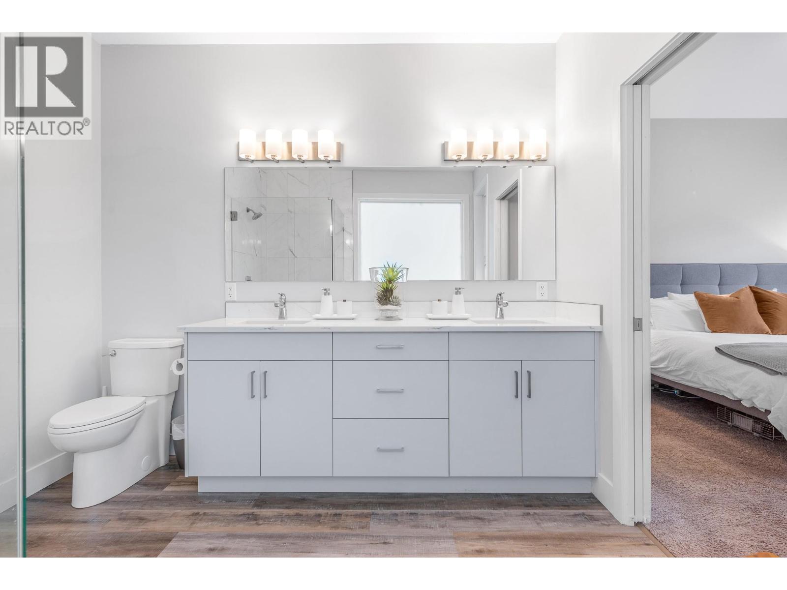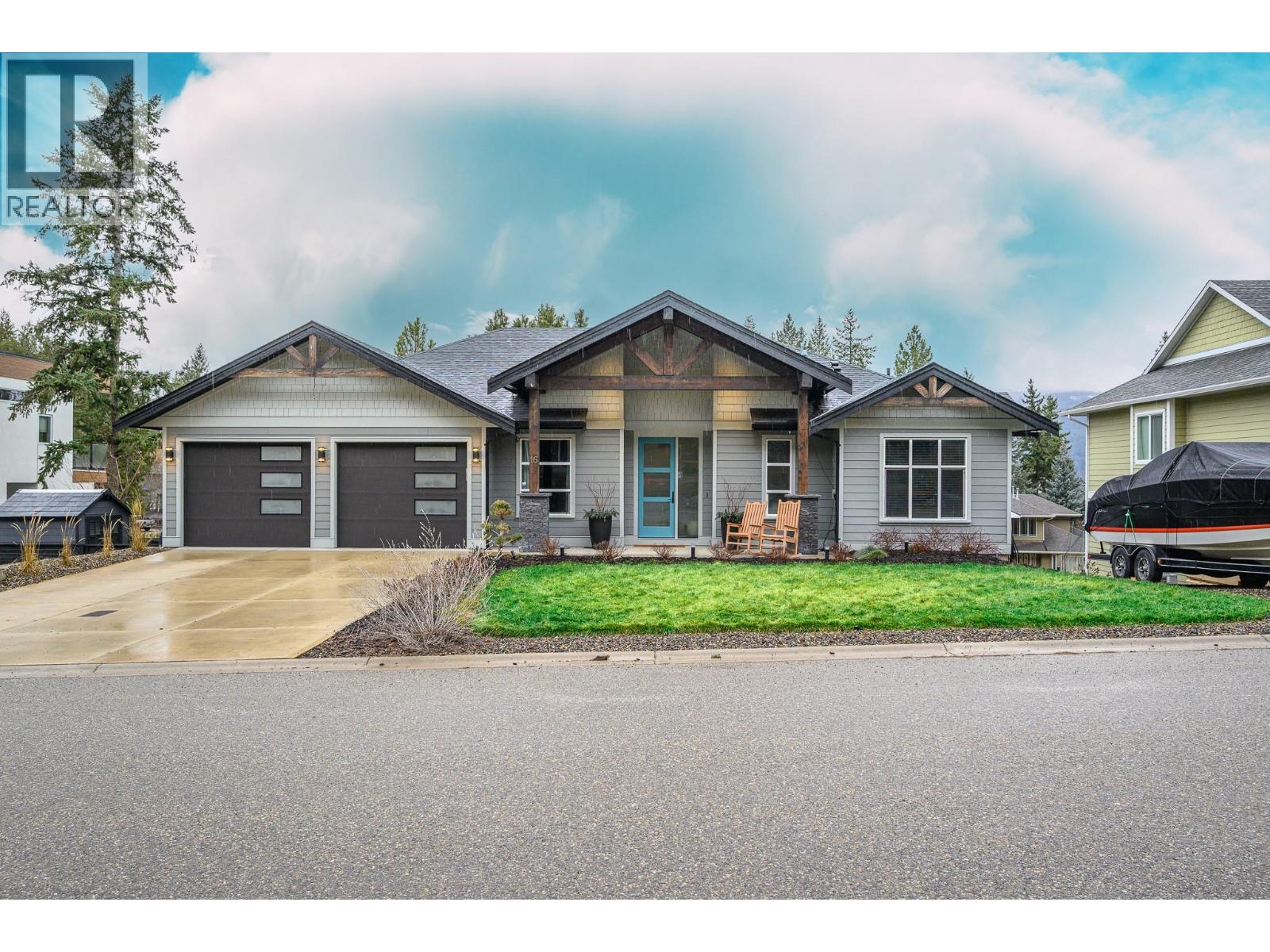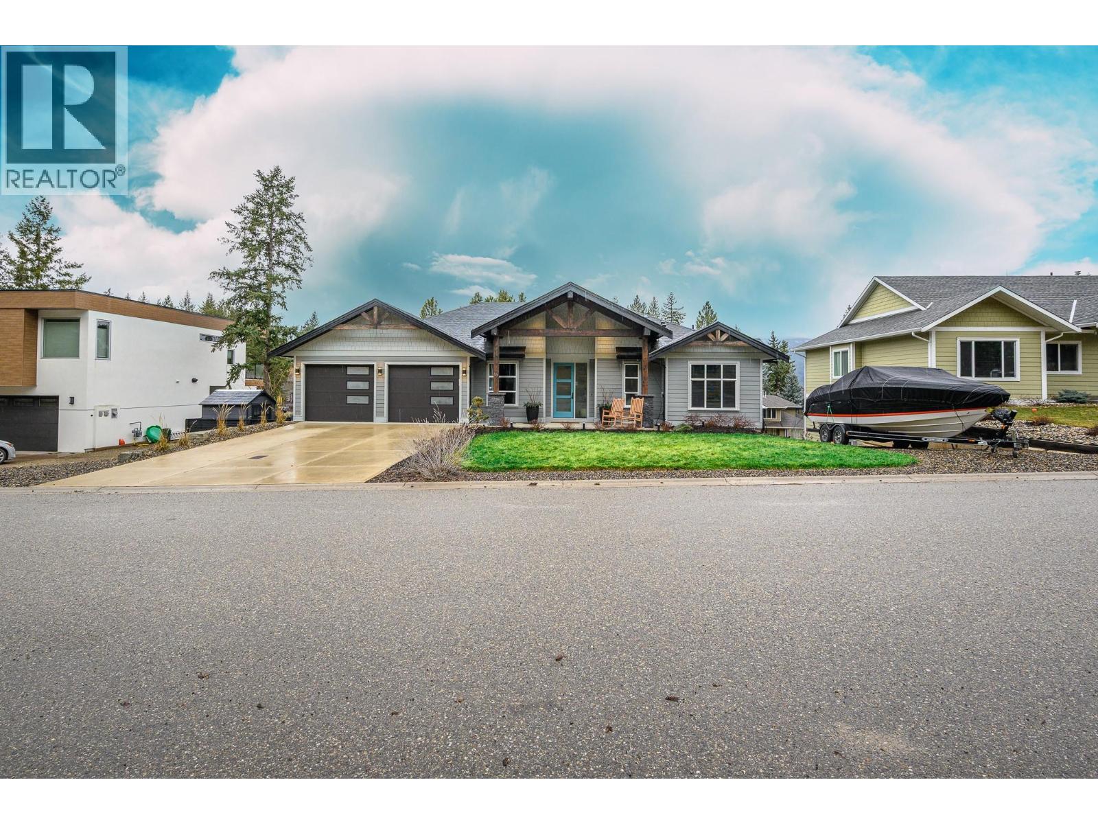 Set within the sought-after Canadian Lakeview Estates, this newly built walk-out rancher offers a refined blend of comfort, functionality, and lifestyle. Designed with entertaining in mind, the open main living area is filled with natural light and showcases a modern kitchen with stainless steel appliances, a generous island, and stone countertops. The adjoining living room is anchored by a gas fireplace feature wall and opens onto a large covered deck with beautiful mountain views. Thoughtful design details continue throughout the home, including three private en-suites that provide added privacy and convenience for family and guests. Residents enjoy exclusive access to a private beach featuring showers and a picnic area, tucked away on a quiet side street, along with a shared boat launch for easy lake access. Additional highlights include quartz countertops throughout, provisions for future boiler and in-floor heating, and pre-wiring for a hot tub and electric vehicle. The neighbourhood also offers a community park with tennis and pickleball courts, completing this exceptional lakeside lifestyle. (id:21321)