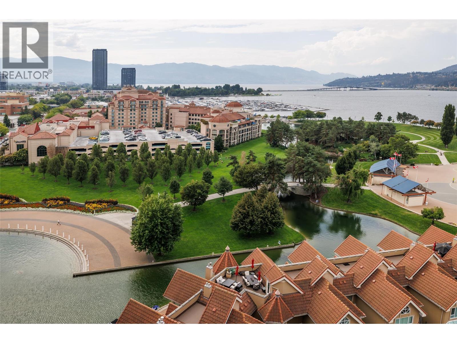 RARELY AVAILABLE - Waterfront Sub-Penthouse at the center of Kelowna’s downtown core! Set directly on the lake with access to private moorage. The Penthouse comes with 2962 square feet all on one floor at “The Lagoons”. Enjoy sweeping views of The Lake, City, and Mountains from your 4 private decks with Italian non-slip tiling. The layout features 3 bedrooms each with their own ensuite, plus a guest bath and den. The kitchen is equipped with two islands, granite and quartz countertops, custom cabinetry and premium appliances by Miele, KitchenAid, and LG. The formal dining area with wet bar flows into the grand living room that is framed by floor-to-ceiling windows and hosts the gas fireplace. The Master Bedroom has large bay windows, deck access, a generous walk-in closet, and a 5-piece spa-inspired ensuite with soaker tub and tiled shower. Additional highlights include hardwood flooring, extensive built-ins, integrated media wiring by Beyond Audio and meticulous finishings throughout. Residents of The Lagoons enjoy resort-style amenities: indoor and outdoor pools, hot tub, sauna, gym, clubhouse, bike storage, and secure parking. This is the pinnacle of waterfront city living—luxury, convenience and breathtaking views in one. (id:21321)