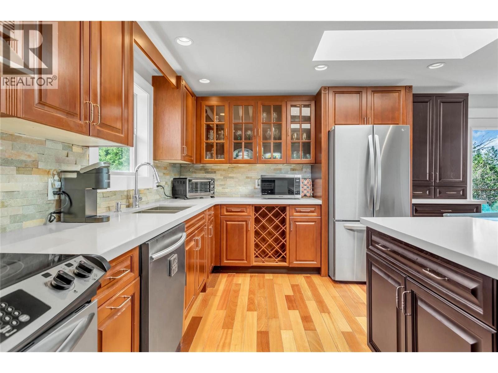 This amazing home set in the tranquility of Carrs Landing. 4-bed, 2-bath home offers breathtaking views in every direction, including stunning lake scenery. The home has a studio in-law suite with Murphy Bed, that was previously licensed for short term rentals. No through road leading to the Maki Coral Beach Trail right trail. The spacious property boasts ample parking for vehicles and recreational toys, an expansive front yard, fully fenced backyard, underground irrigation and a well-constructed storage building for added convenience. Step onto the inviting wrap-around deck and through the front door, where an open-concept living, kitchen and dining area welcomes you. The cozy gas fireplace, set within a stunning stone feature wall, compliments the custom-designed kitchen with quartz countertops and skylights that flood the space with natural light. Spanning over 1,900 sq. ft., this home has been thoughtfully upgraded with a 2019 A/C unit, furnace, and hot water tank, along with a 2016 kitchen renovation, a Type 2 septic system and a durable roof installed in 2008. Enjoy the ultimate Okanagan lifestyle with walking distance access to Gable Beach, Coral Beach and 50th Parallel Winery, plus easy proximity to Predator Ridge, Sparkling Hill Resort, Kelowna International Airport and all the amenities of Lake Country and Vernon. Don’t miss out—schedule your private viewing today! (id:21321)