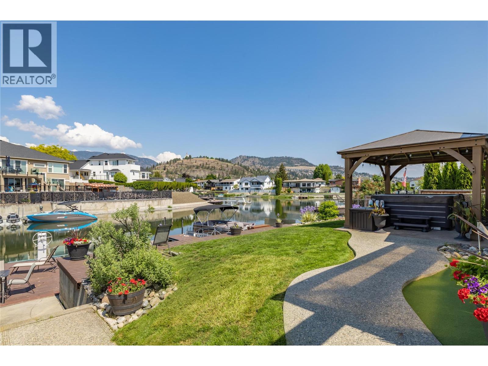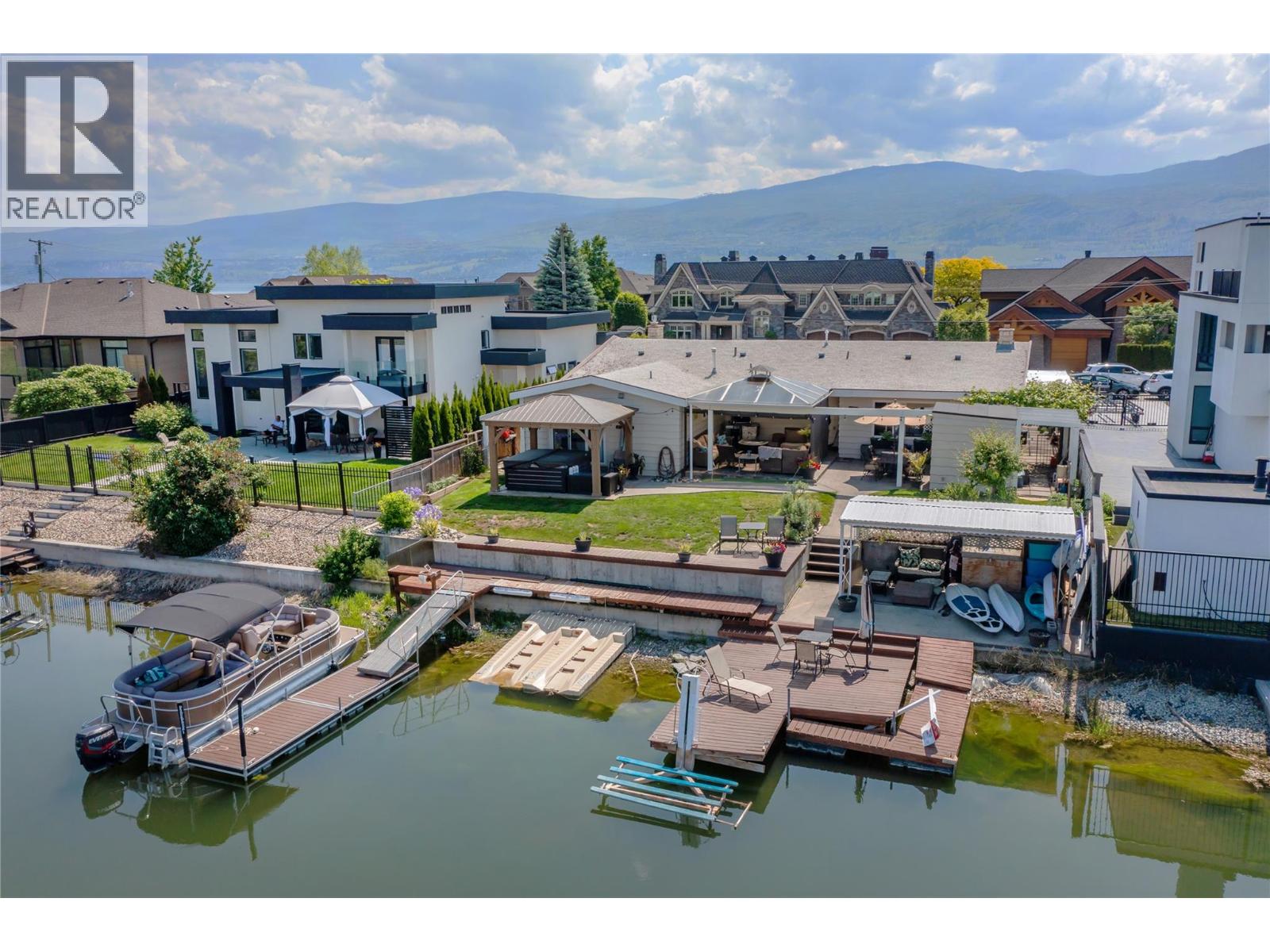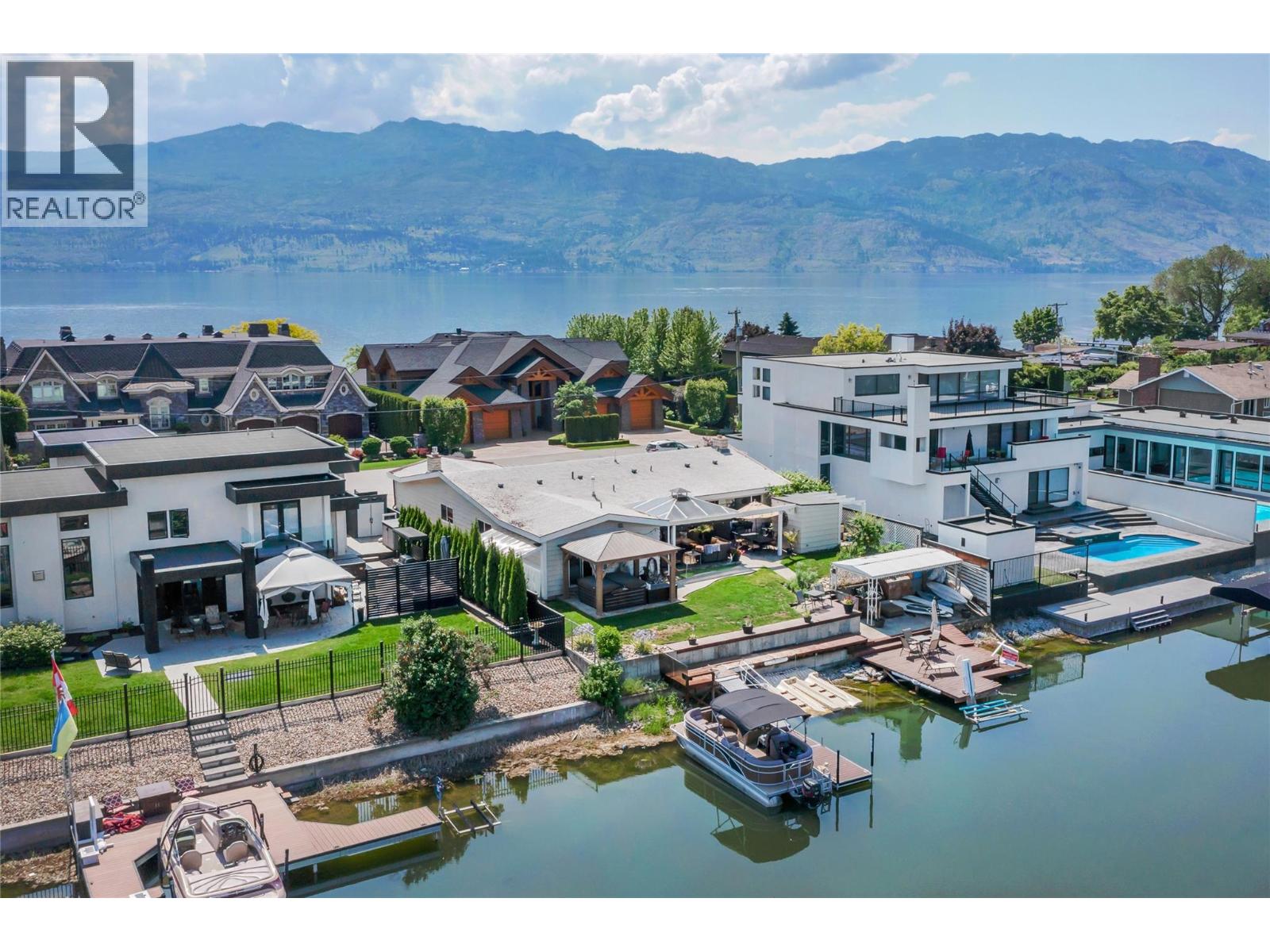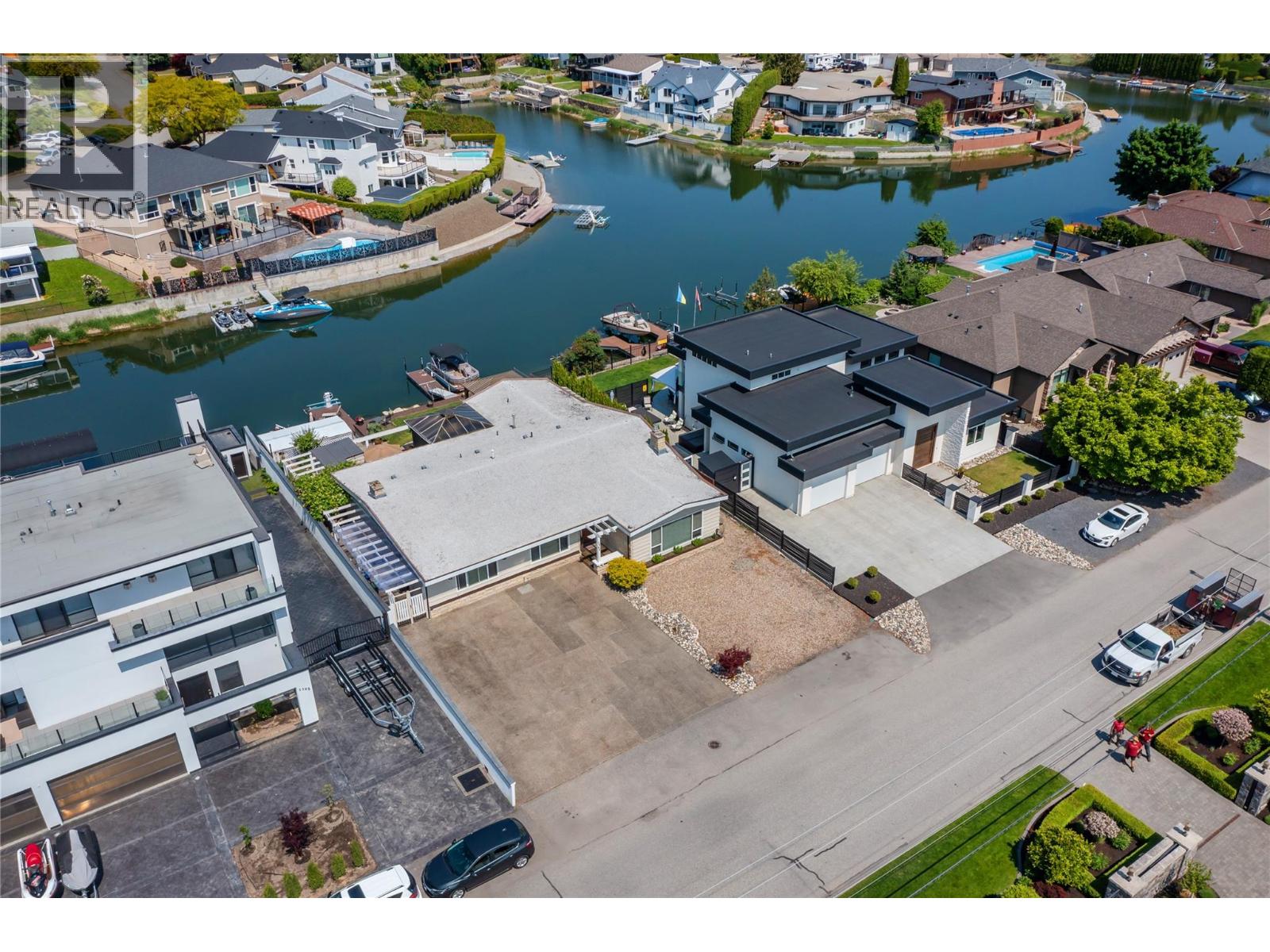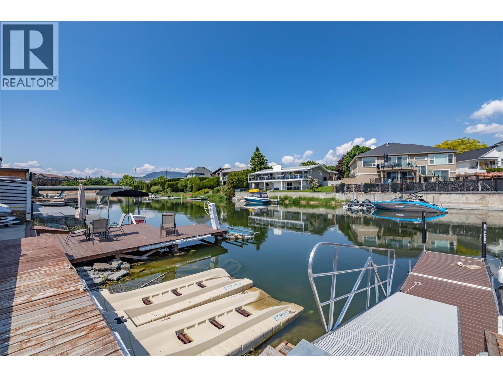 Waterfront living with 2 boat slips on one of West Kelowna's most prestigious roads. This home is situated among only 48 properties that sit on the canal which are within walking distance to the incredible Pritchard Park and Frind winery; the first waterfront winery in all of North America. As soon as you step inside this home you are greeted by 2600 square feet of sprawling one level living that provides 4 bedrooms (could be 5), 3 bathrooms, 2 living rooms and an open concept kitchen/dining experience that capitalizes on lake views and functionality. The interior of the home has been completely repainted giving a fresh and clean welcome. The home enjoys good sized bedrooms while the primary enjoys an ensuite, walk in closet and private sliding glass doors that lead to your covered hot tub over looking the tranquil canal. The fourth bedroom is very sizeable and provides a great option for an older child or guests as it sits opposite the other rooms and has it's own exterior entrance along the side of the home. Outside, the home has a large covered seating area that faces West capturing Mission Hill Winery in the distance and providing privacy from neighboring properties. The home allows two motorized vehicles and has a covered area at the waterfront for your paddle boards, kayaks and other water toys. Experience Okanagan waterfront living at a fraction of the typical cost and without the heavy taxes, call your Realtor to schedule a showing today. (id:21321)