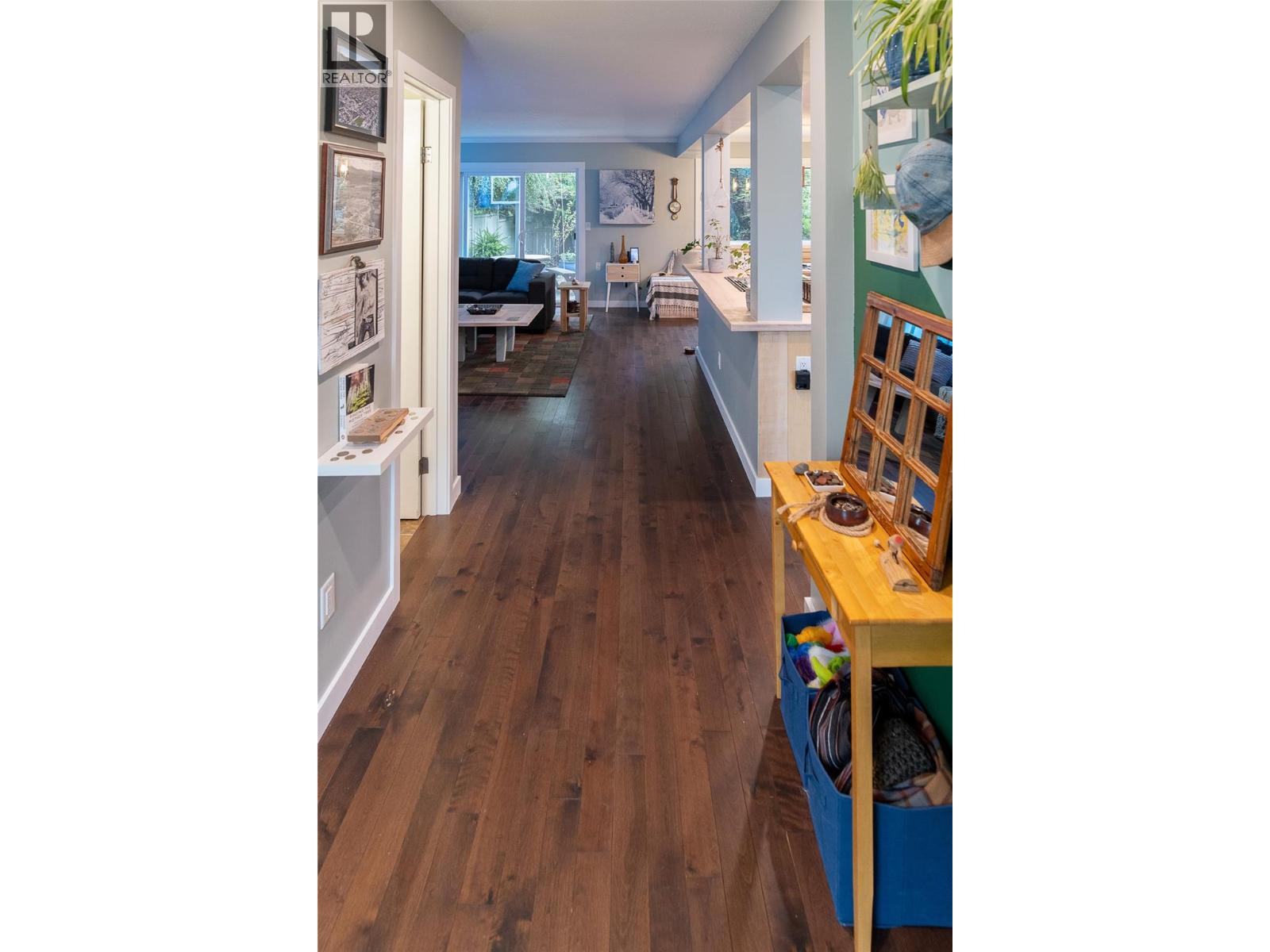 Welcome home to Franklyn Court! This 2 level end unit townhome offers 3 bedrooms, 2 bathrooms, a large fenced private yard and comes with two parking stalls. Upon entry you are welcomed to the open concept kitchen, living and dining room complete with hardwood floors and newer paint. The kitchen has been tastefully remodelled with a new island countertop, lighting, new fridge and stove and the custom made banquette in the dining room is heated to keep you cozy on chilly days. On the main floor there is also a half bathroom, full laundry room that provides plenty of space and for even more storage there is a 4’ crawlspace beneath the entire main floor. The freshly painted stairwell will lead you to the second floor where you will find the 3 bedrooms and full bathroom. Boasting beautiful landscaping and privacy, the yard is in the end townhome backing onto Badke Road, offering a quieter location to enjoy the patio and bbq area. There are also a shed in the side yard for all your outdoor storage needs plus it is one of the largest yards in the complex. All the windows, front door and patio door have been replaced as well. Franklyn court is family friendly, comes with 2 parking stalls, low strata fees, pets welcome with some restrictions, and centrally located to Ben Lee Park, schools, shopping and transit. This is a rare find, book your appointment today! (id:21321)